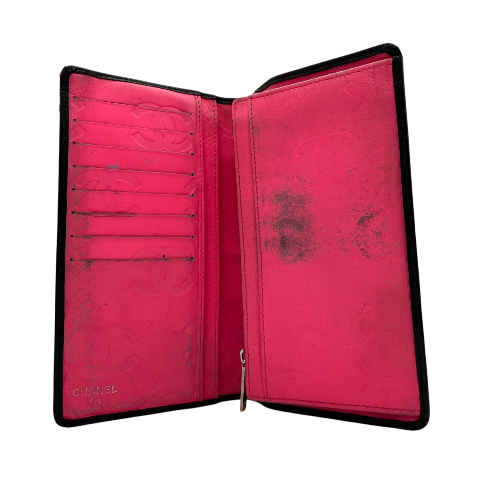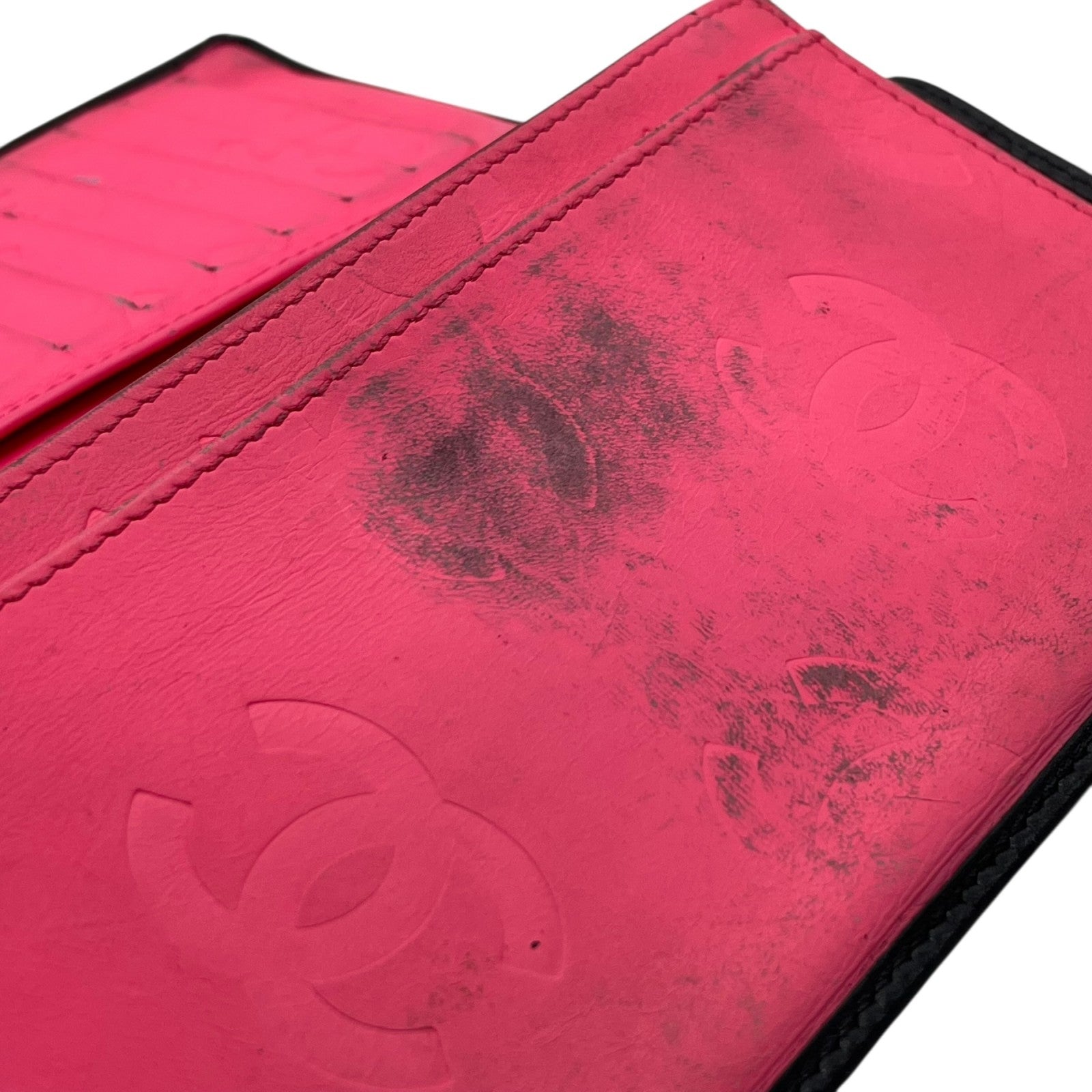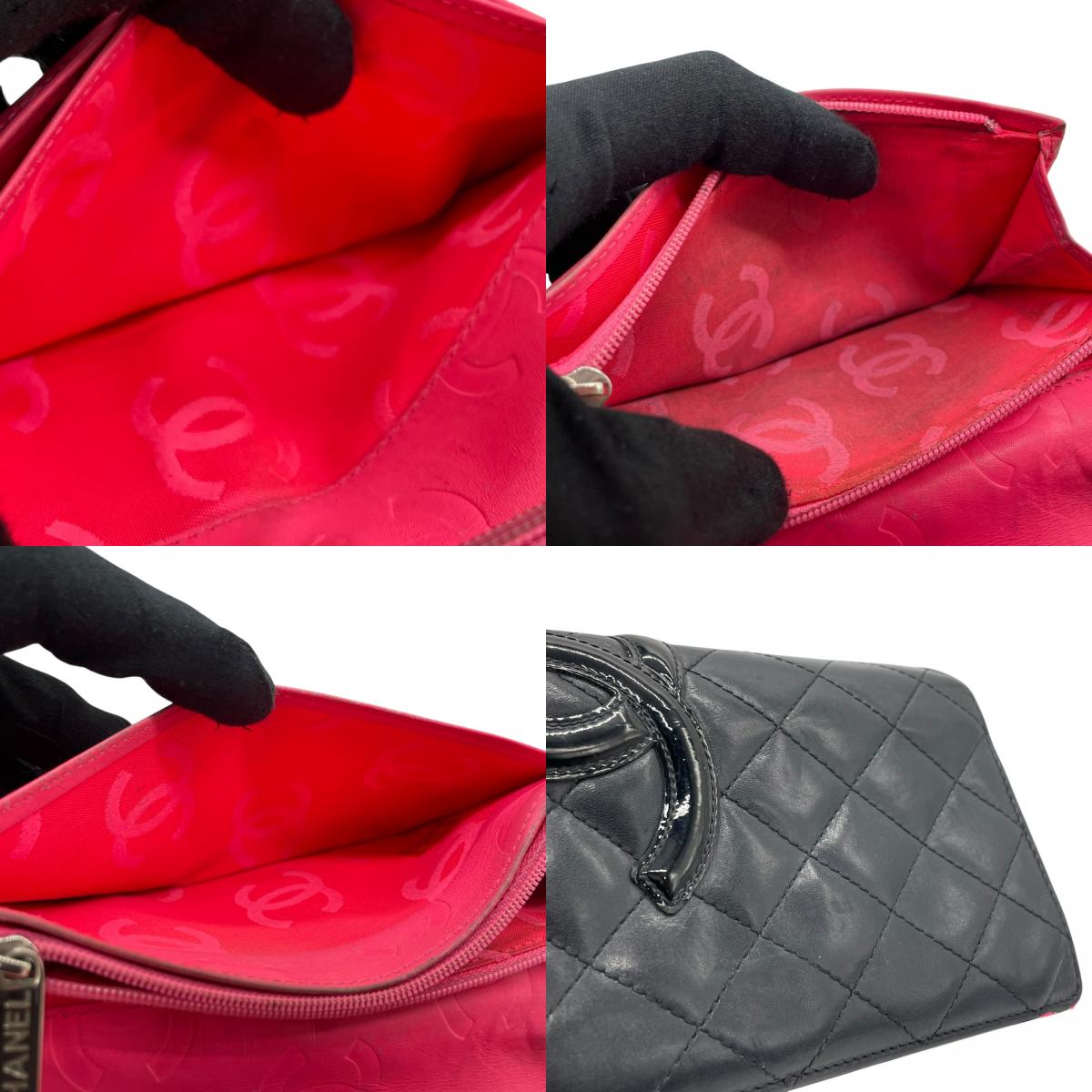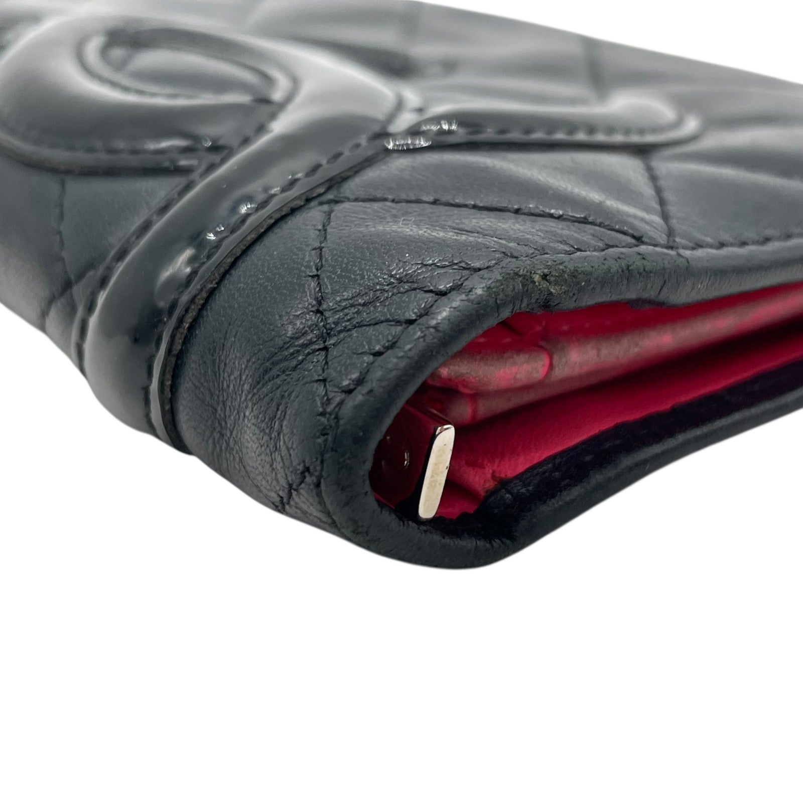 CHANEL シャネル カンボンライン ココマーク 二つ折り 長財布 黒 ブラック ピンク パテントレザー シルバー金具 レディース M5