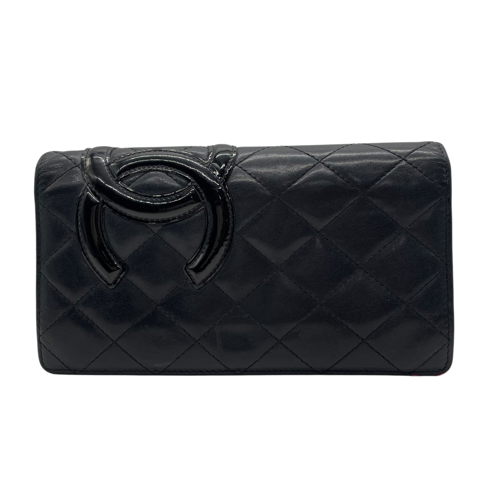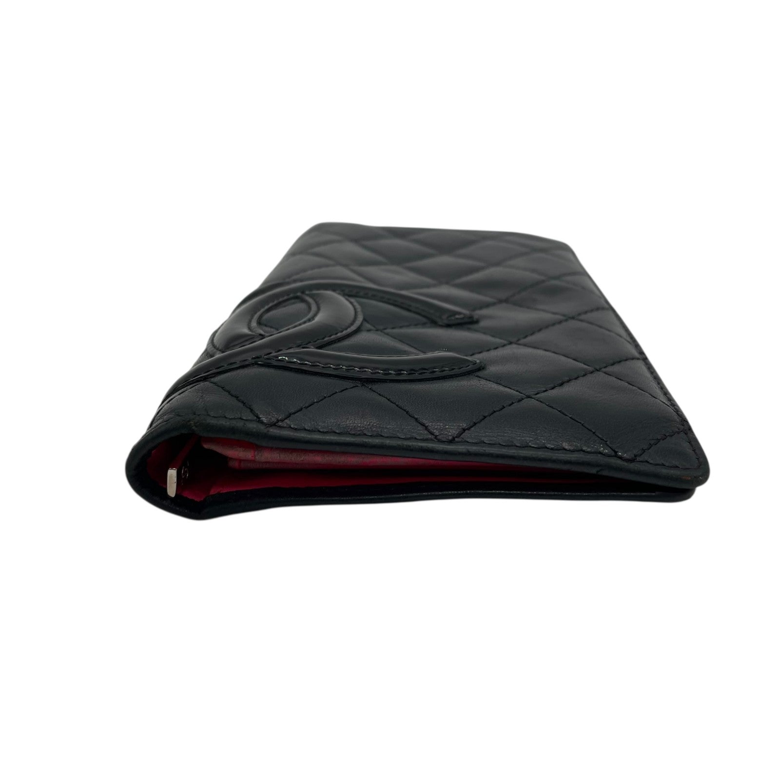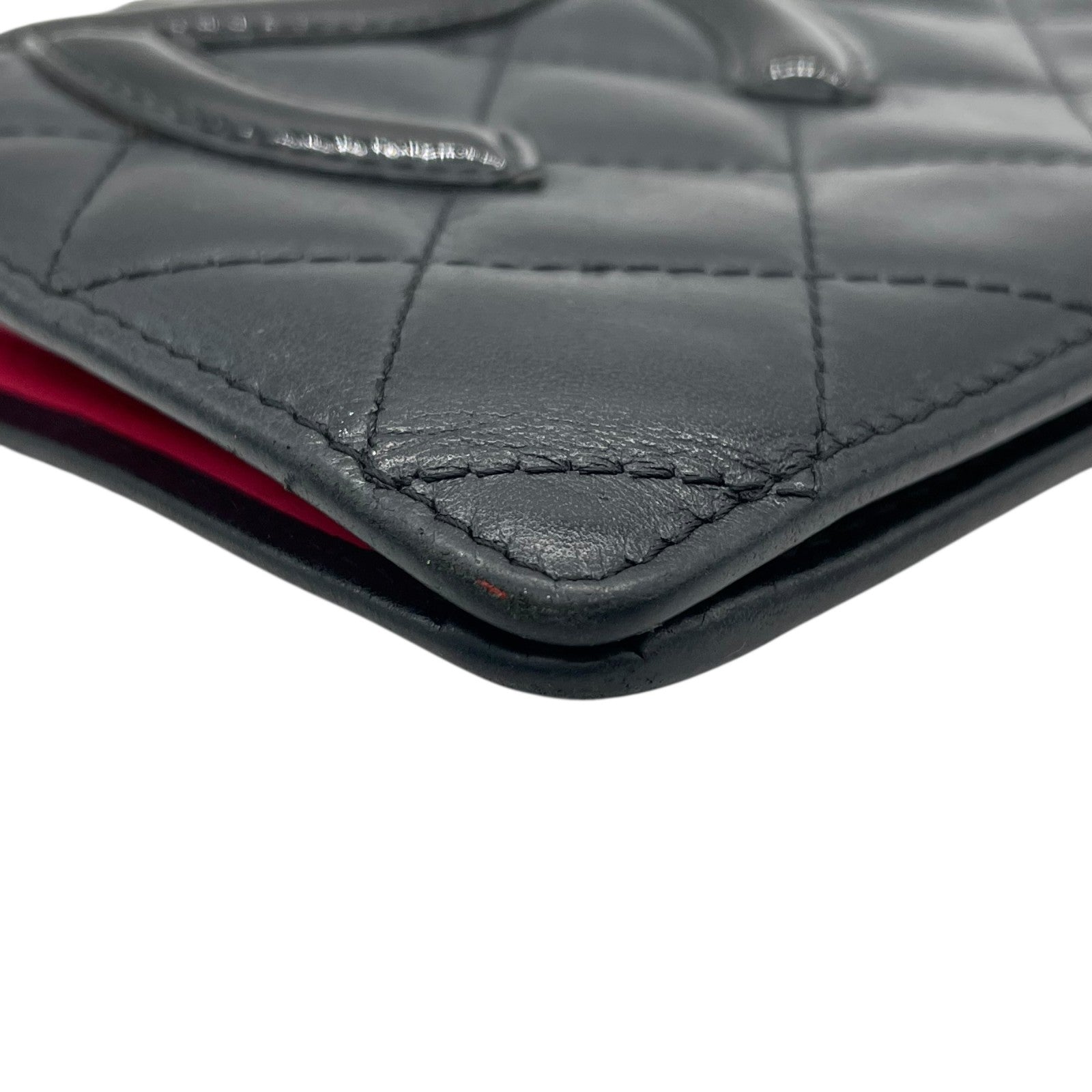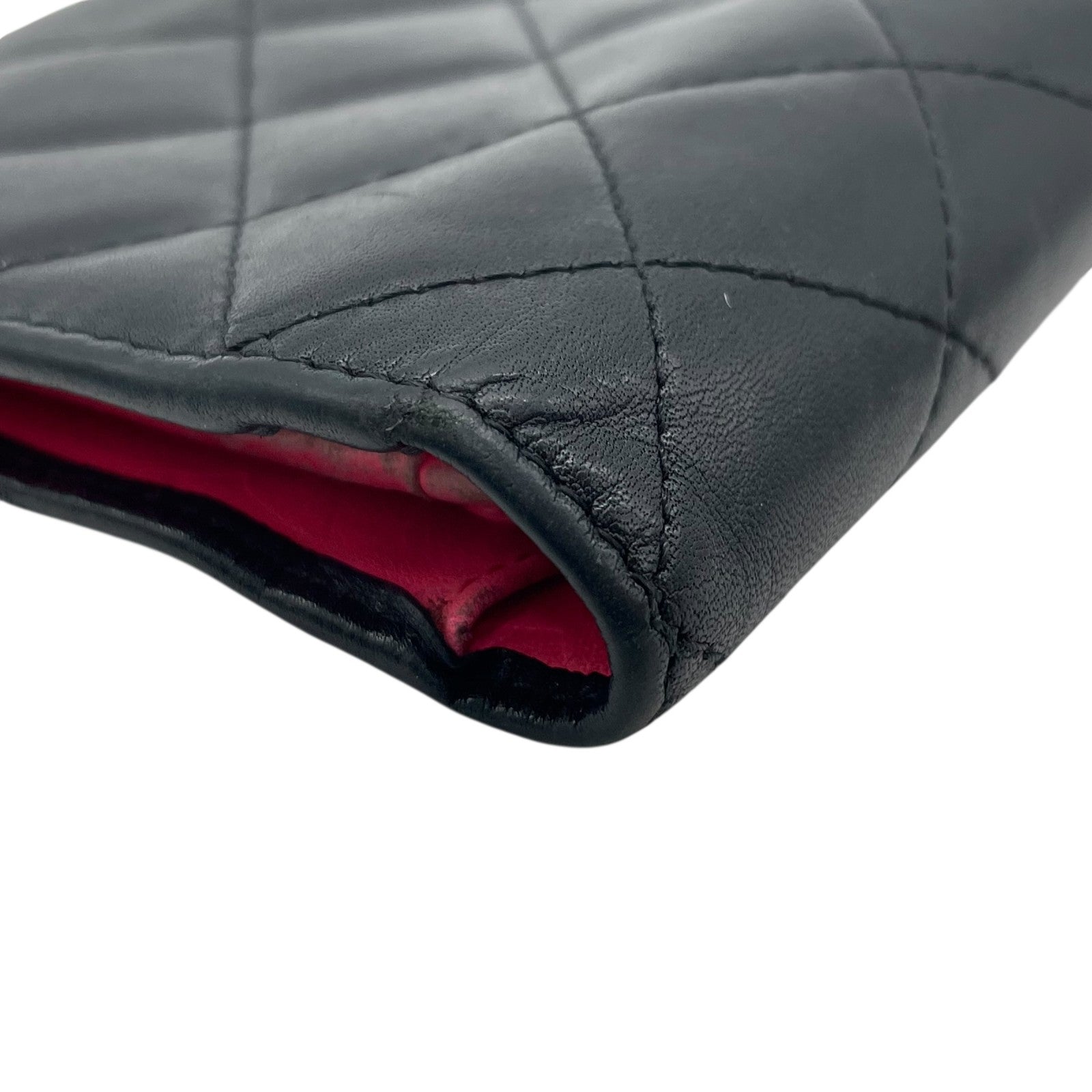 CHANEL シャネル カンボンライン ココマーク 二つ折り 長財布 黒 ブラック ピンク パテントレザー シルバー金具 レディース M5