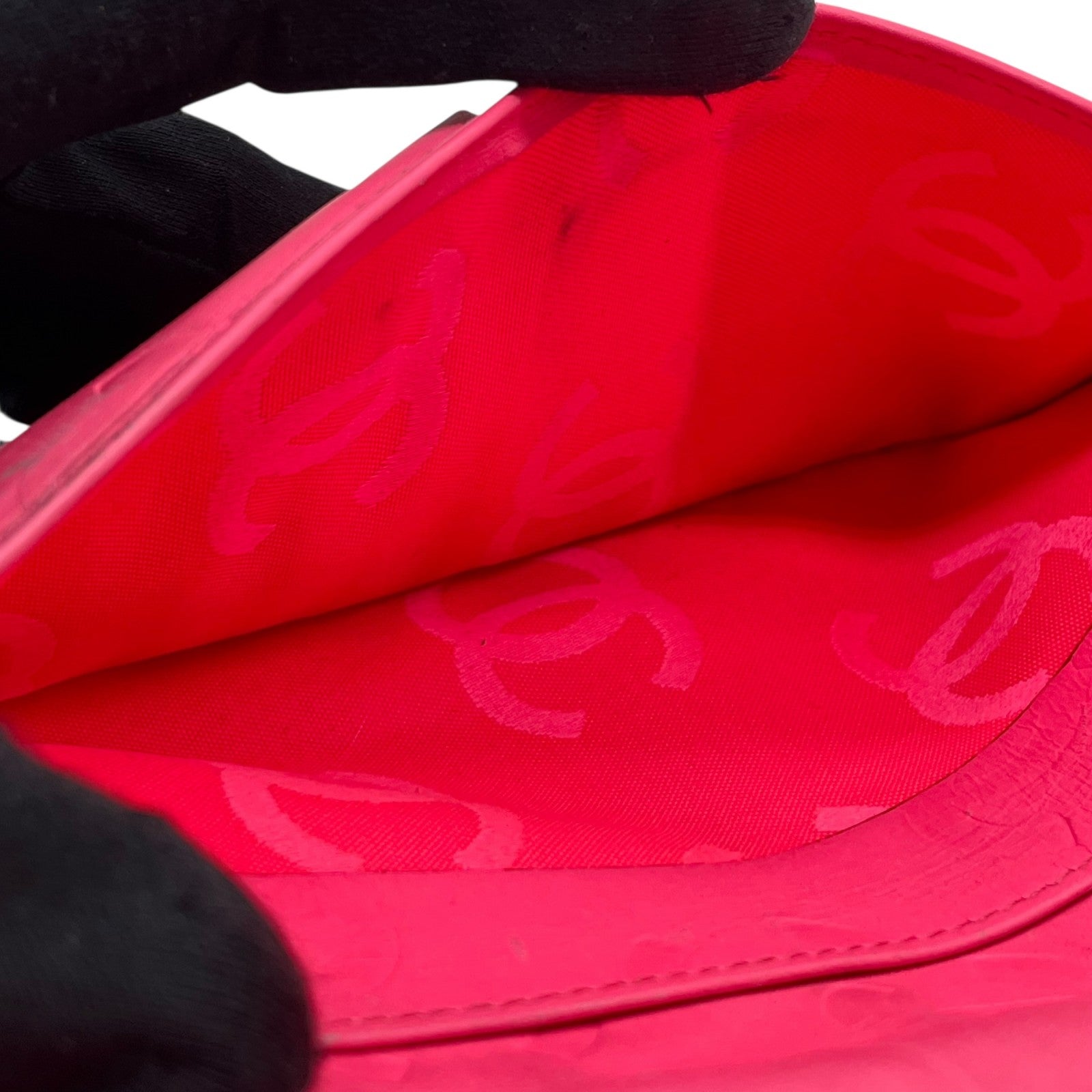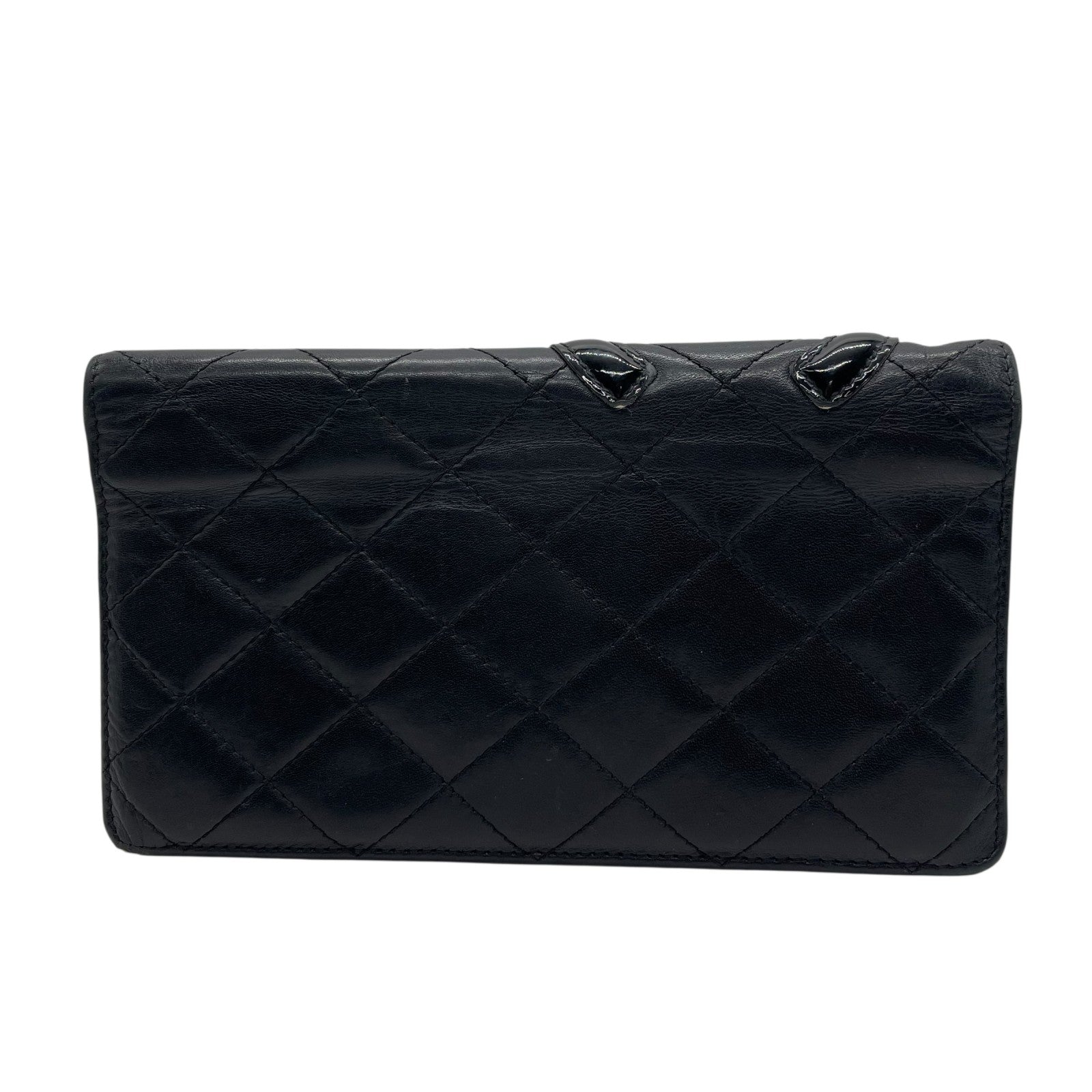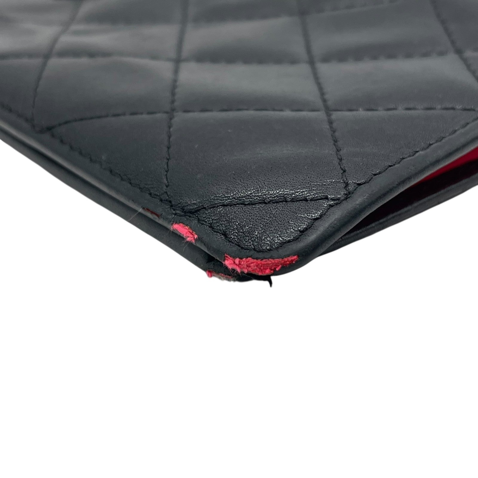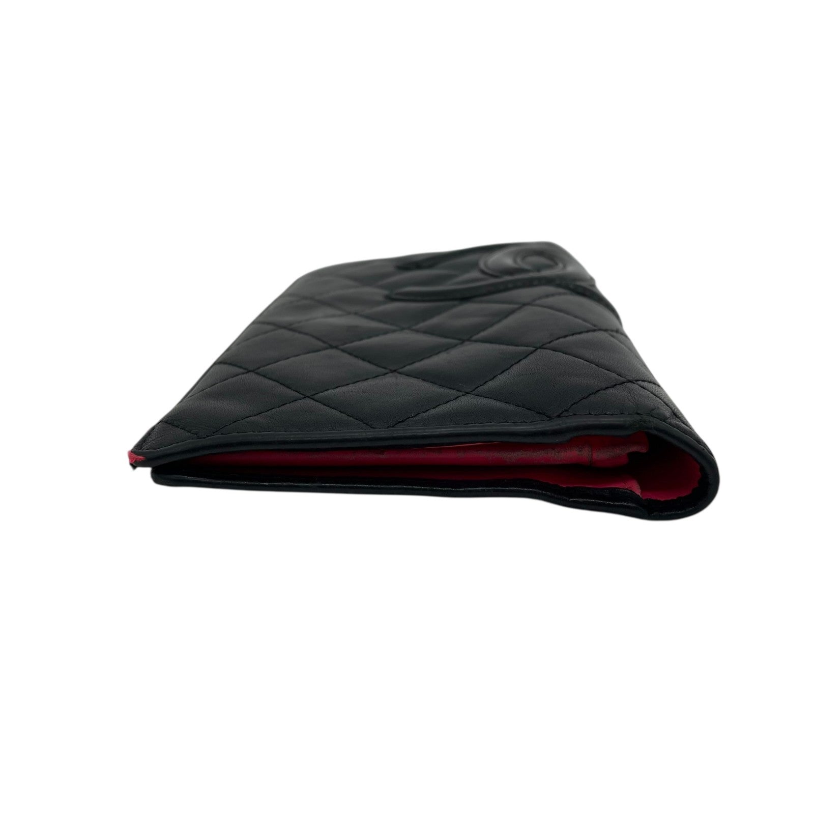 CHANEL シャネル カンボンライン ココマーク 二つ折り 長財布 黒 ブラック ピンク パテントレザー シルバー金具 レディース M5