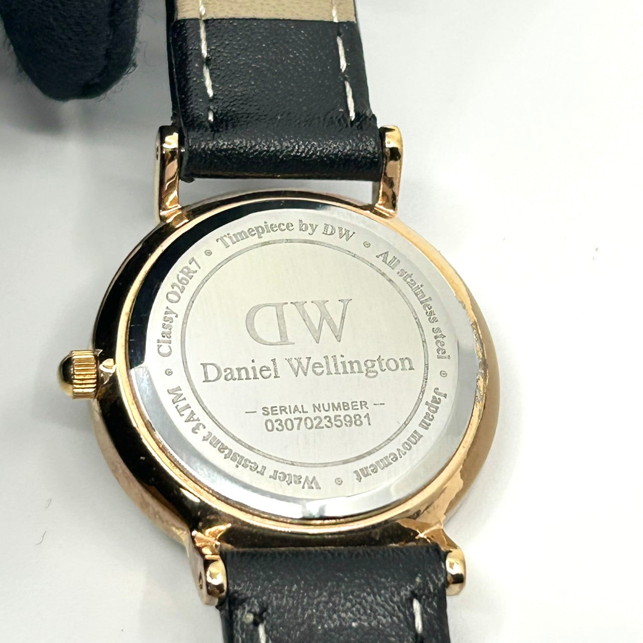 【電池交換済】ダニエルウェリントン 腕時計 レディース Classy 026R7 クラッシー クオーツ ローズゴールド ホワイト文字盤 ストーンインデックス レザーベルト ブラック エレガント クラシック ドレスウォッチ 人気モデル クリーニング済み G1