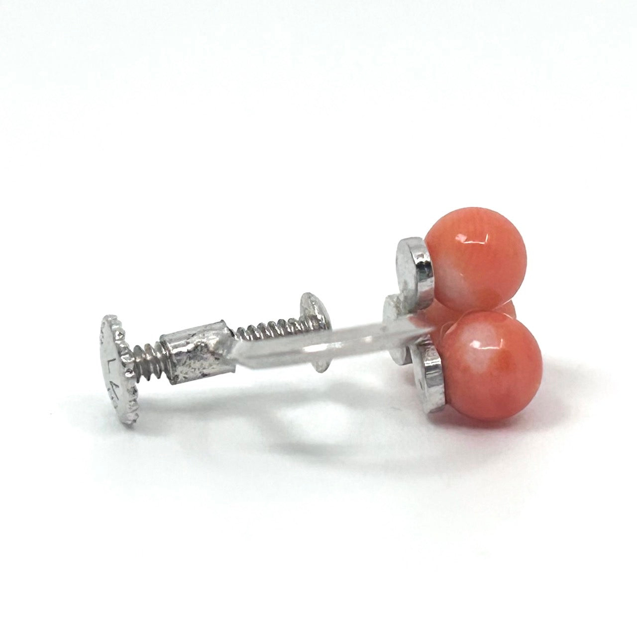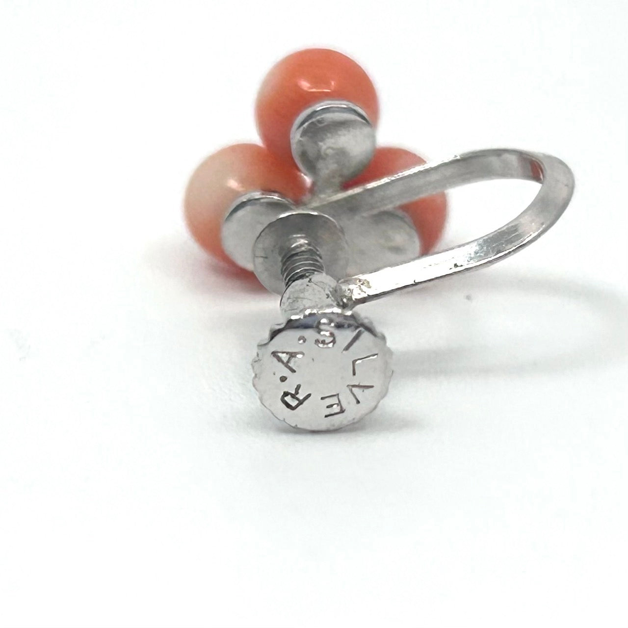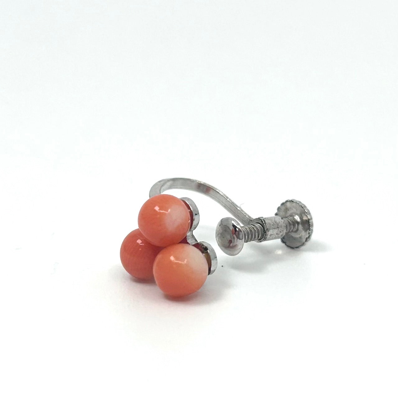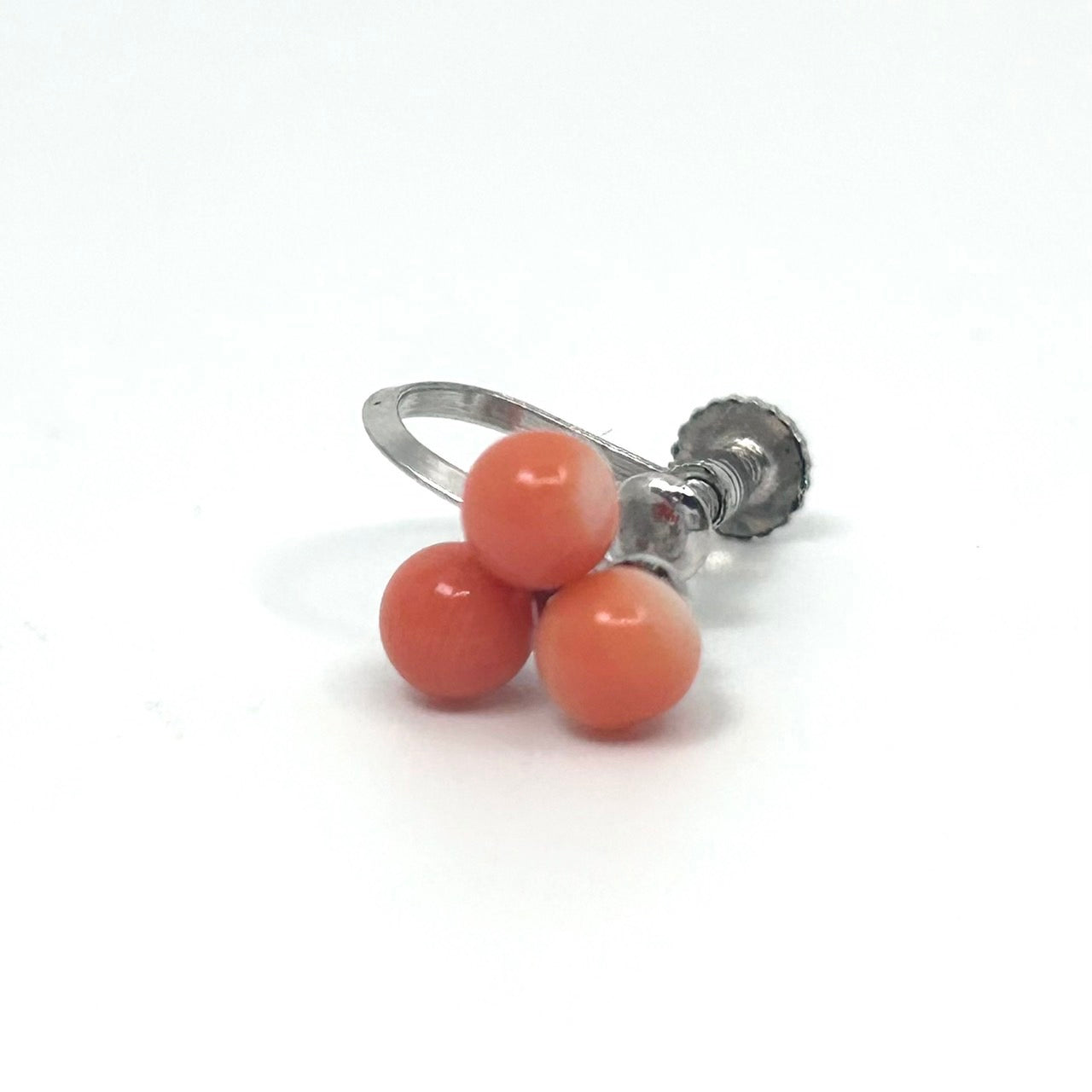 ヴィンテージ サンゴ 赤珊瑚 レッド 3粒 デザイン シルバー金具 ネジ式イヤリング コーラル アクセサリー レトロ 上品 ジュエリー I9