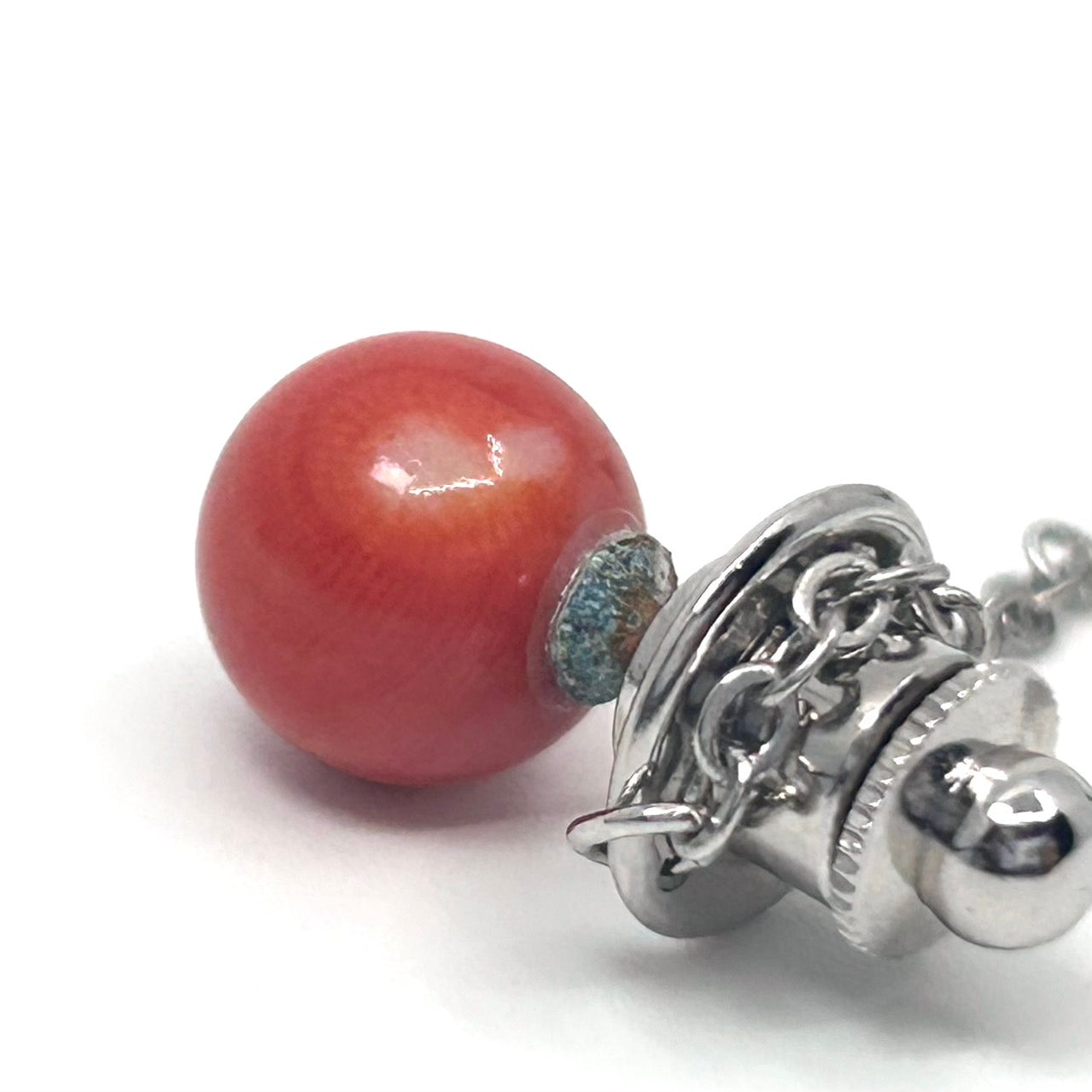 赤珊瑚 レッド ピアス 片耳用 シルバー台座 チェーン付き 上品 エレガント ヴィンテージ アクセサリー レディースジュエリー I9