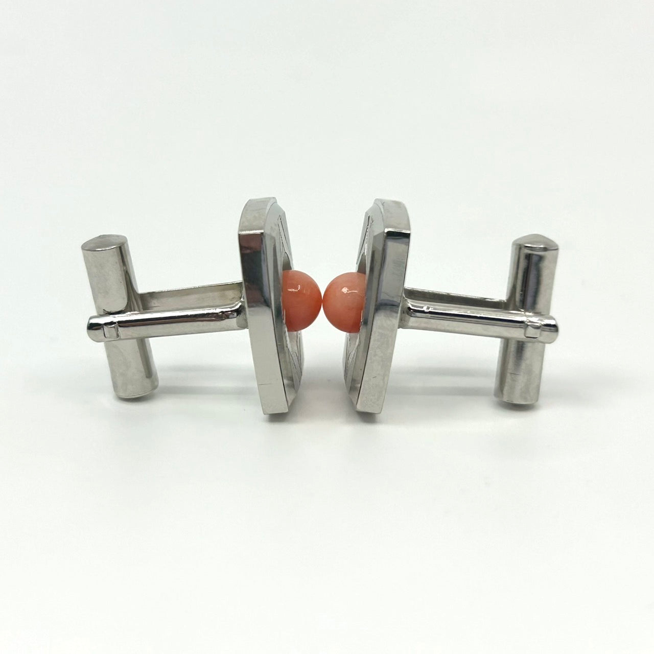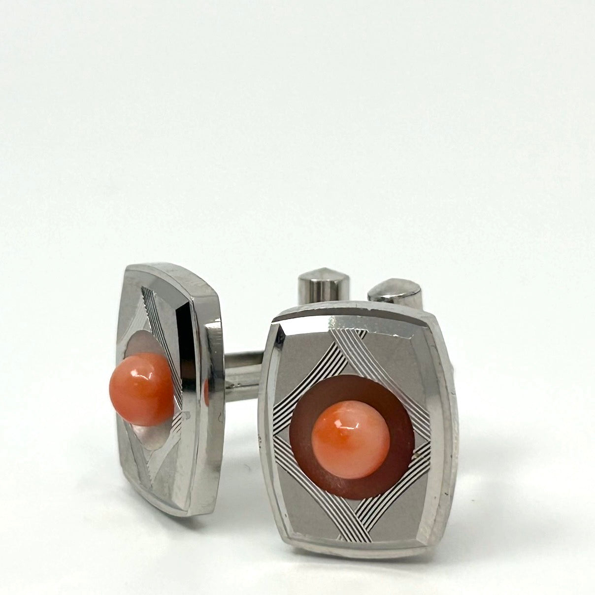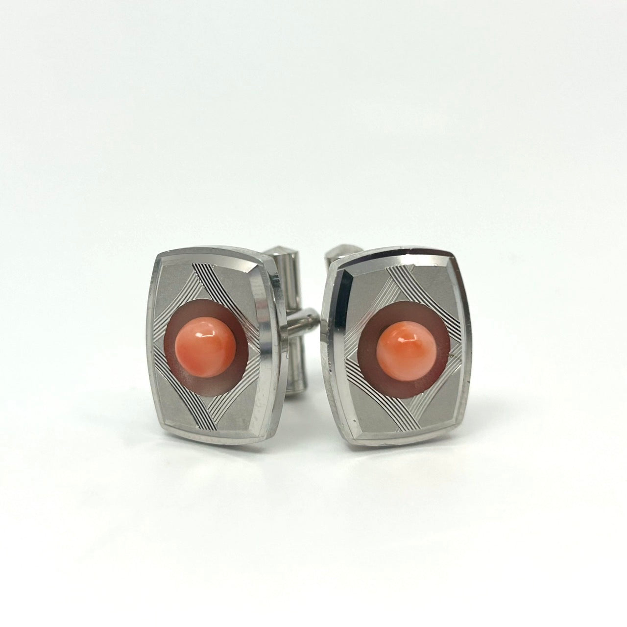 ヴィンテージ 赤珊瑚 レッド カフスボタン メンズ アクセサリー シルバー台座 フォーマル スーツ ビジネス 高級感 ギフト I9