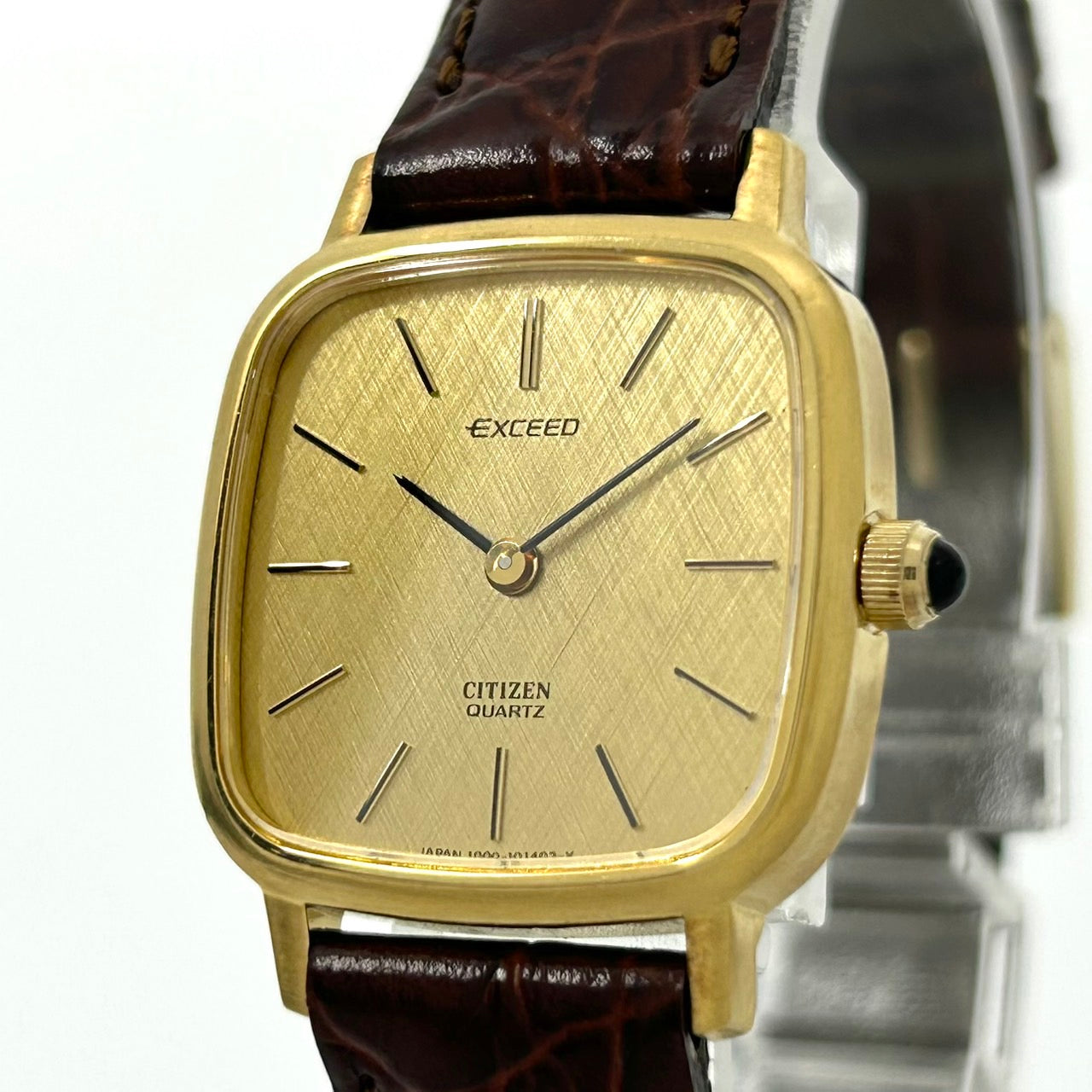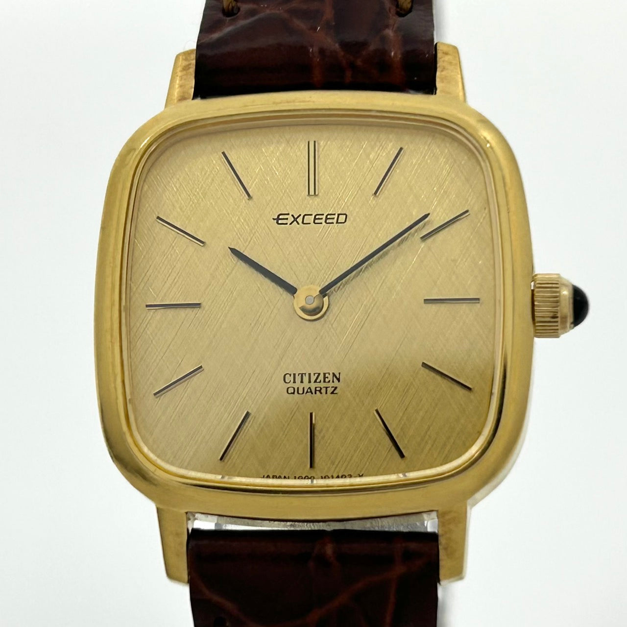 【電池交換済/新品ベルト(社外品)/美品】シチズン エクシード 腕時計 4-101251Y クオーツ アナログ ゴールド スクエア ブラウンレザー ビンテージ クラシック エレガント ドレスウォッチ ファッションウォッチ アクセサリー 男女兼用 G1