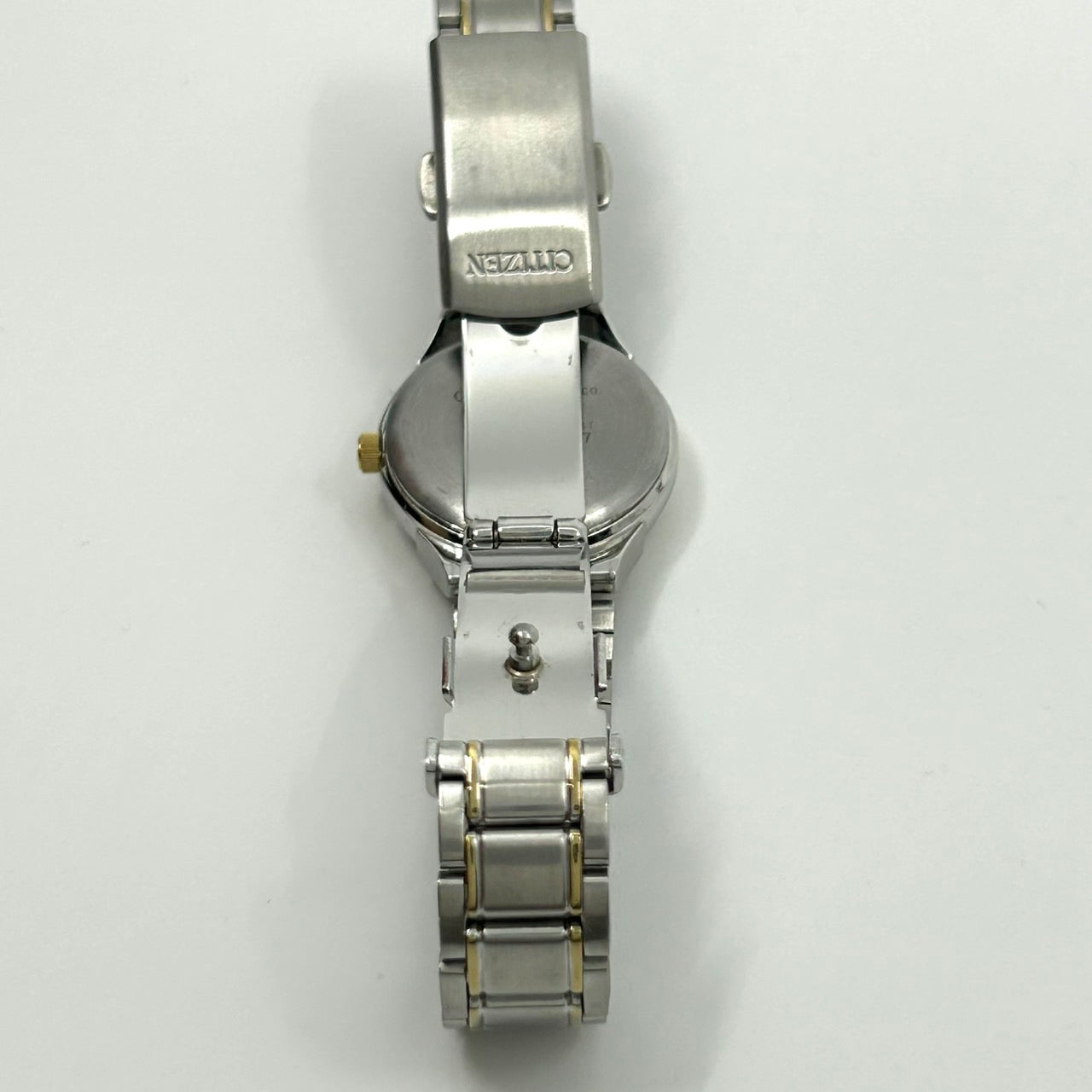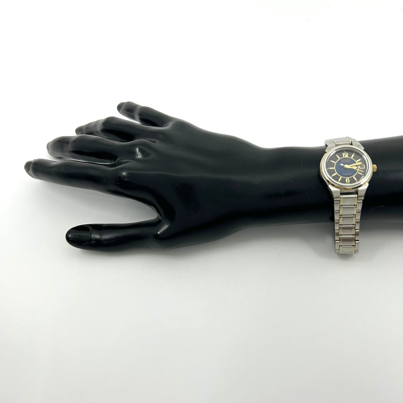 【稼働品】CITIZEN シチズン Eco-Drive エコドライブ レディース腕時計 E011 ネイビー文字盤 ゴールド コンビカラー デイト アナログ ソーラー 10気圧防水 エレガント クラシックデザイン クリーニング済み G6