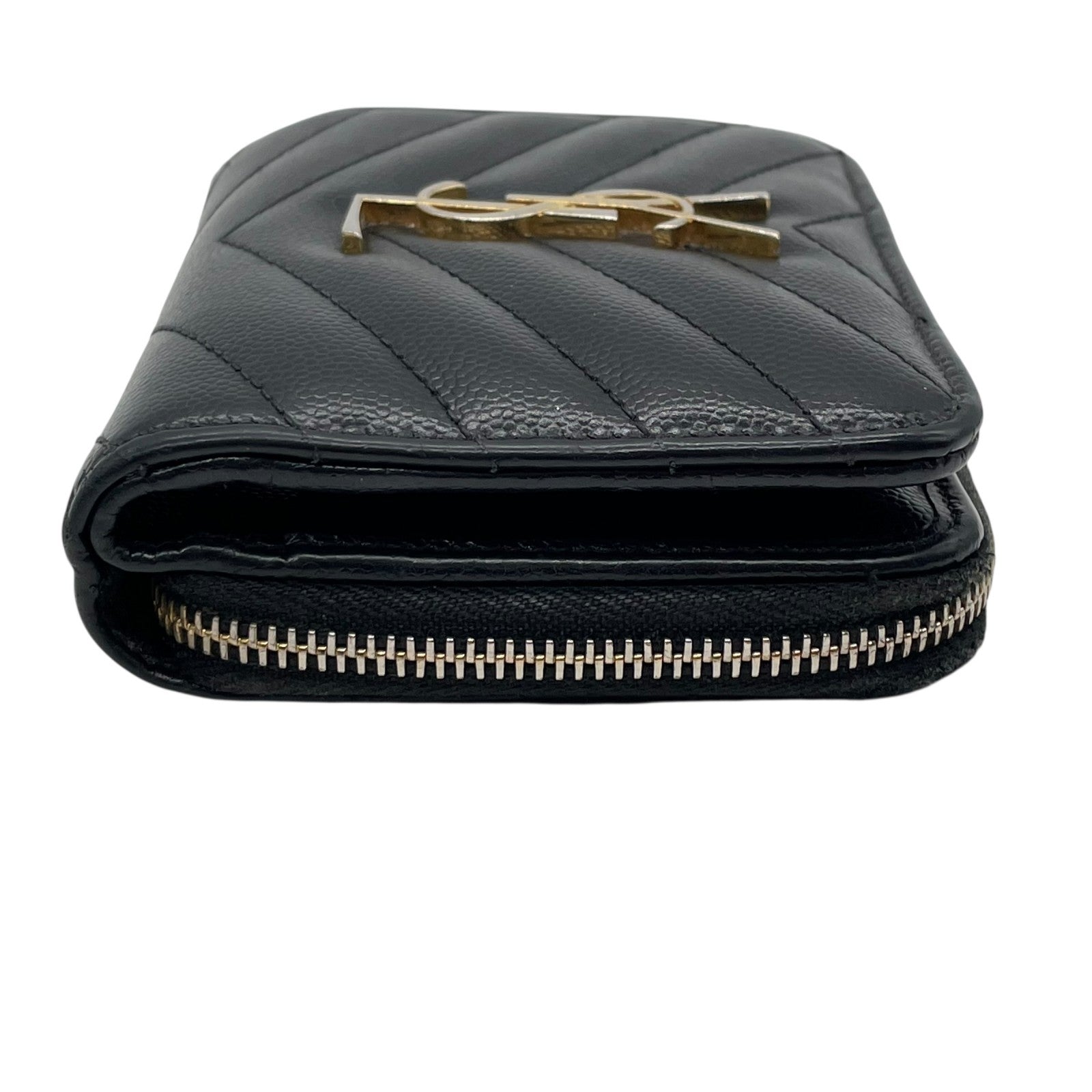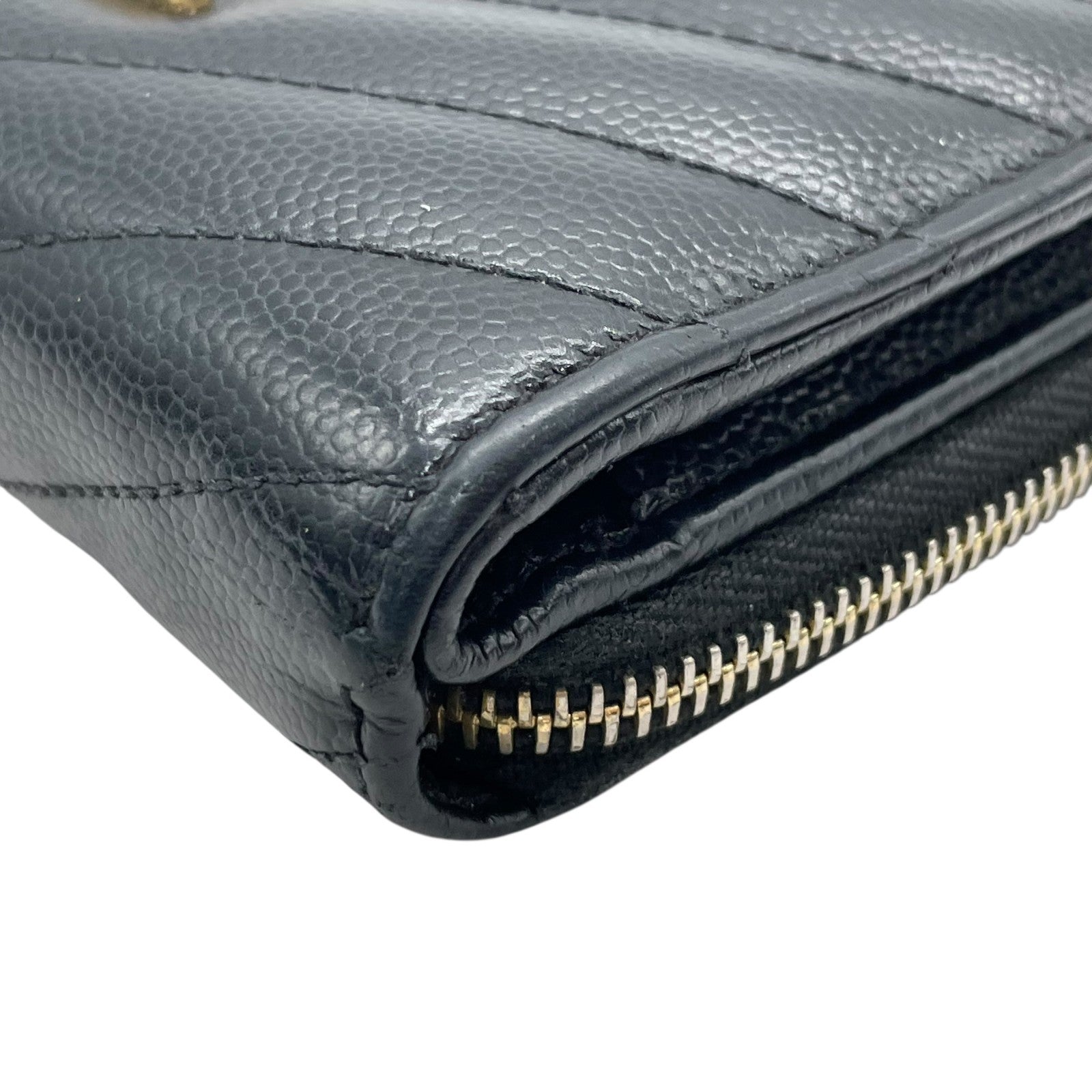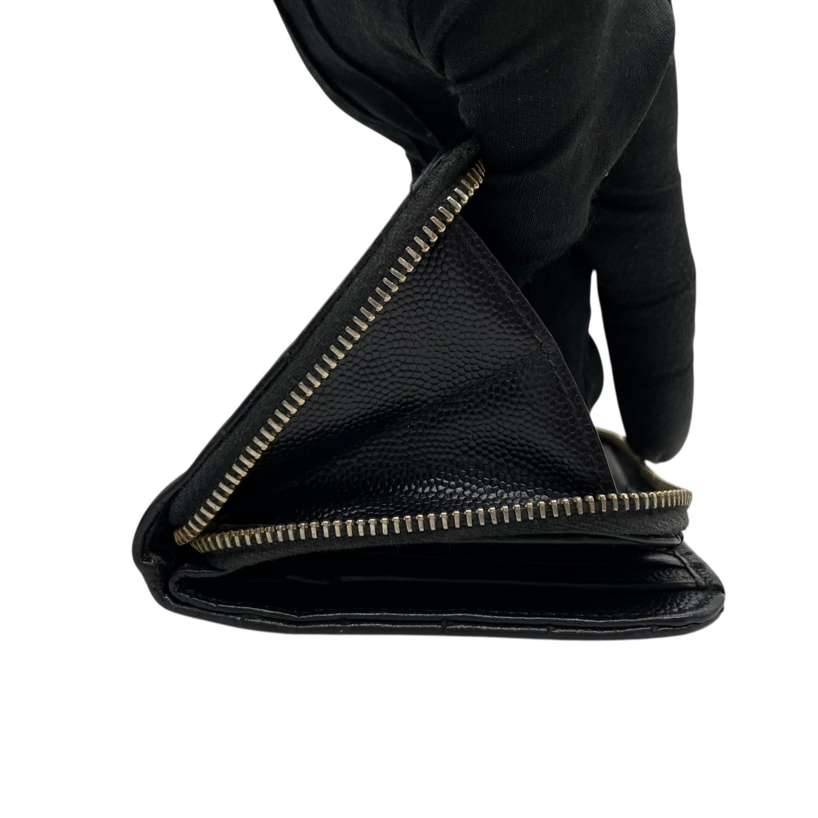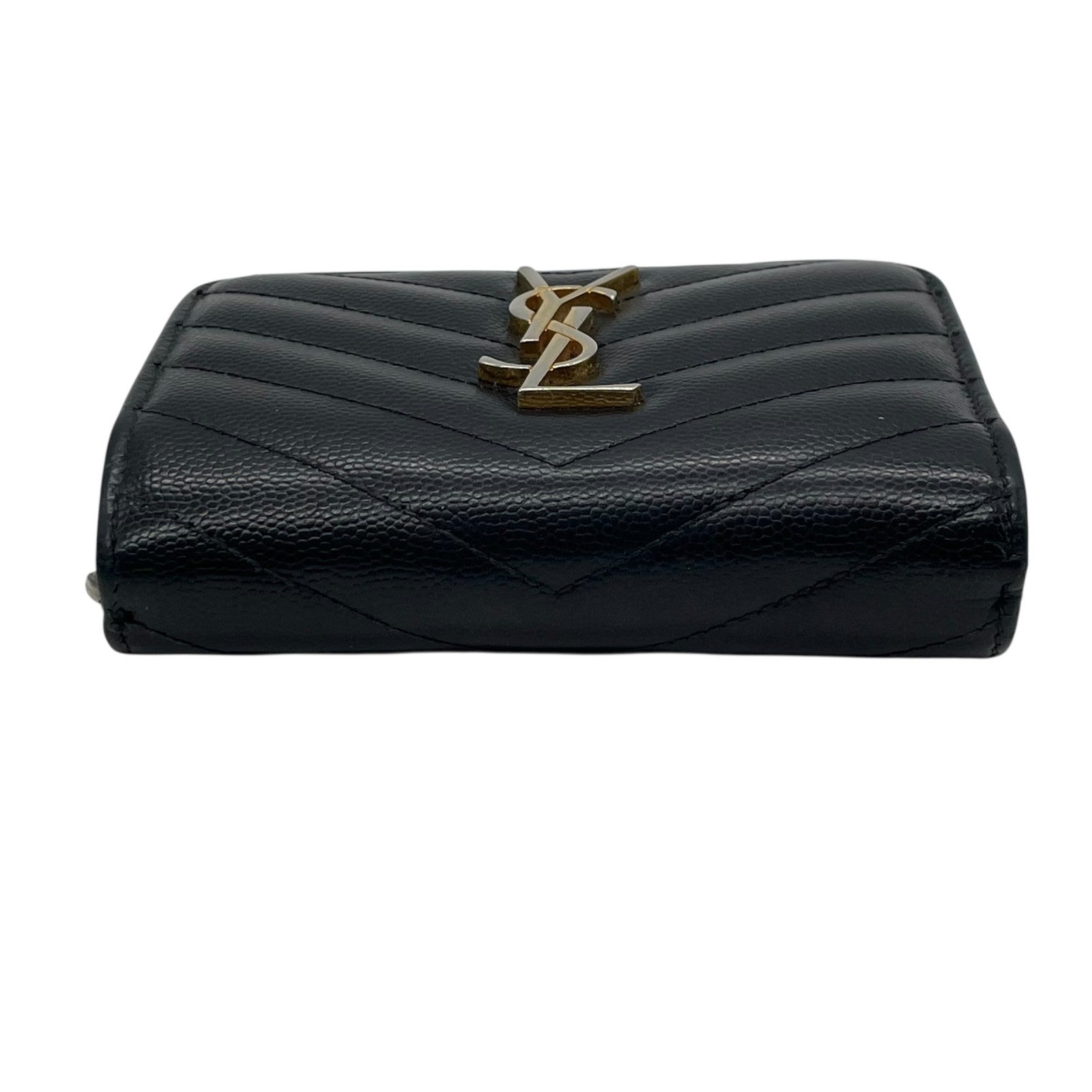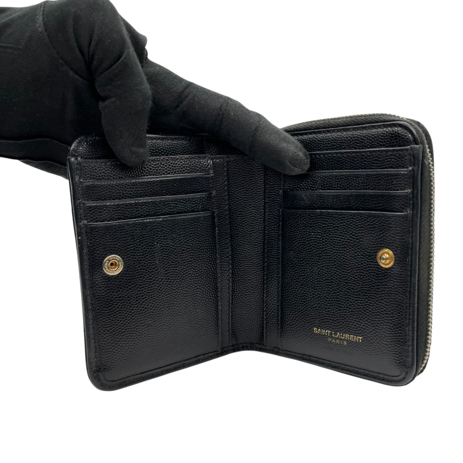 Saint Laurent Paris Compact Folding Wallet, Black, YSL Large Logo, Caviar Leather, V-Stitching, Gold Metal, Women's, M3
