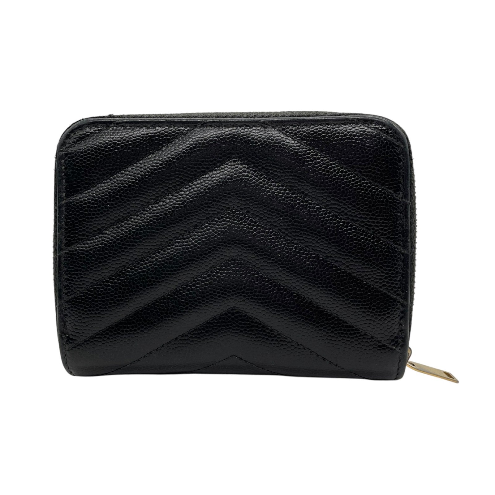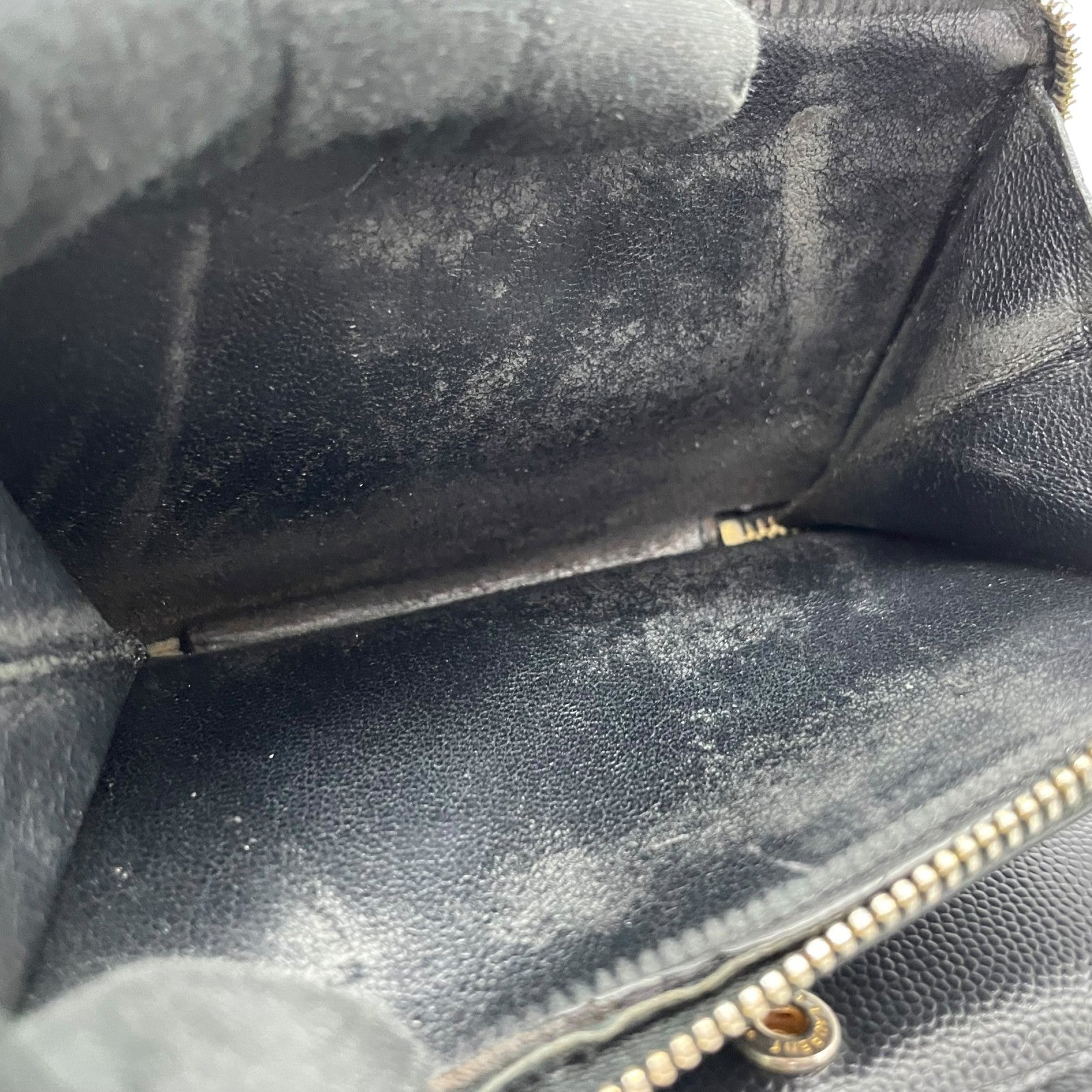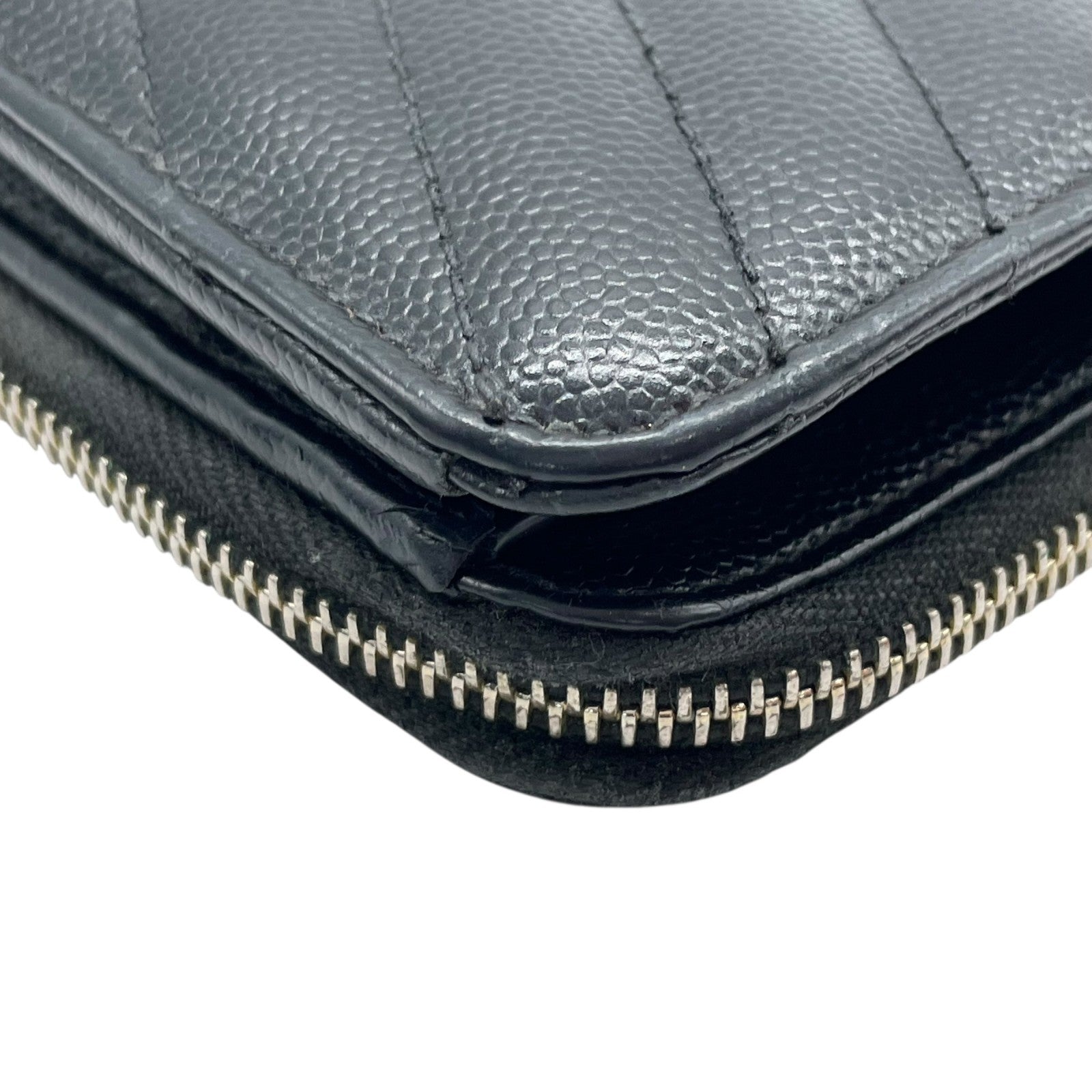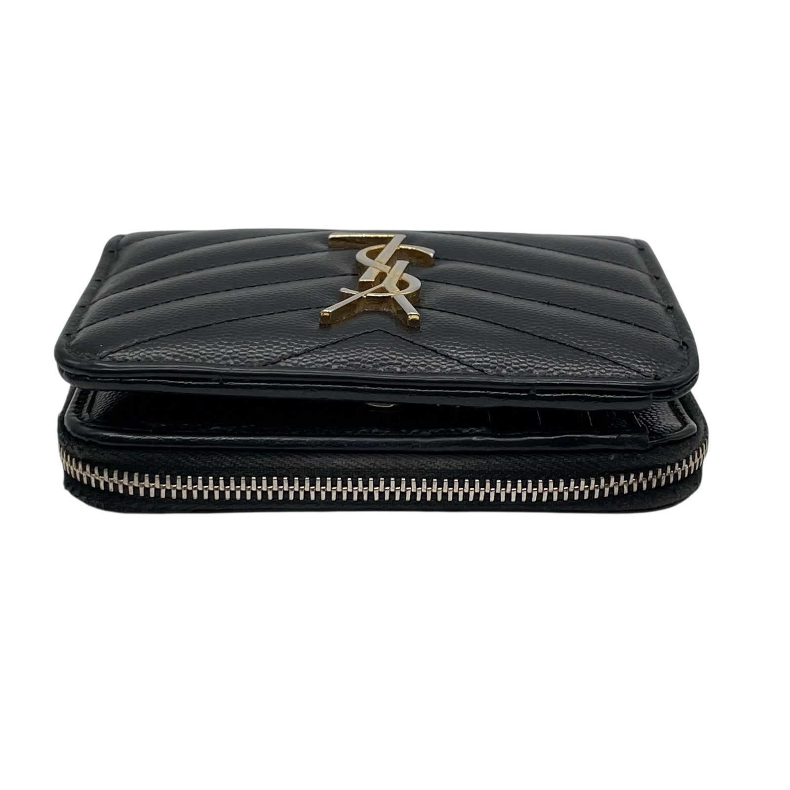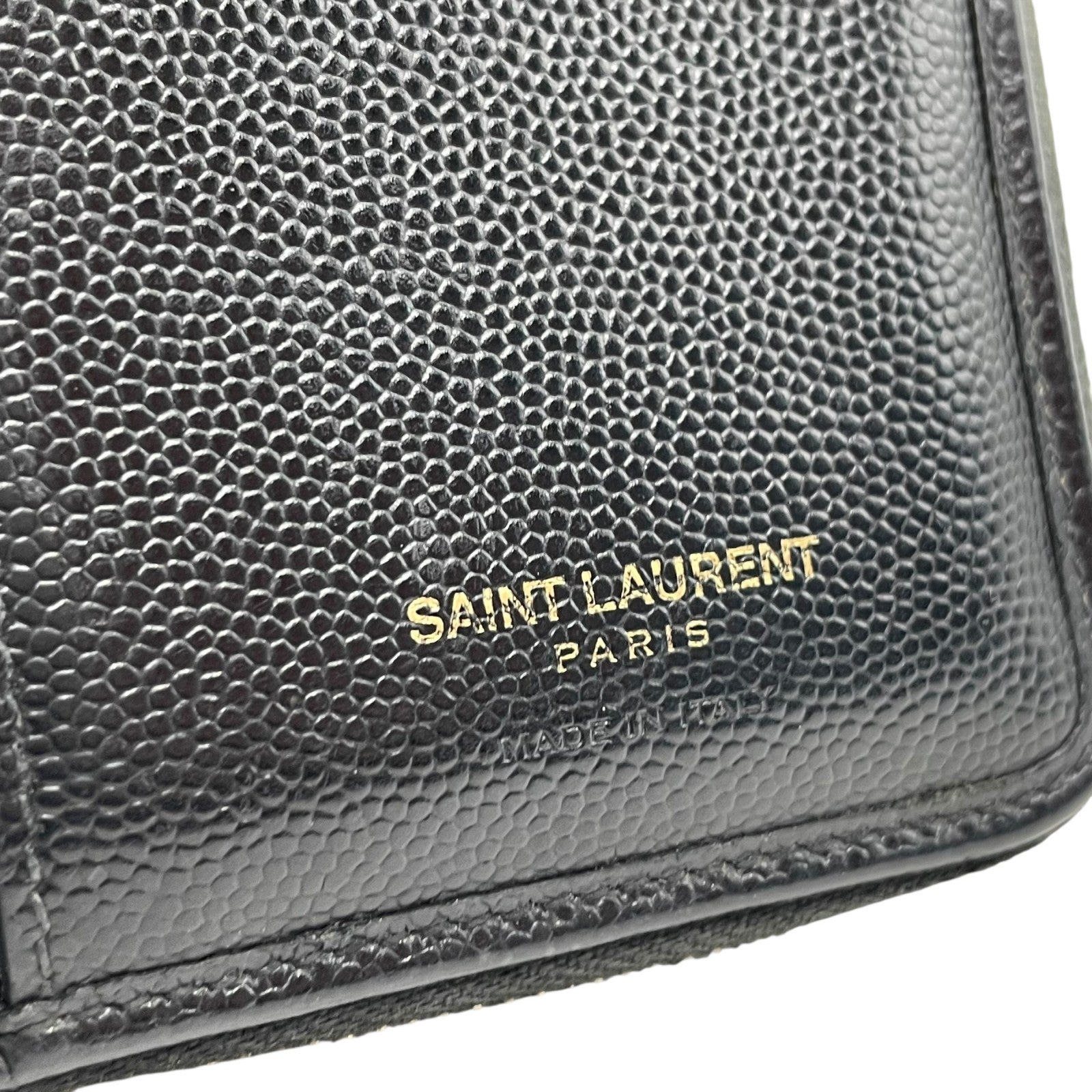 Saint Laurent Paris Compact Folding Wallet, Black, YSL Large Logo, Caviar Leather, V-Stitching, Gold Metal, Women's, M3