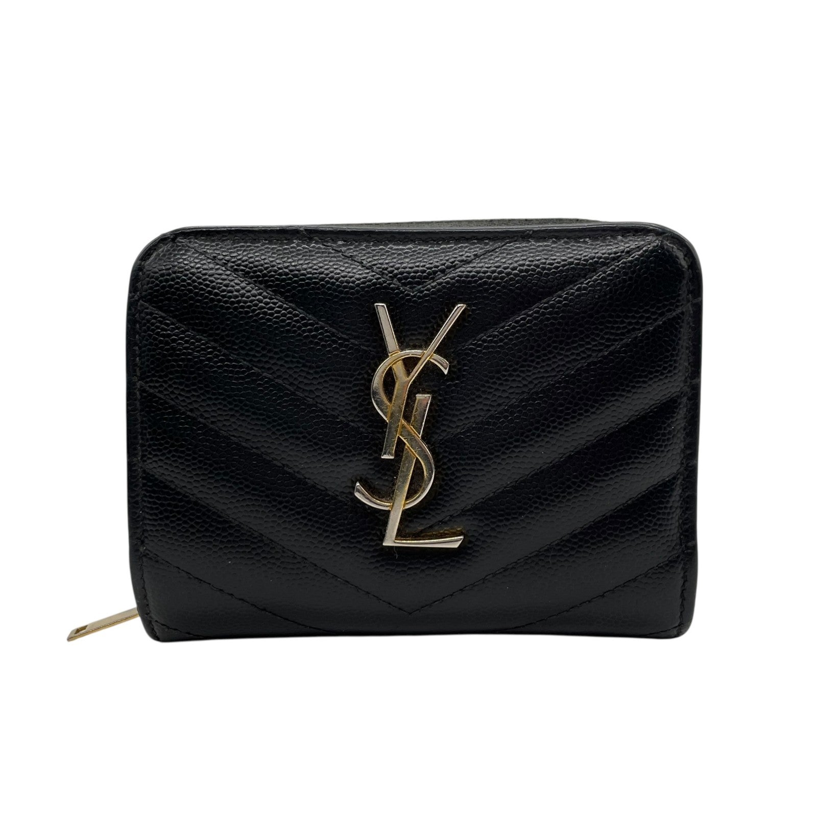 Authentic Saint Laurent Paris Compact Wallet Black YSL Large Logo Caviar Leather Gold Hardware Women