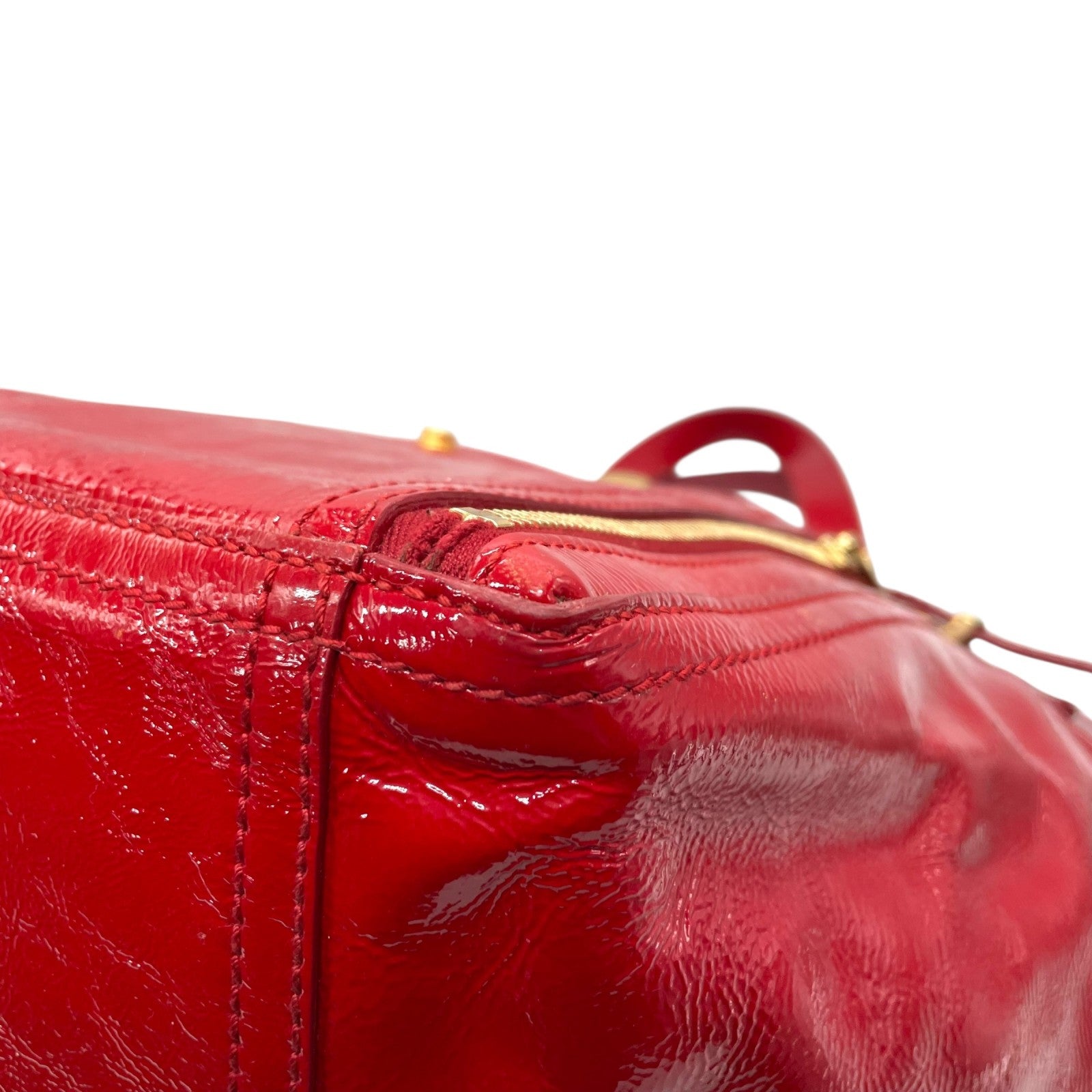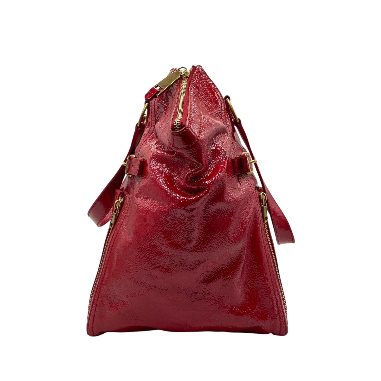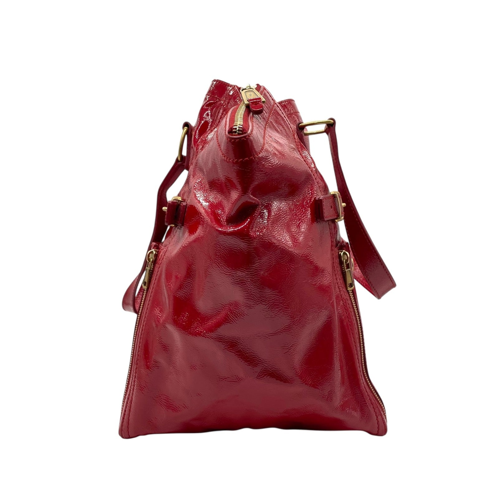 Authentic YVES SAINT LAURENT Downtown Patent Leather Red Enamel Vintage Tote Bag Large Capacity Women