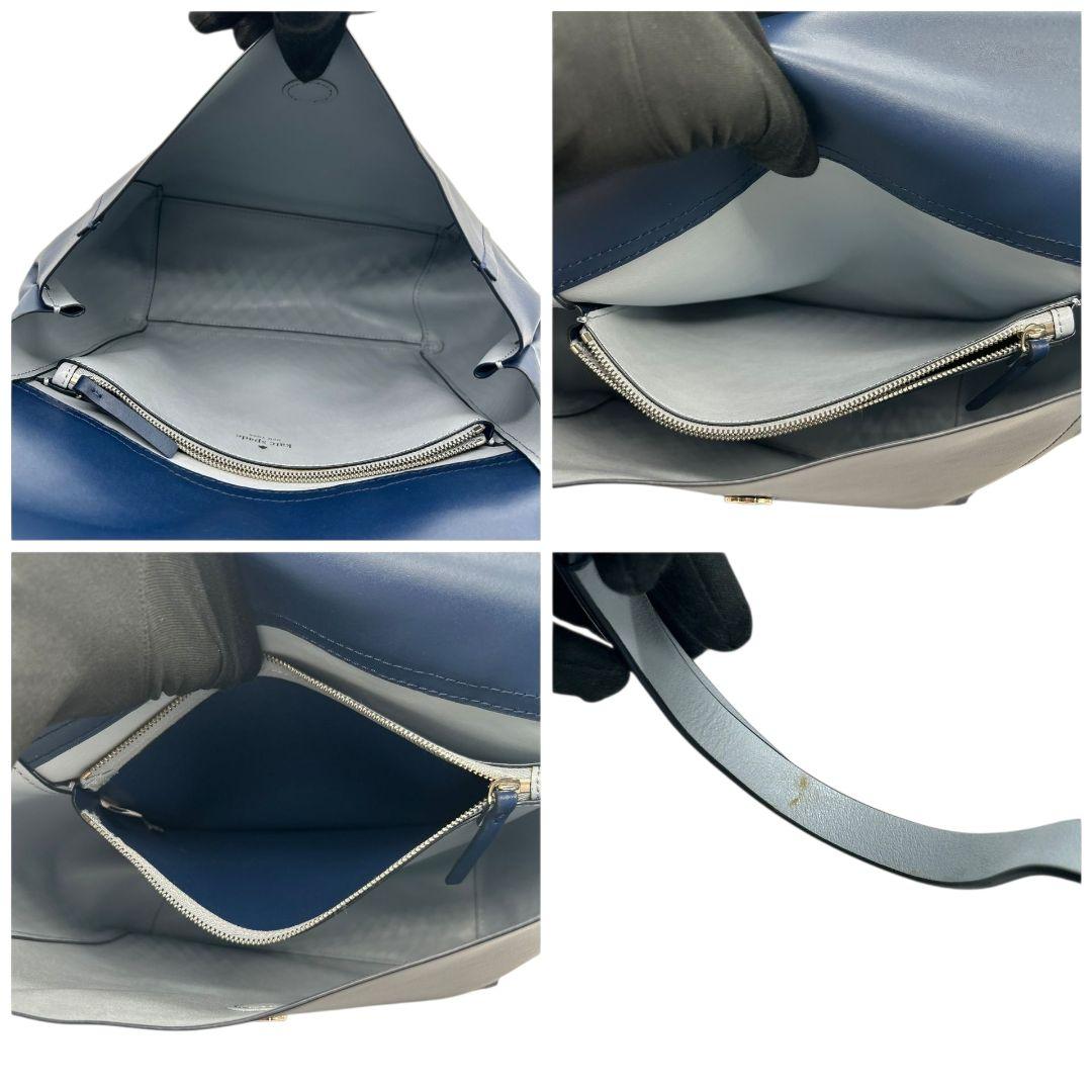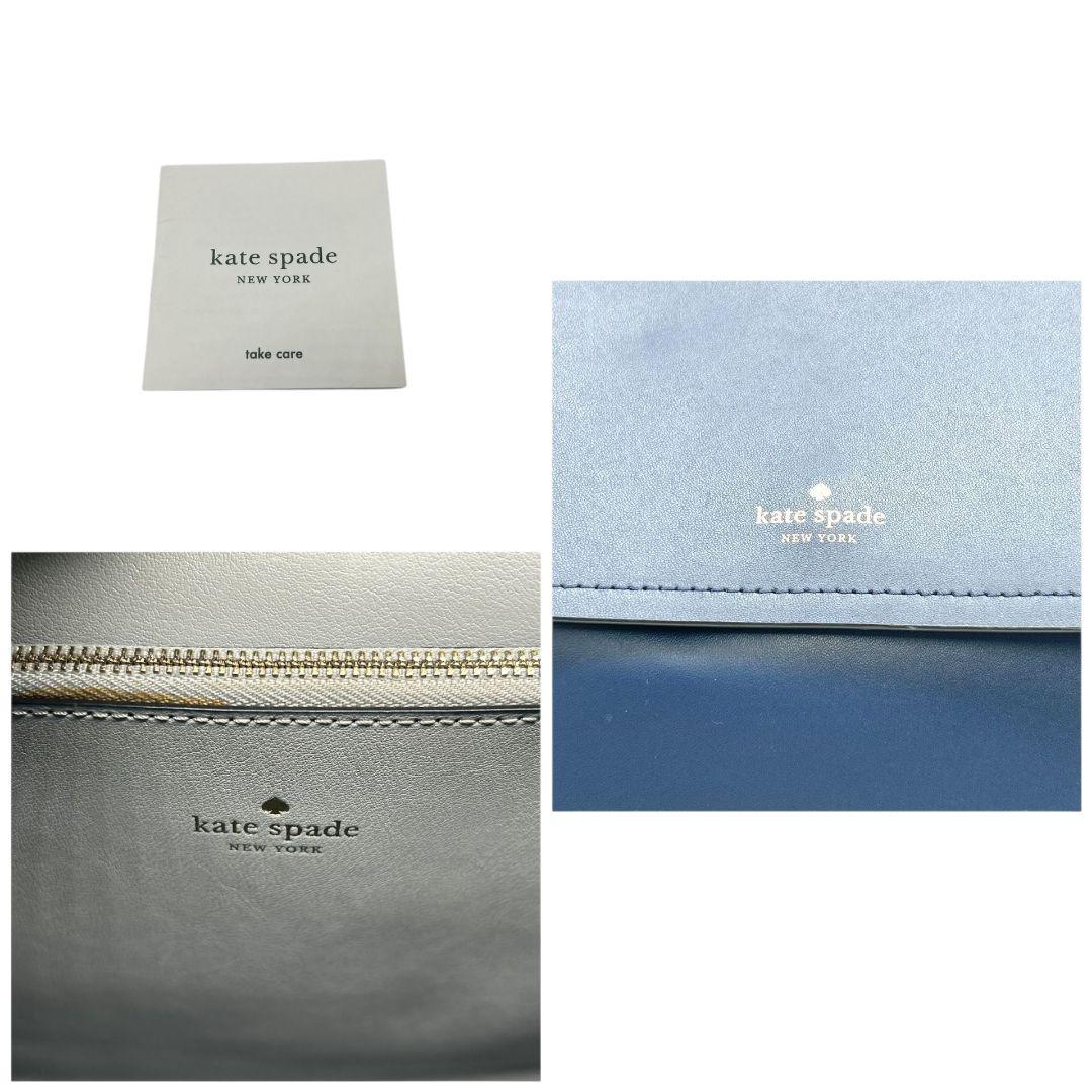 美品 ケイトスペード リュックサック 紺 A4収納 フラップ レザー 本革 ネイビー ブルー バックパック ロゴプレート シルバー金具 kate spade 上品デザイン