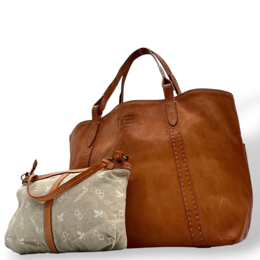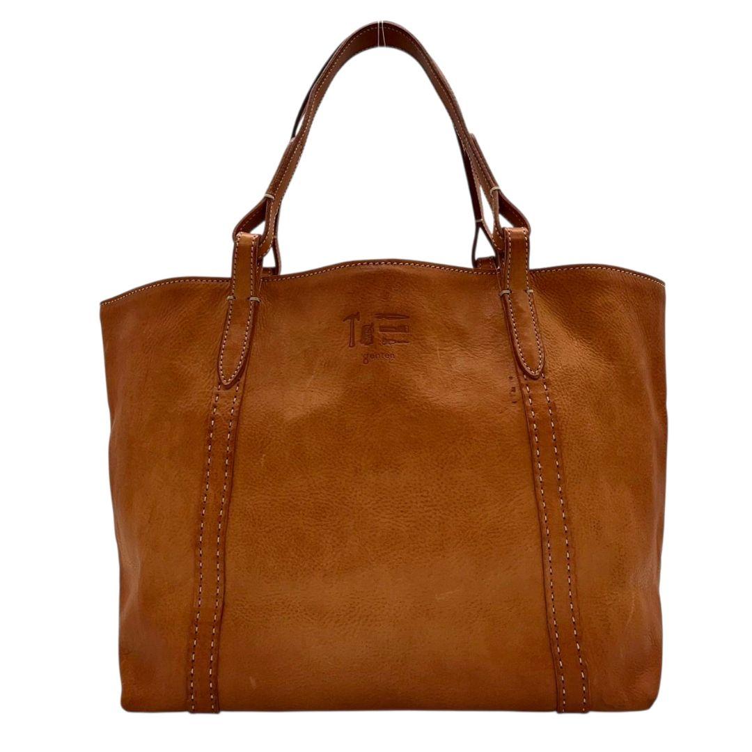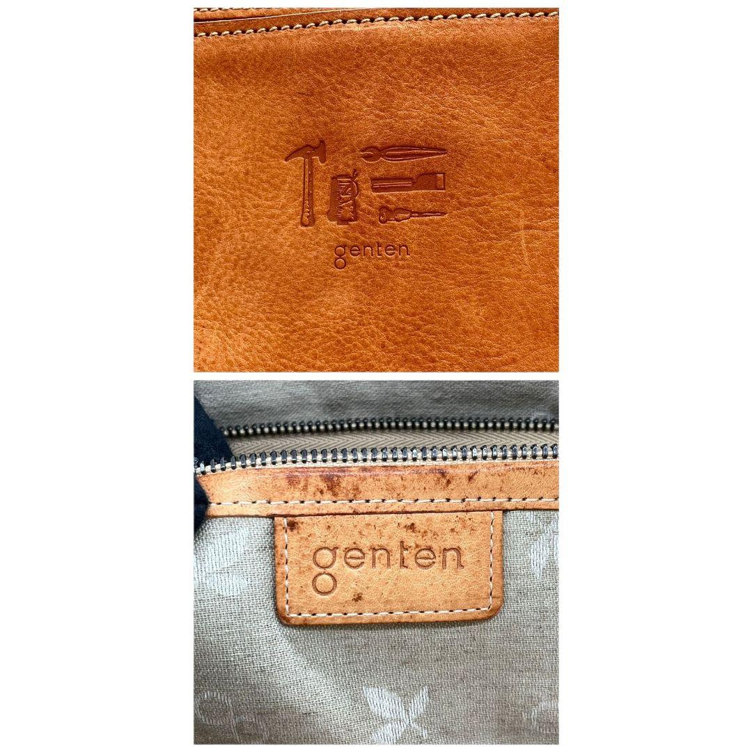 ゲンテン トートバッグ 茶 ポーチ付き A4収納 レザー 本革 ハンドバッグ ブラウン ワンショルダー バッグインバッグ 自立可 ロゴ genten s19 オシャレ 高級感