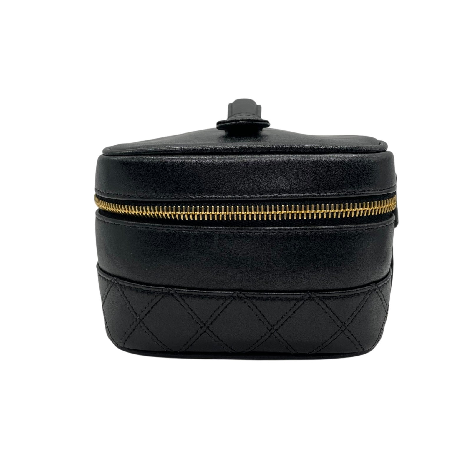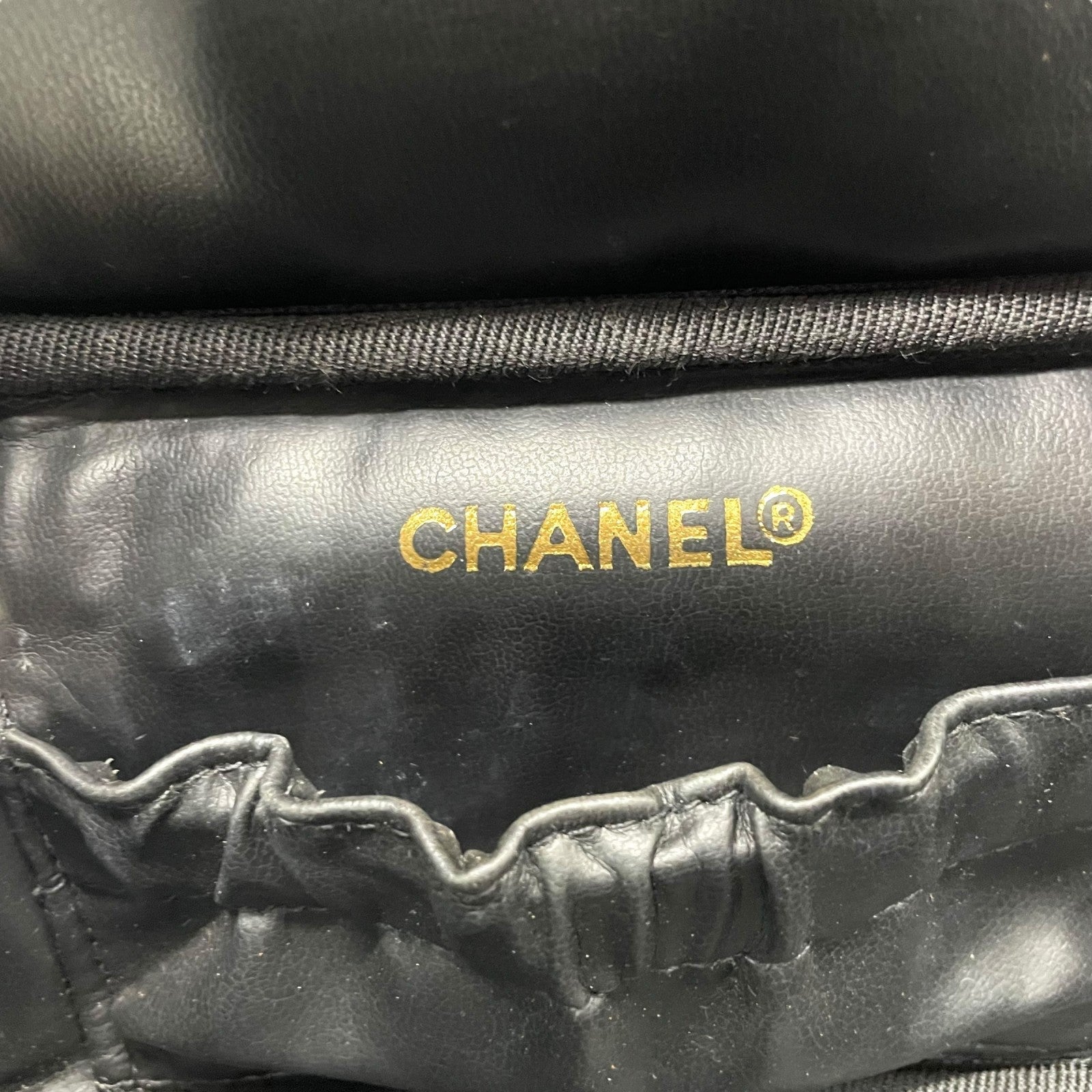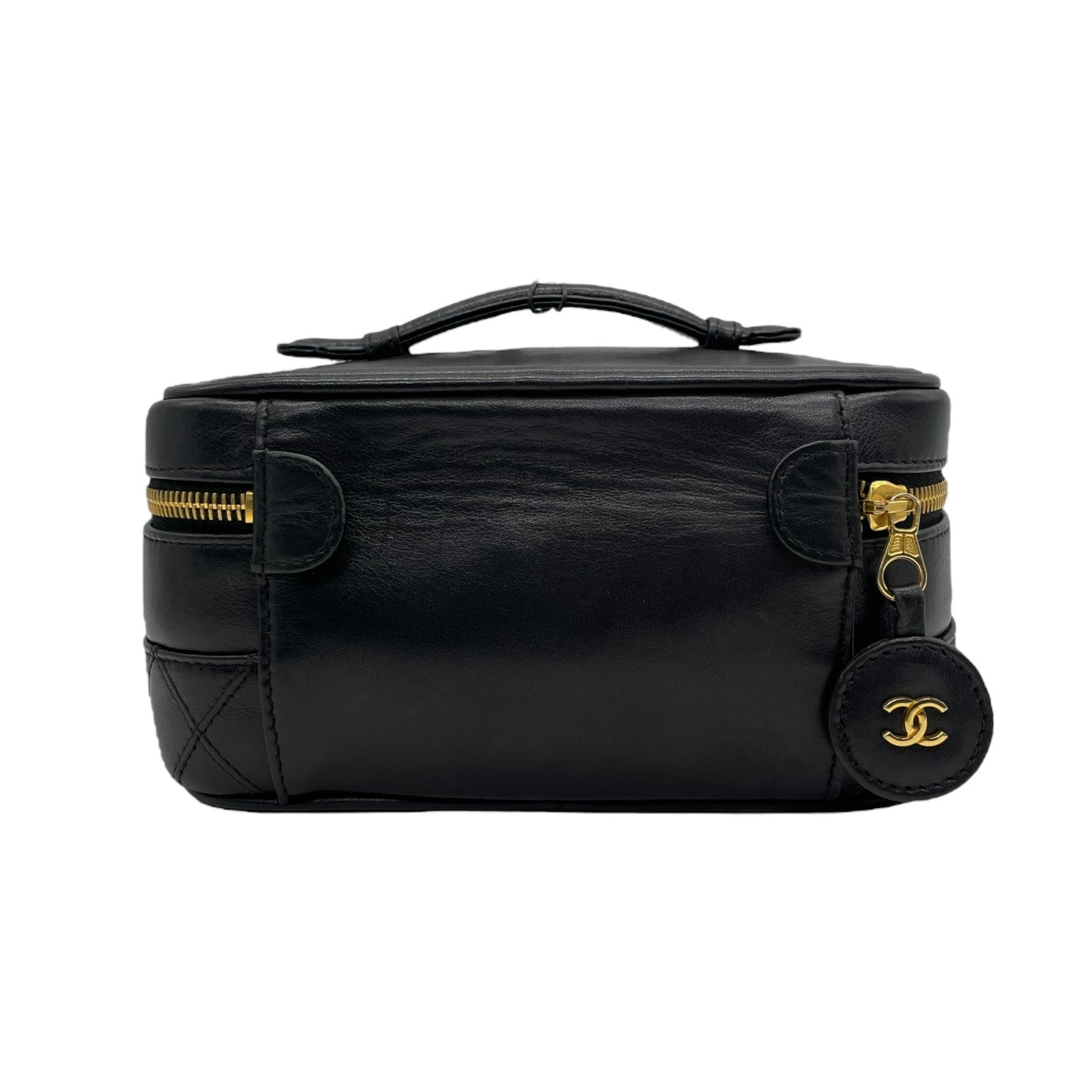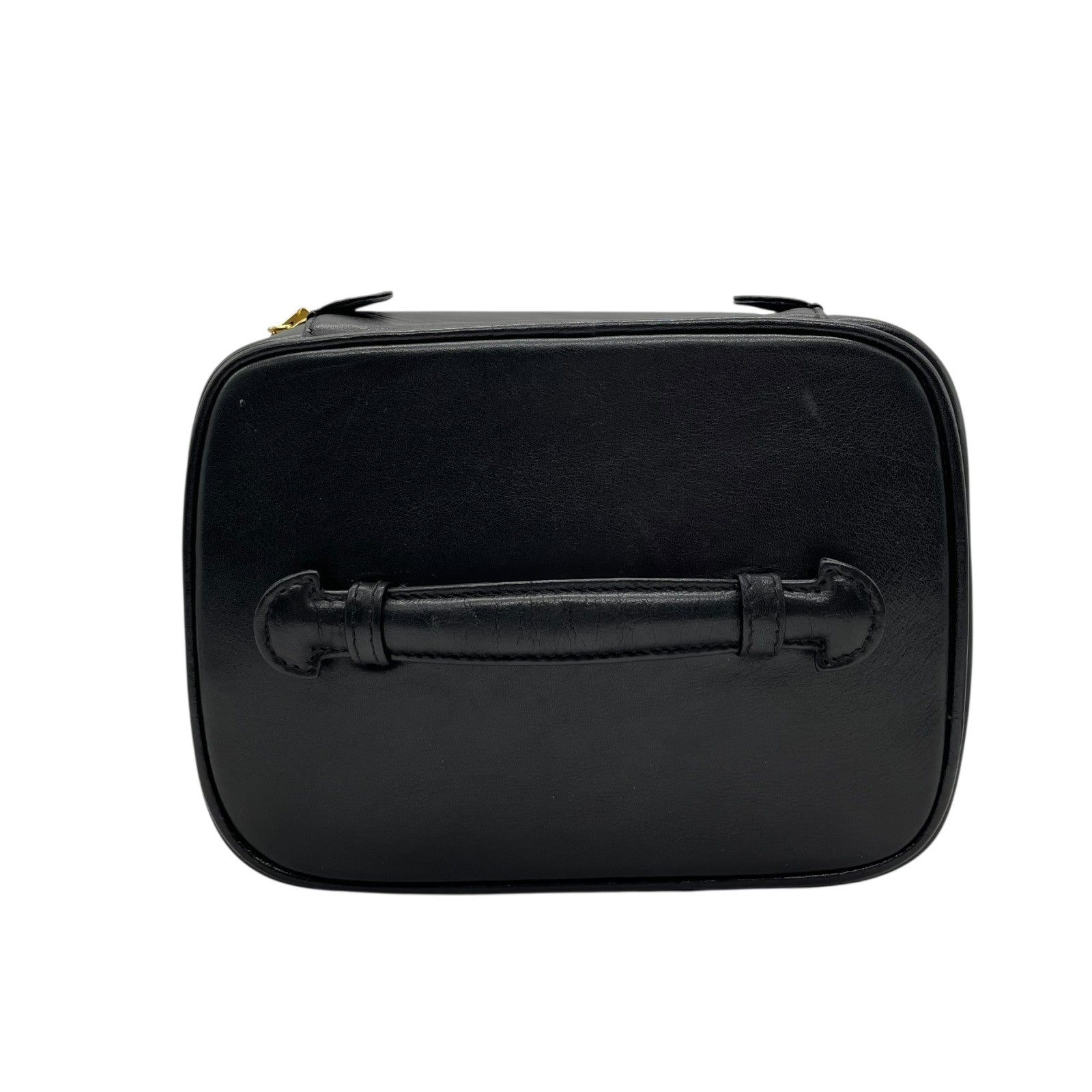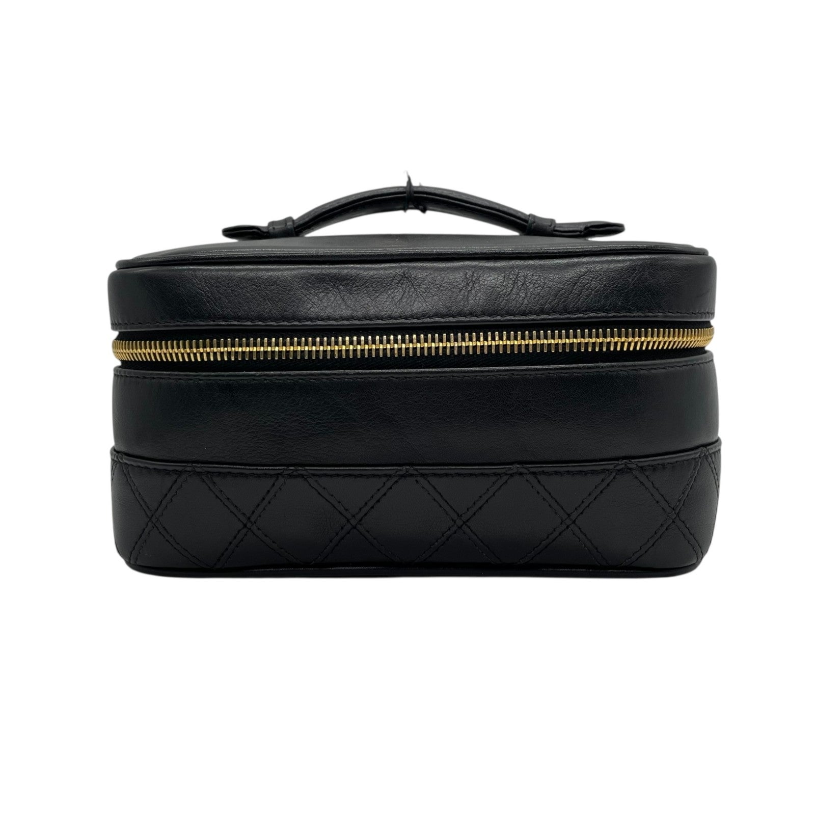 Authentic CHANEL Vanity Bag Handbag Black Bi-Color Leather Gold CC Logo Italy Women
