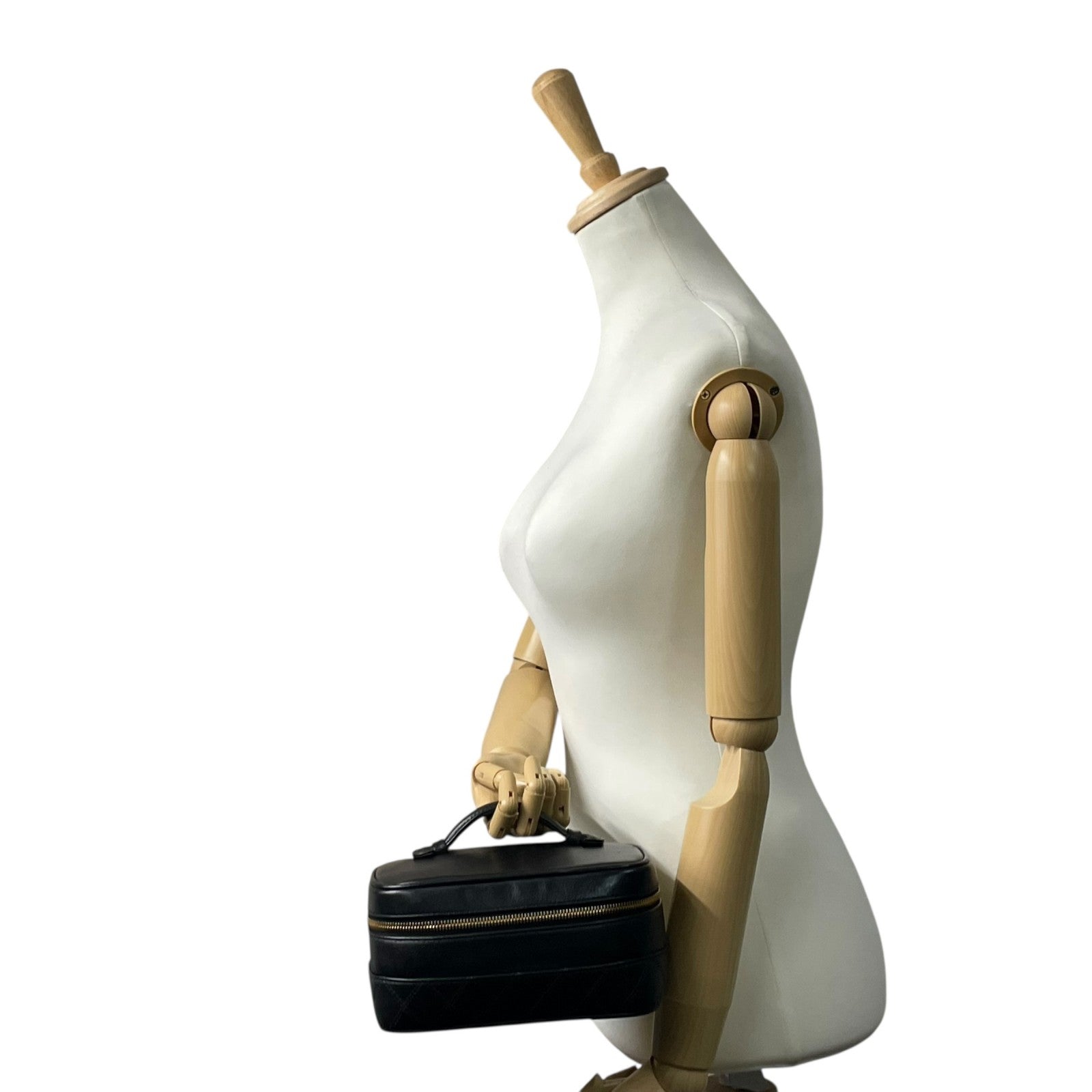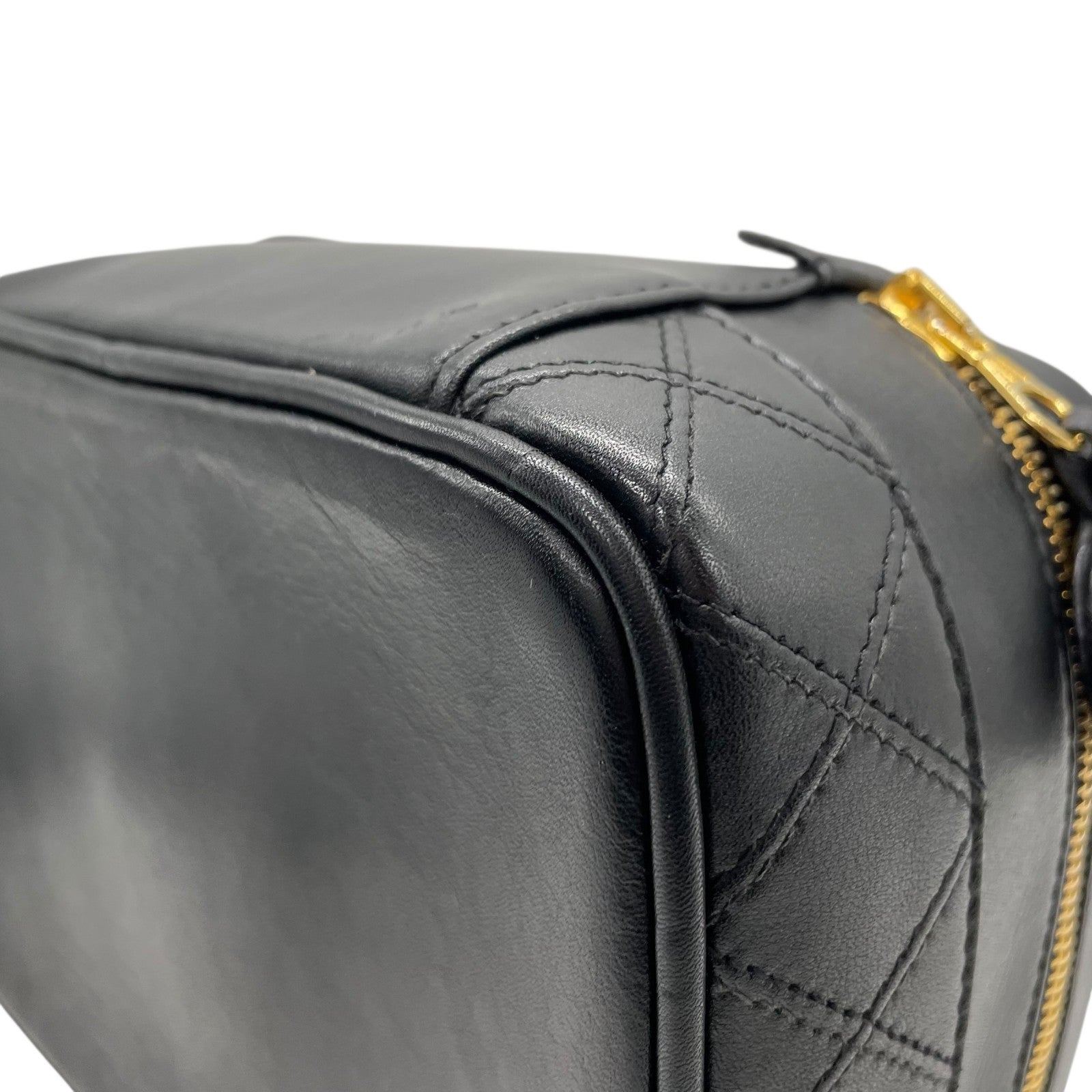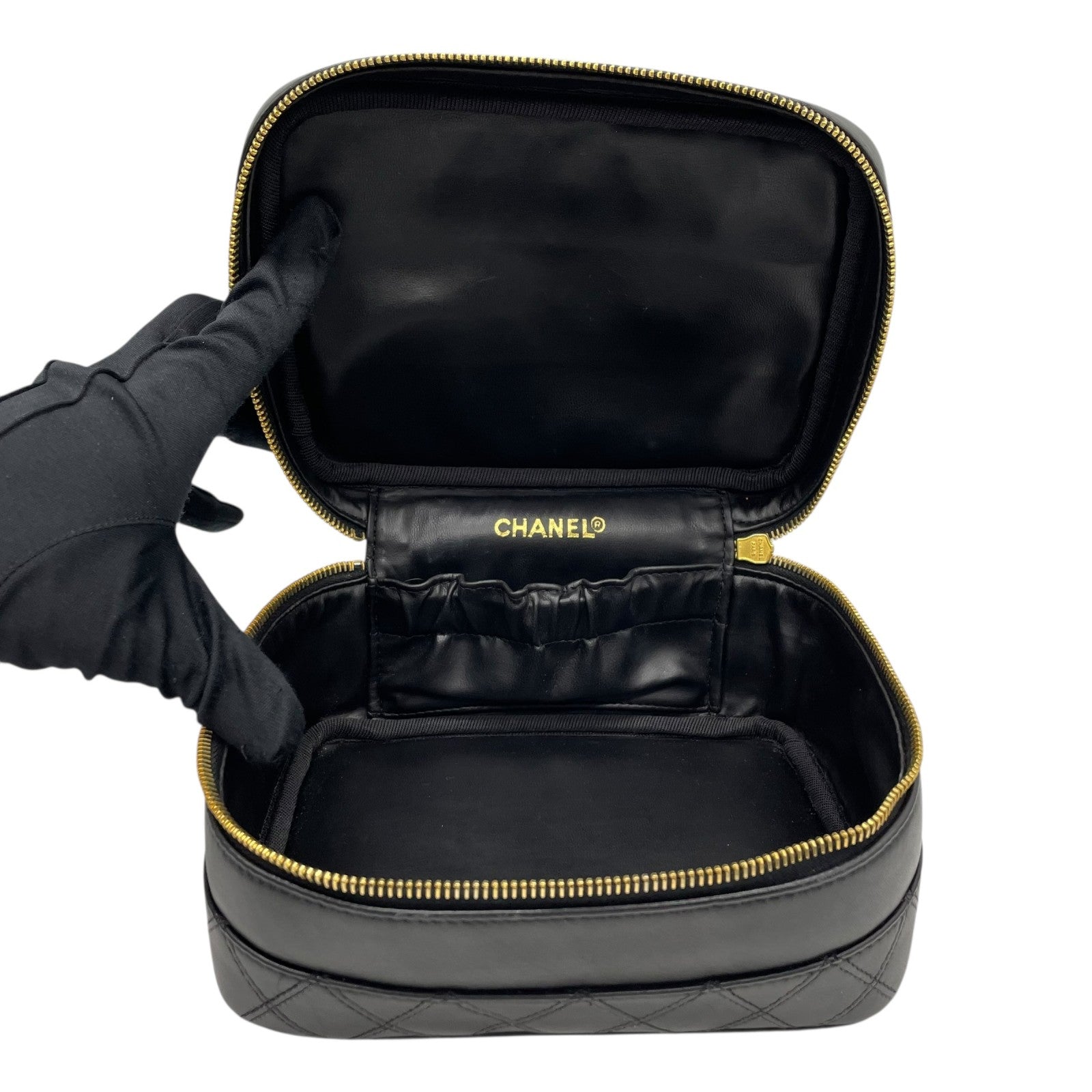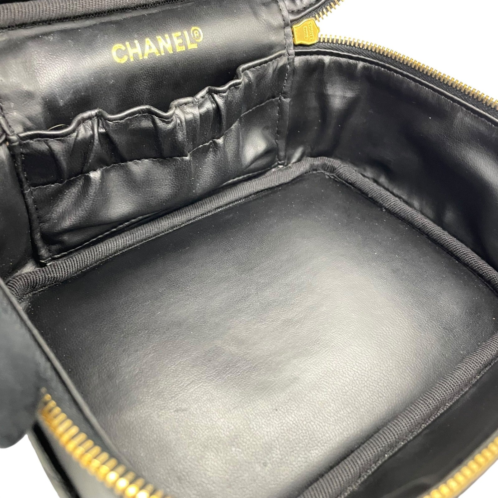 Authentic CHANEL Vanity Bag Handbag Black Bi-Color Leather Gold CC Logo Italy Women
