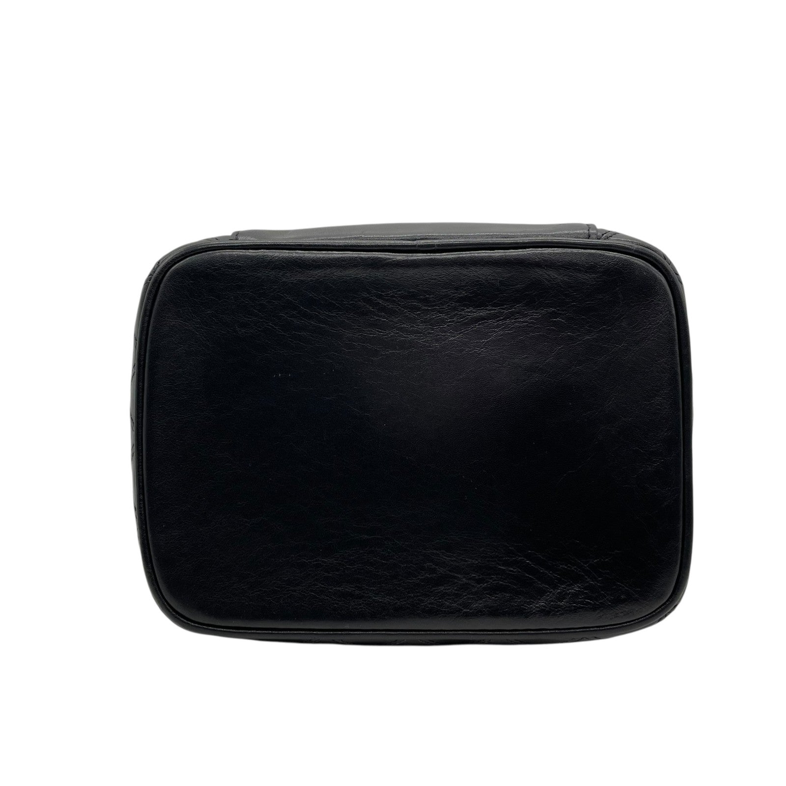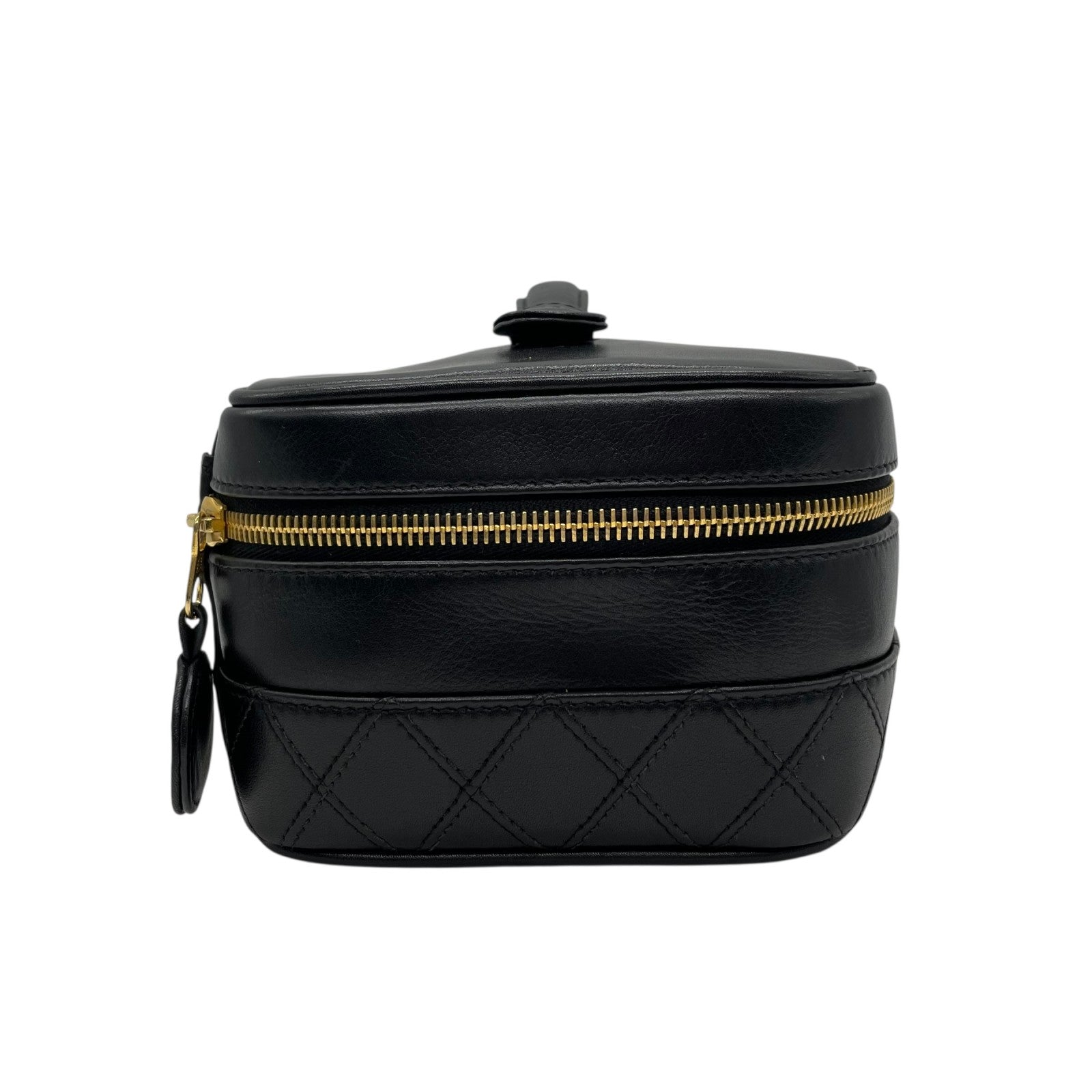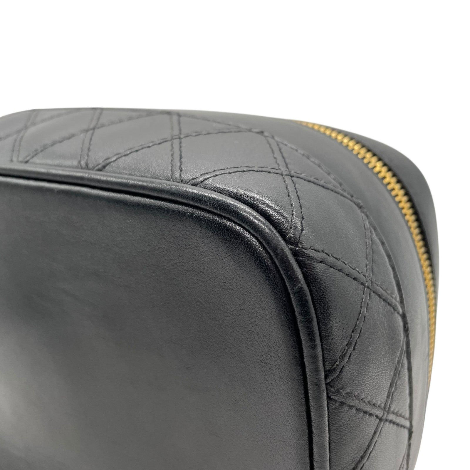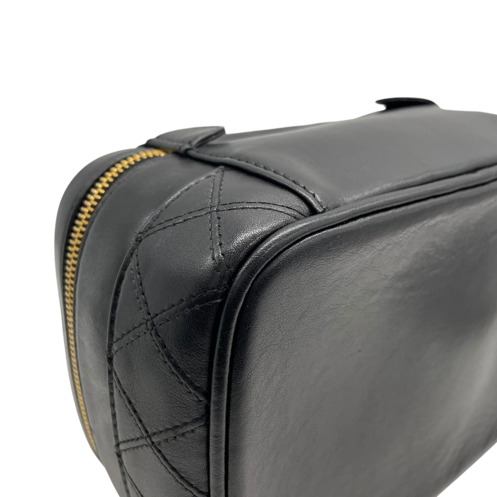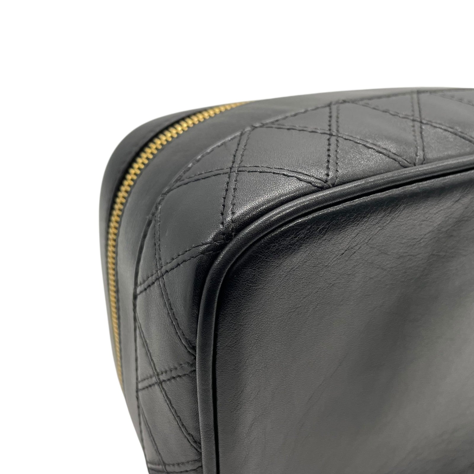 Authentic CHANEL Vanity Bag Handbag Black Bi-Color Leather Gold CC Logo Italy Women
