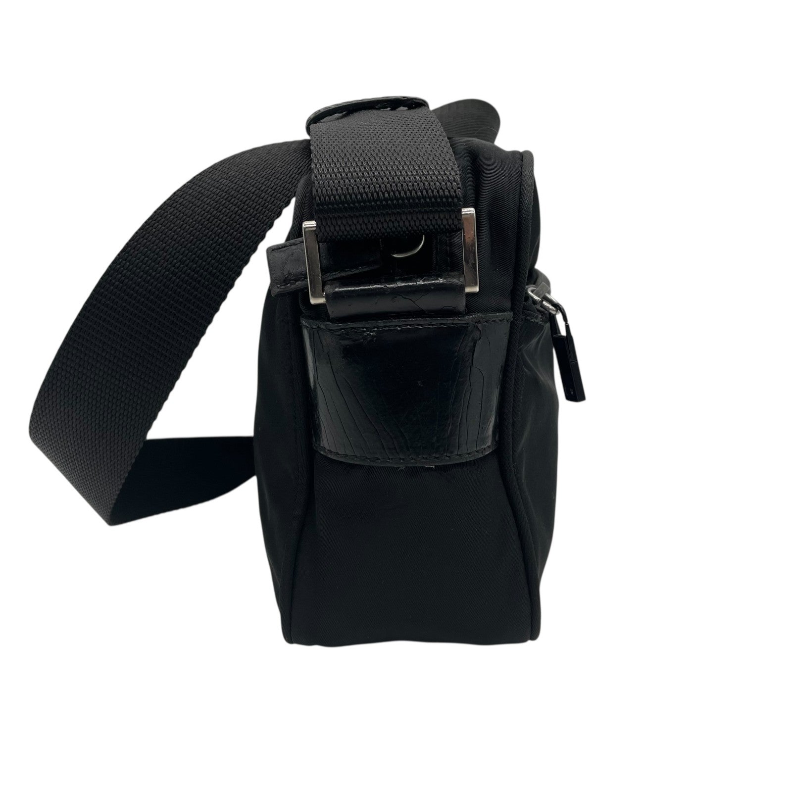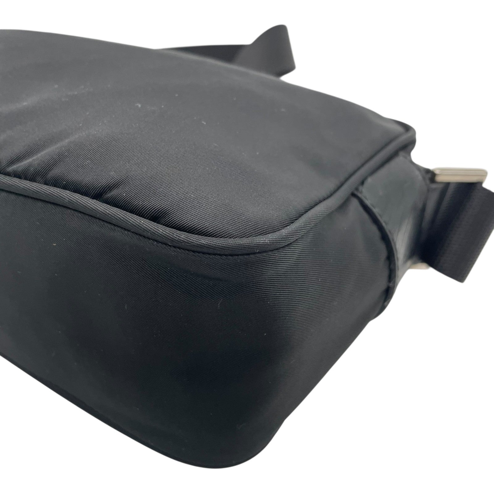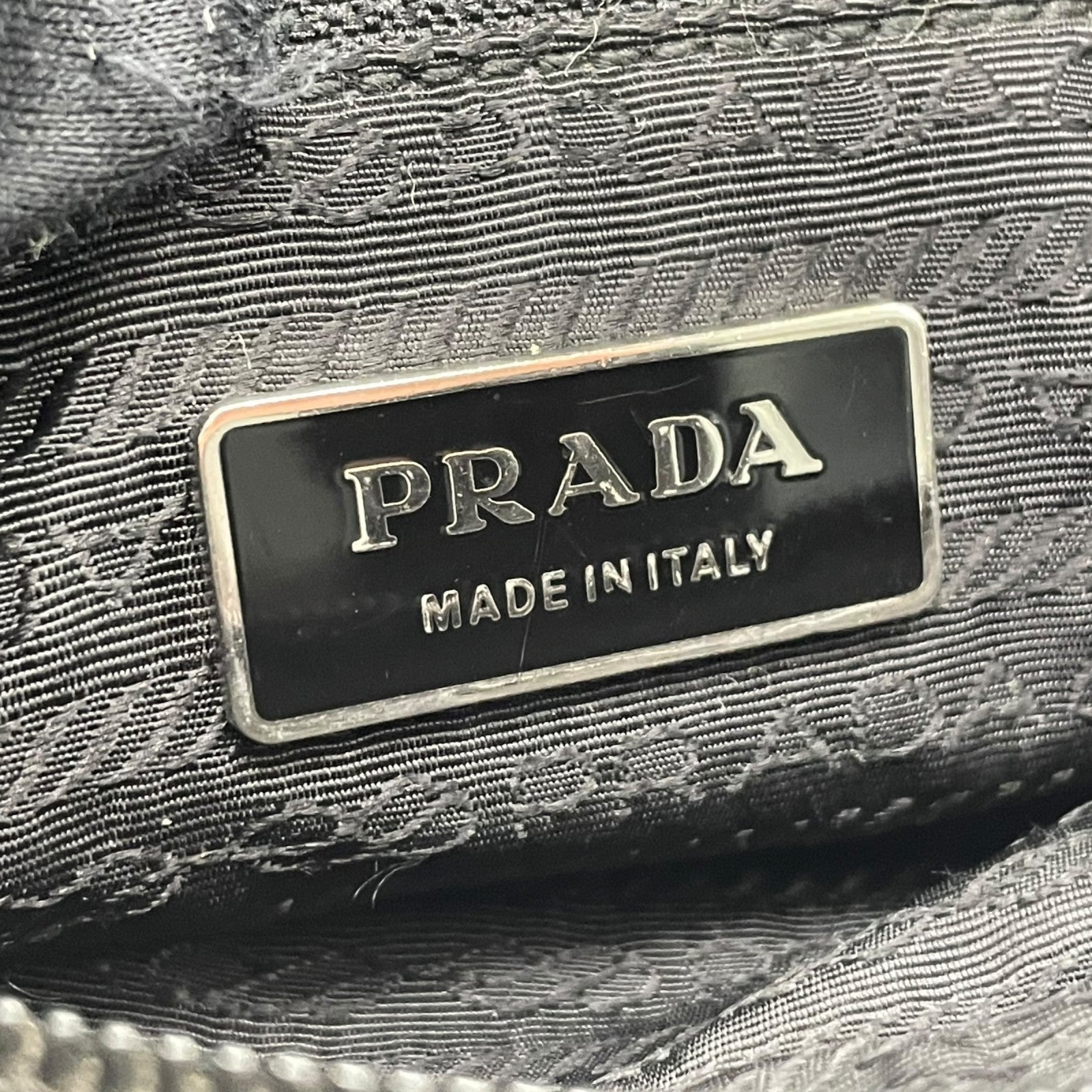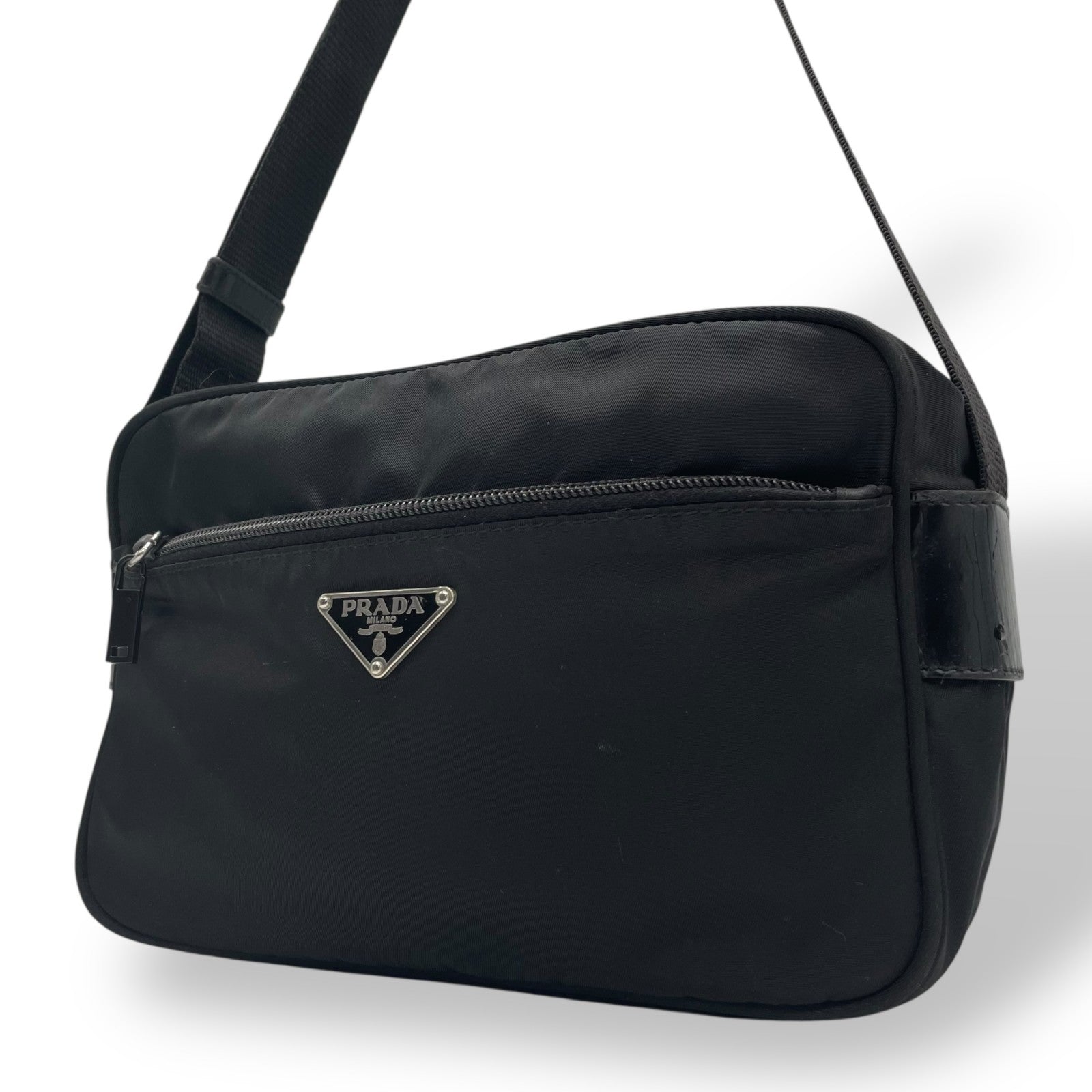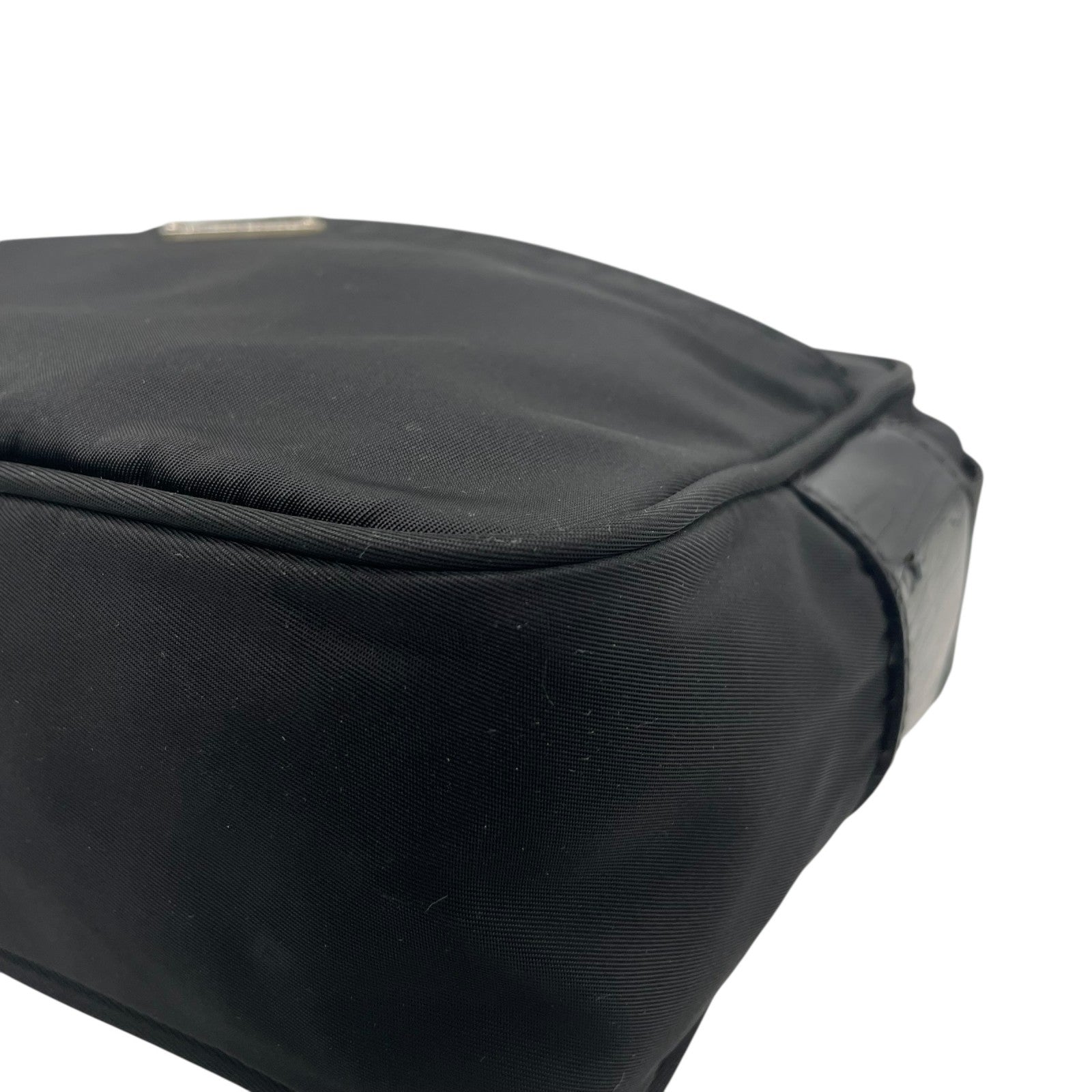 Authentic PRADA Shoulder Bag Triangle Logo Nylon Leather Black Silver Hardware BT0166