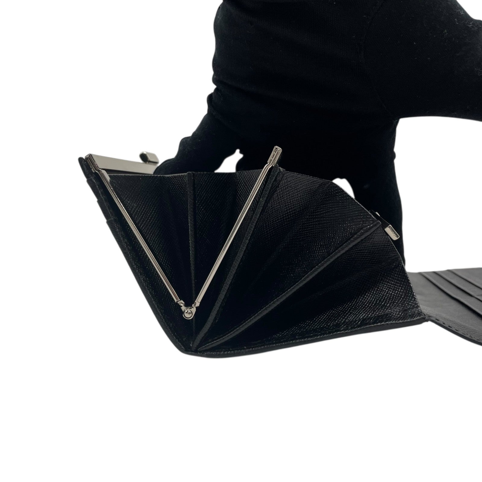 Excellent condition BURBERRY Purse Bifold Wallet with check embossing in black and silver metal, unisex, M5 size