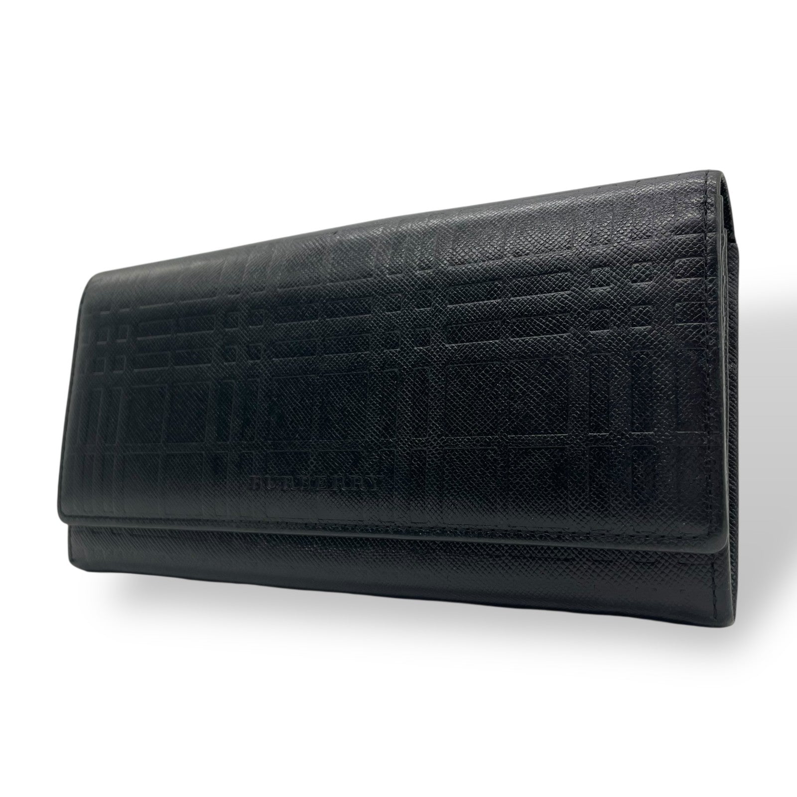 Authentic BURBERRY Long Wallet Bifold Check Embossed Logo Black Silver Hardware