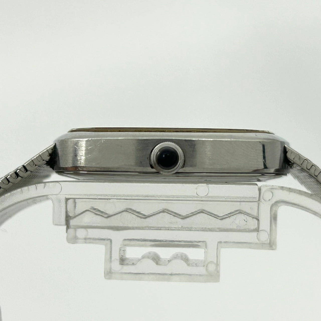AB 風防:極小傷 文字盤:汚れ 針:良好 リューズ:良好 ケース:小傷 裏盤:小傷 ブレス:小傷 ベルト:小傷 文字盤と針に汚れ、全体的に小傷がございますが、ビンテージならではの風合いがあるお品物です。 |