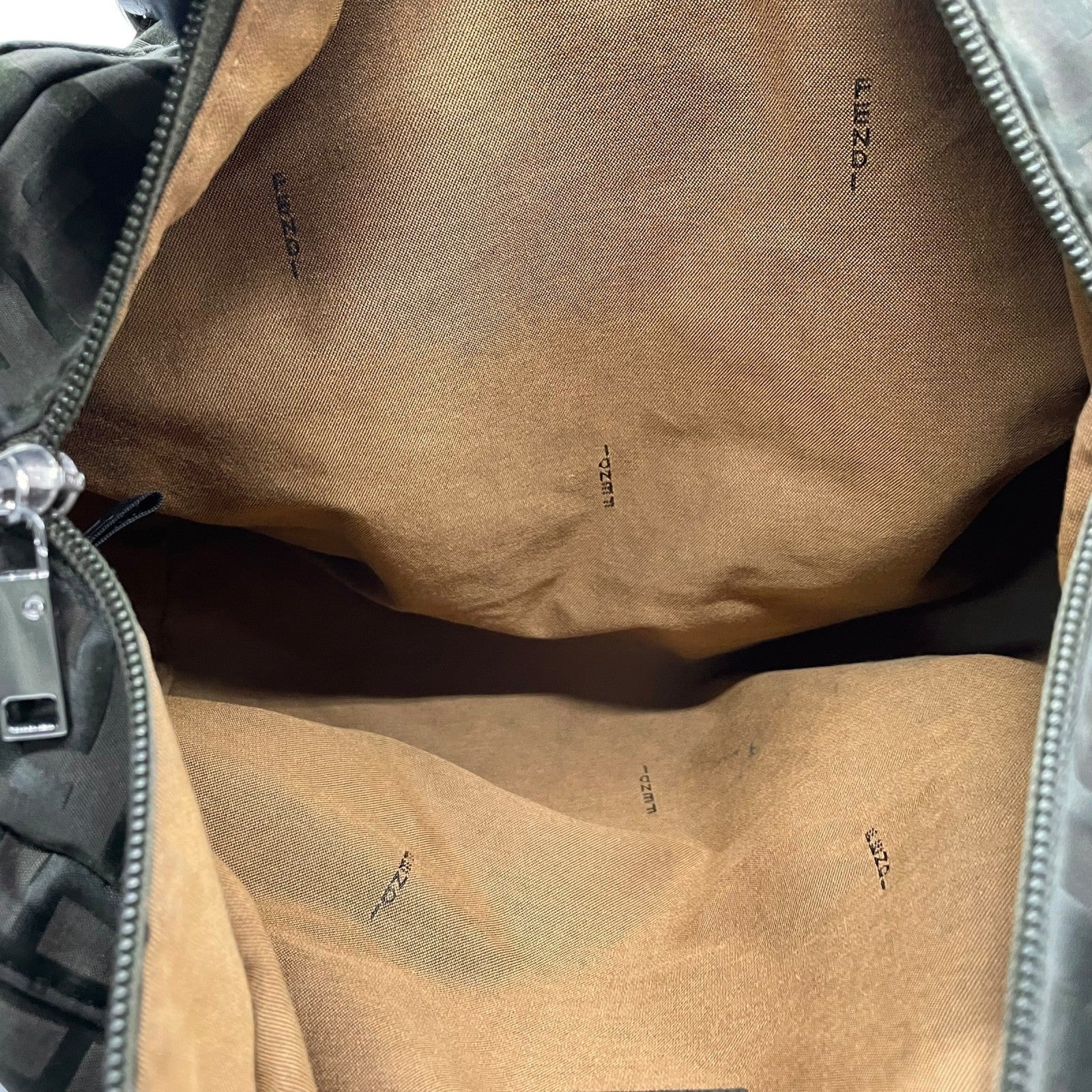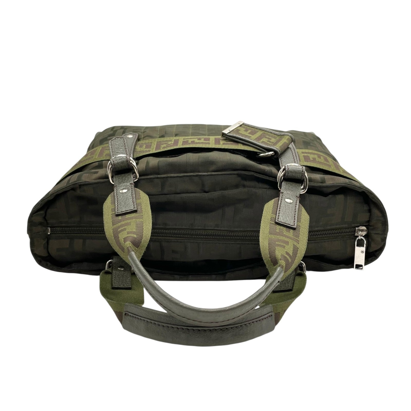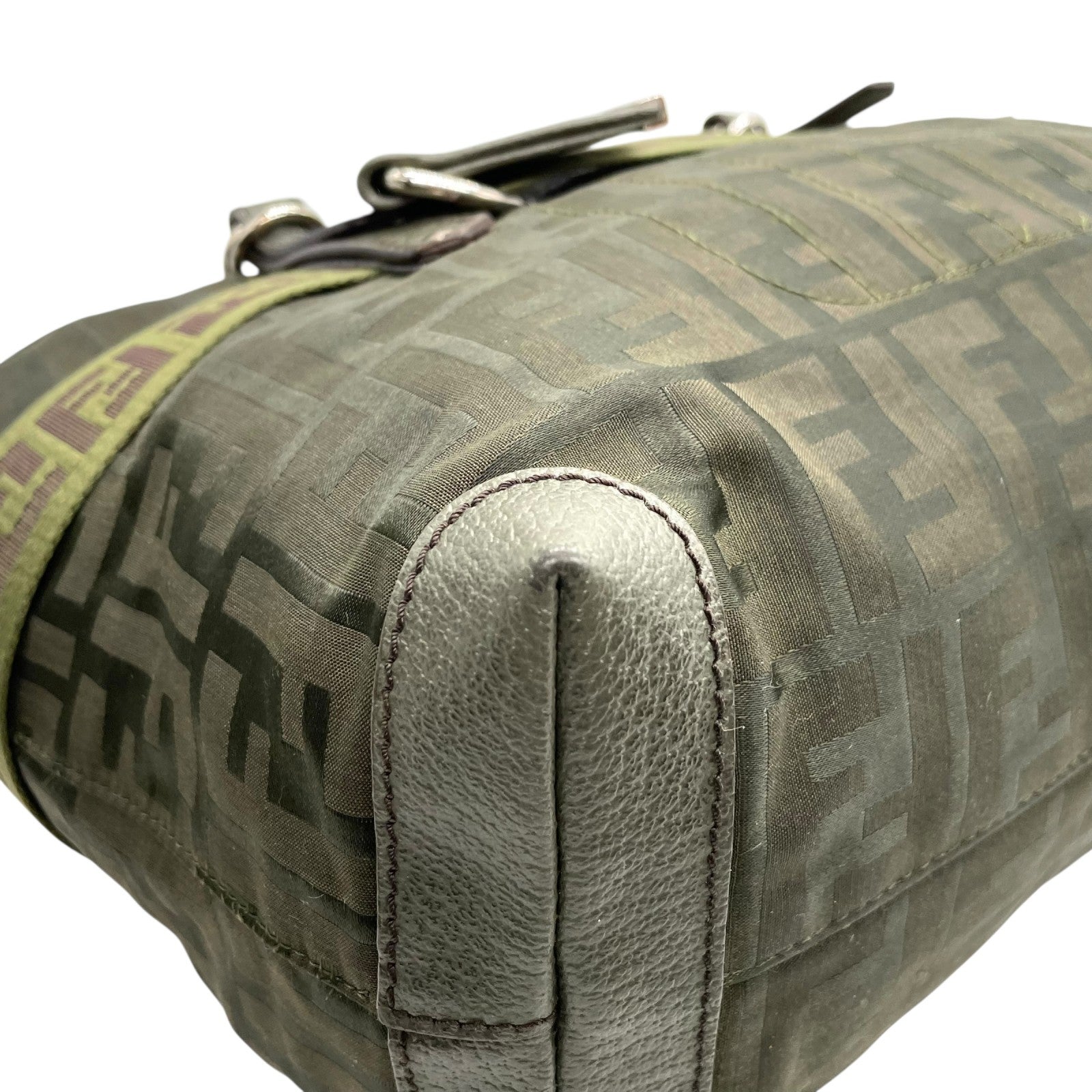 美品 FENDI フェンディ ズッカ柄 ナイロントート バッグ カーキ グリーン FF柄 ベルトデザイン シルバー金具 8BH143 ハンドバッグ レディース B1