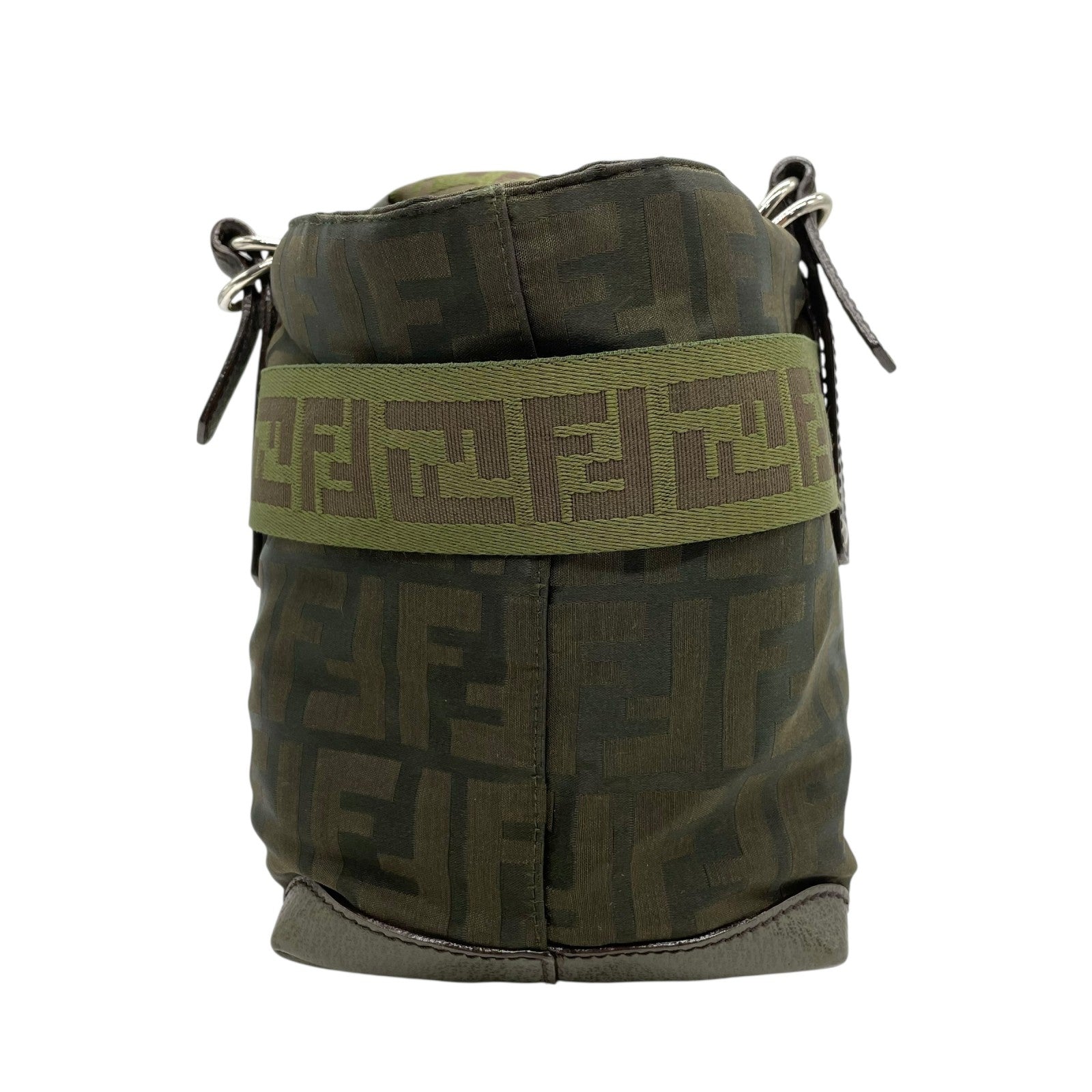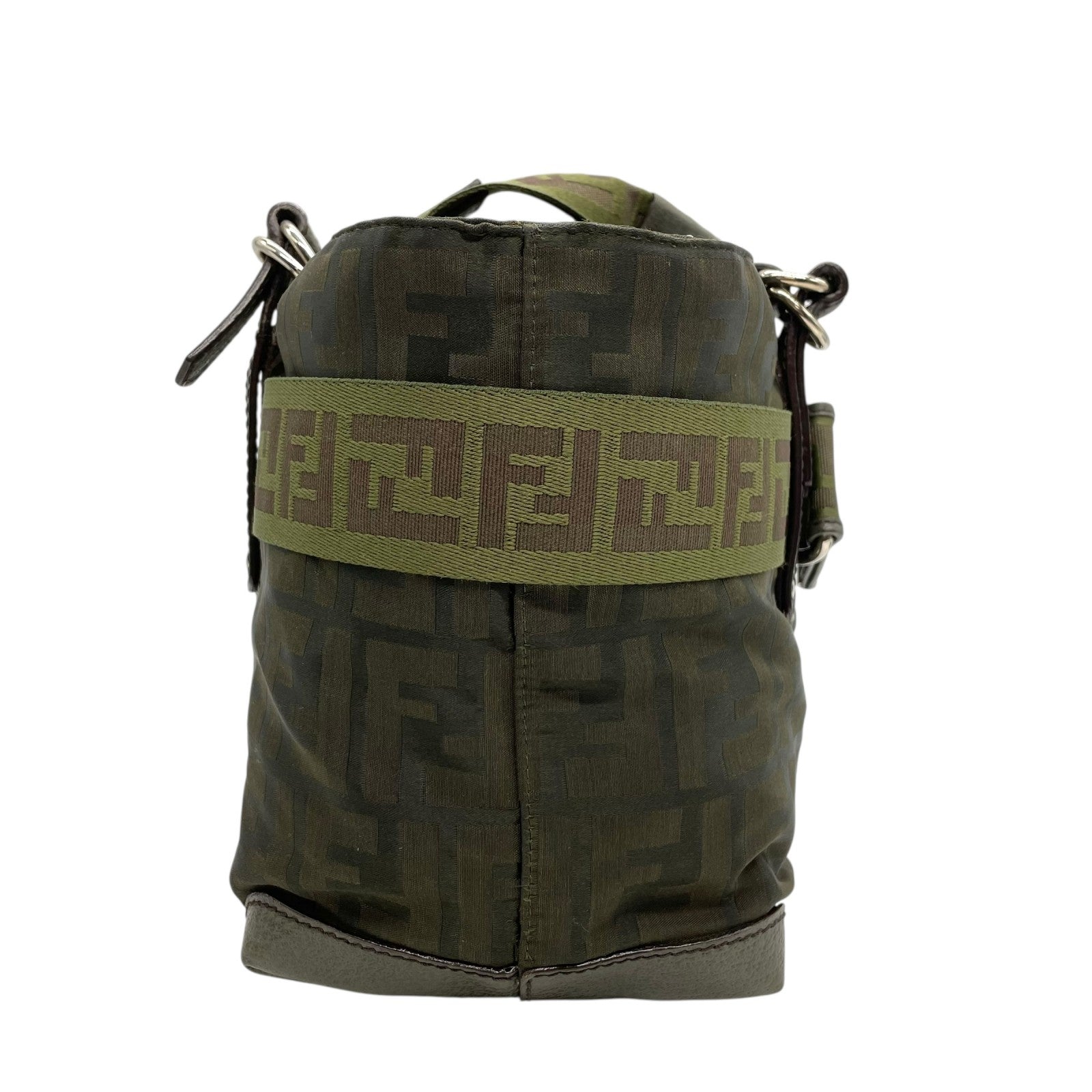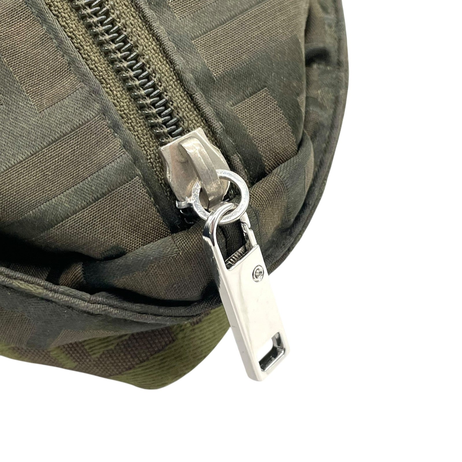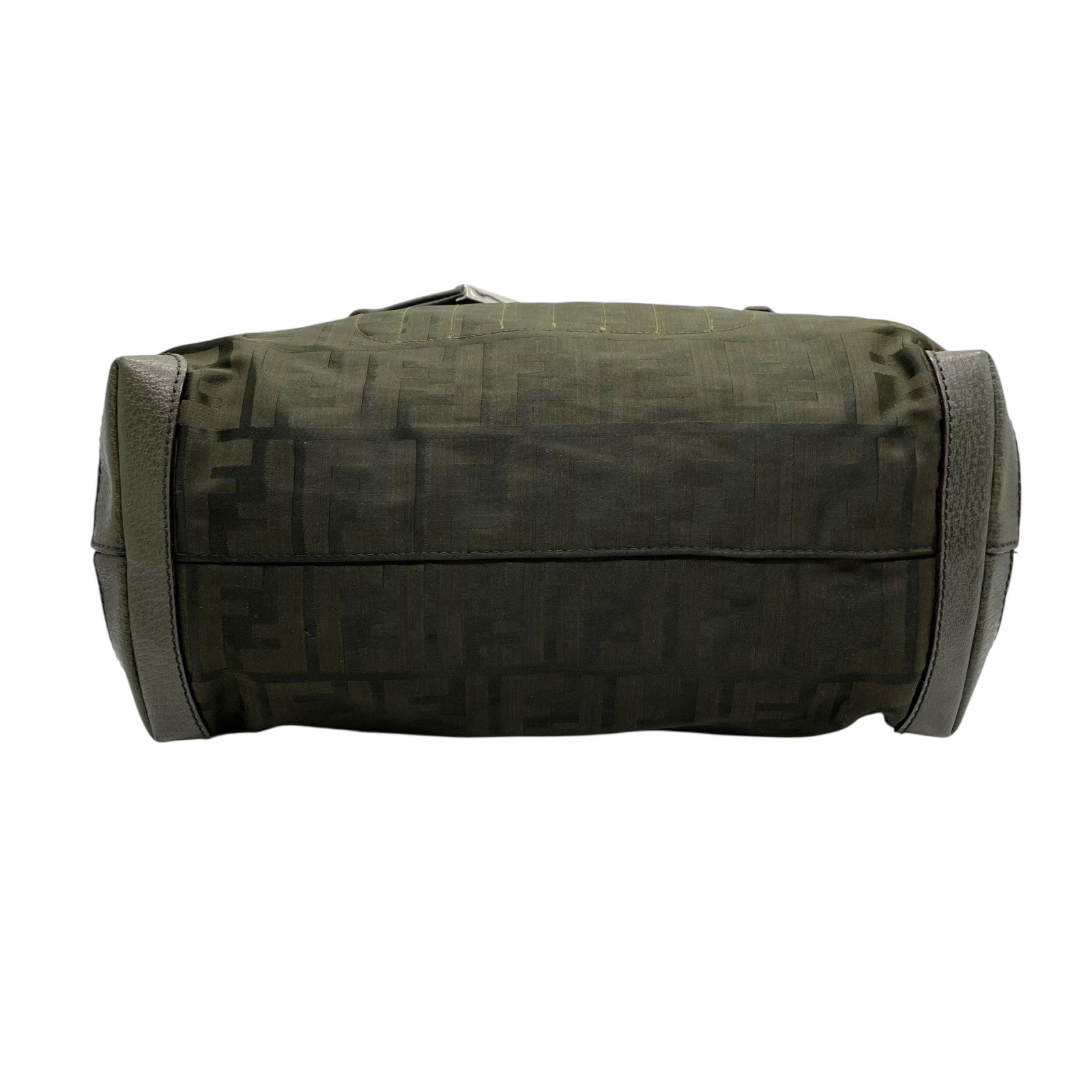 美品 FENDI フェンディ ズッカ柄 ナイロントート バッグ カーキ グリーン FF柄 ベルトデザイン シルバー金具 8BH143 ハンドバッグ レディース B1