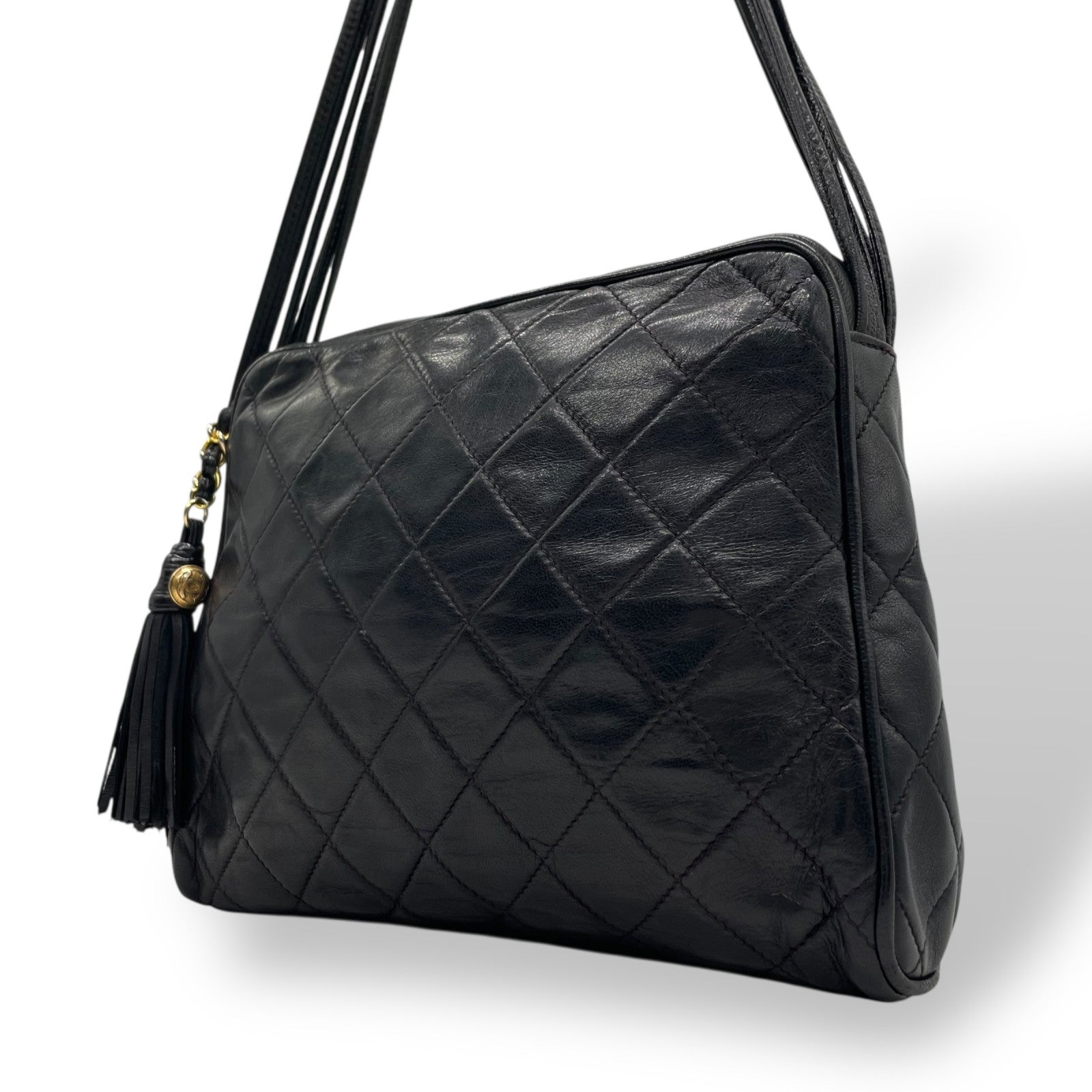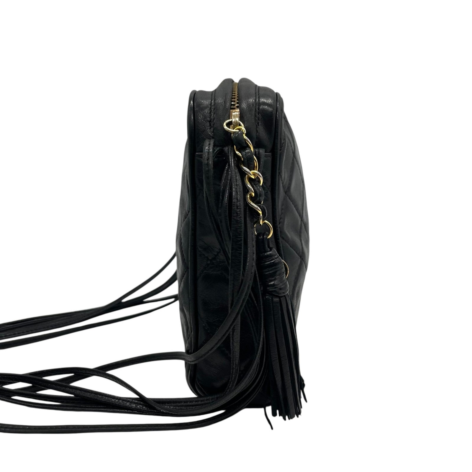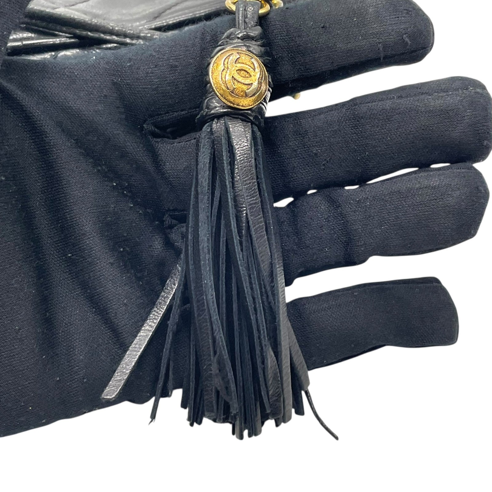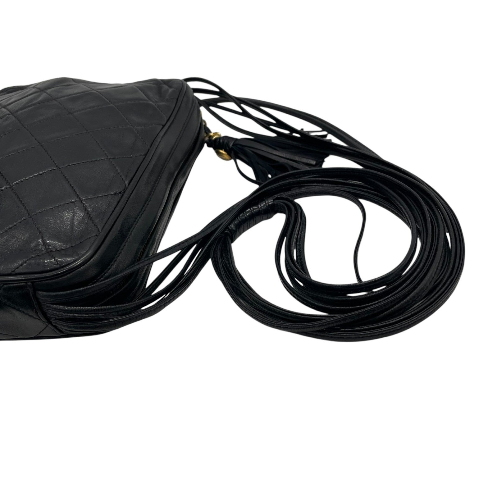 Authentic CHANEL Matelasse Fringe Shoulder Bag Black Leather Vintage Gold Crossbody