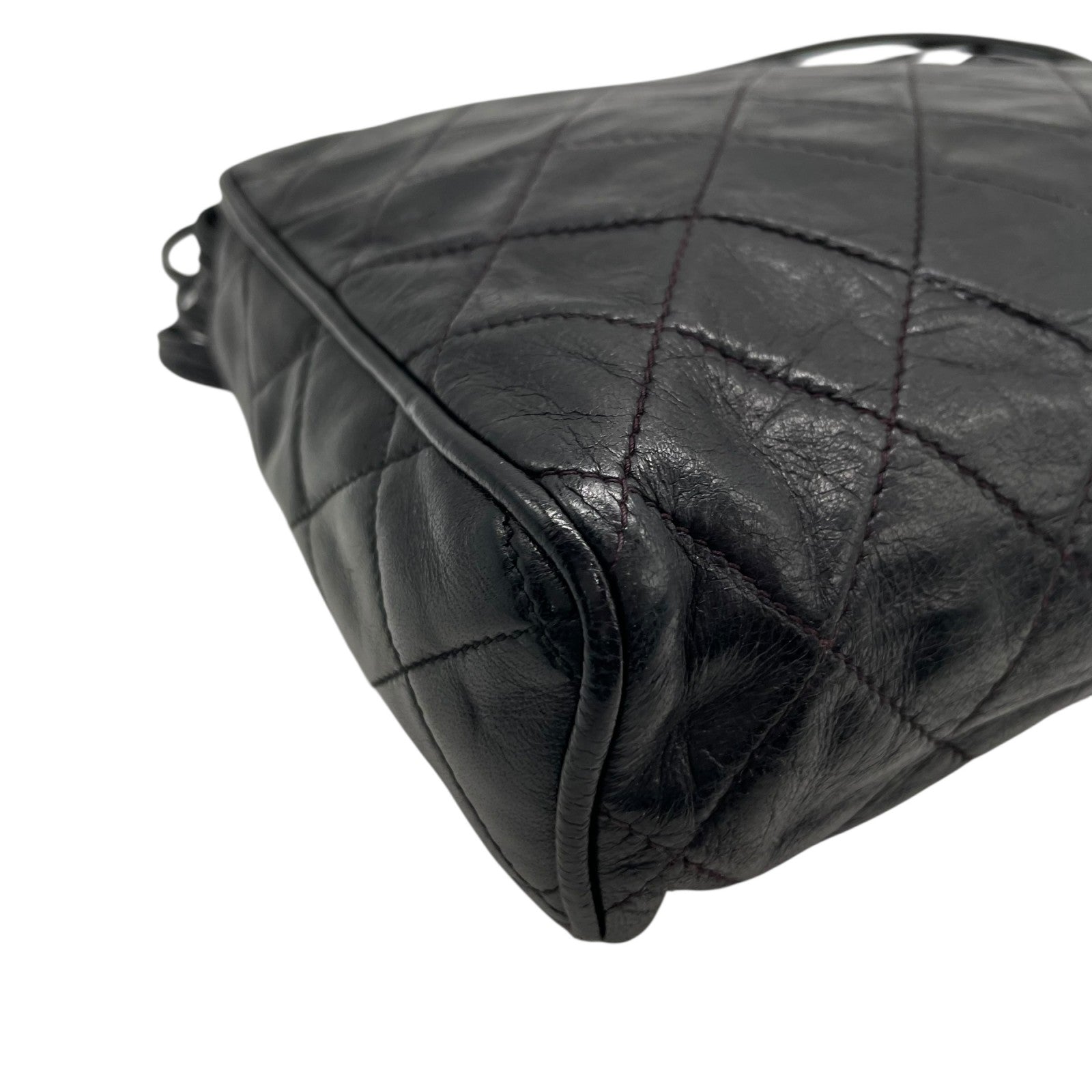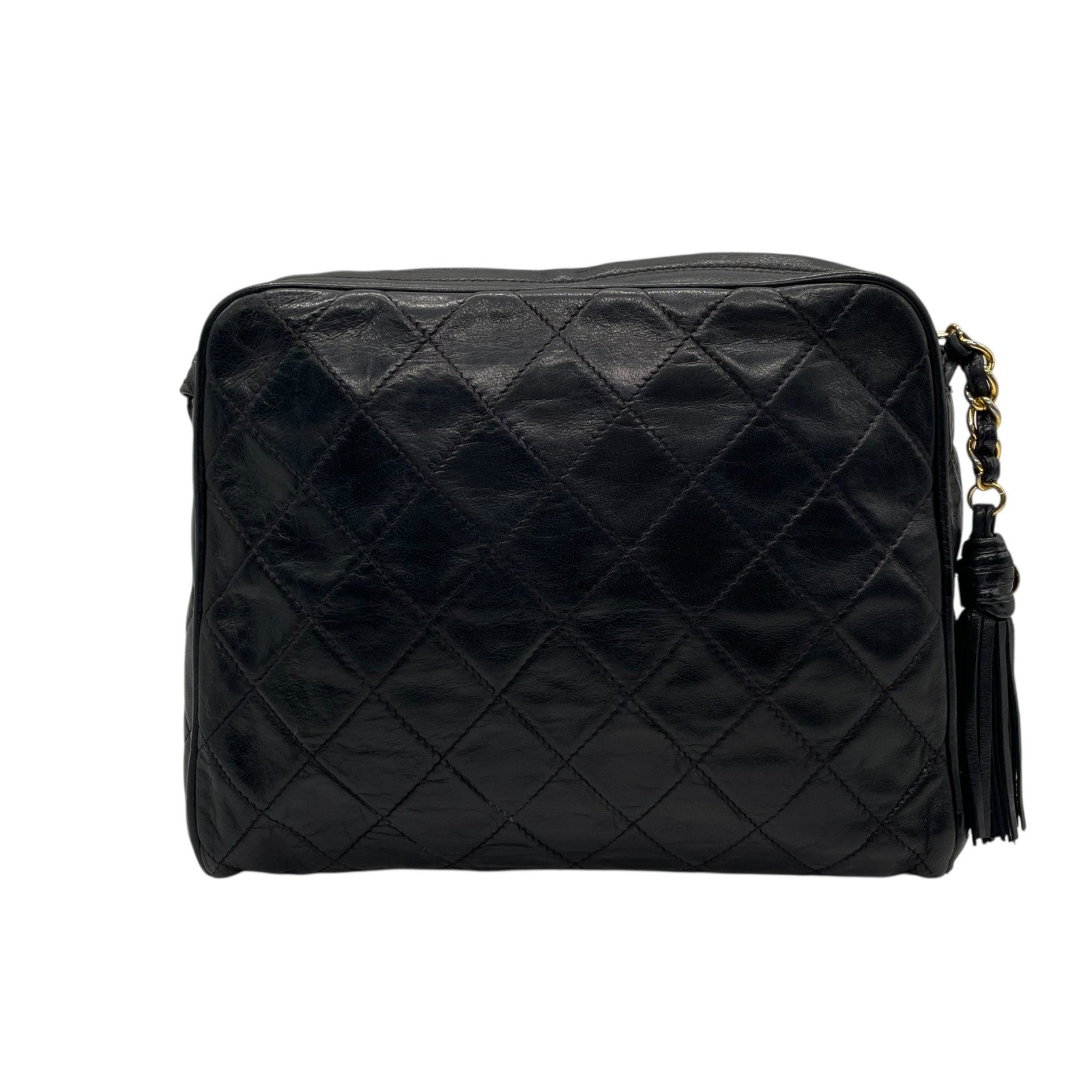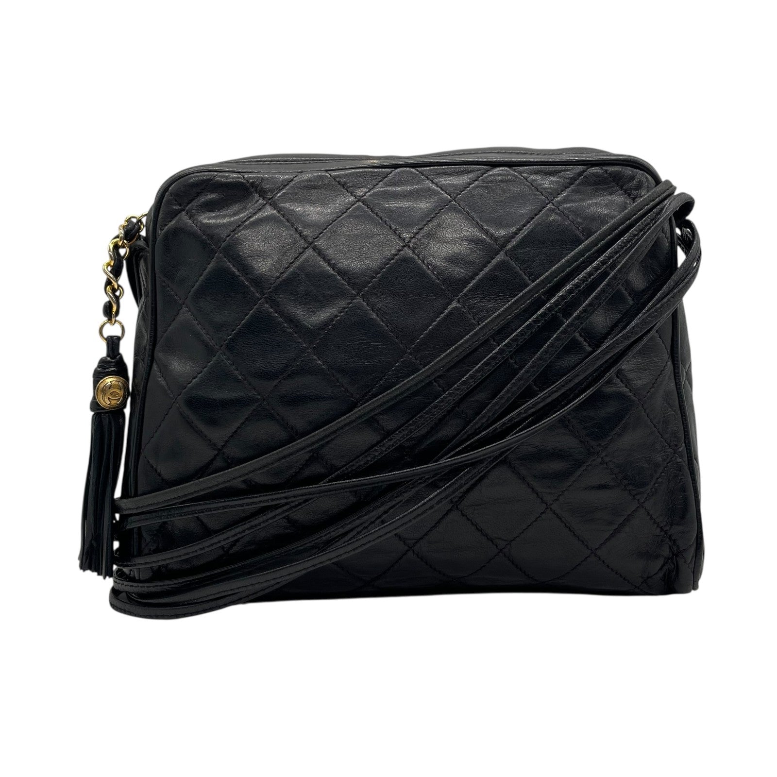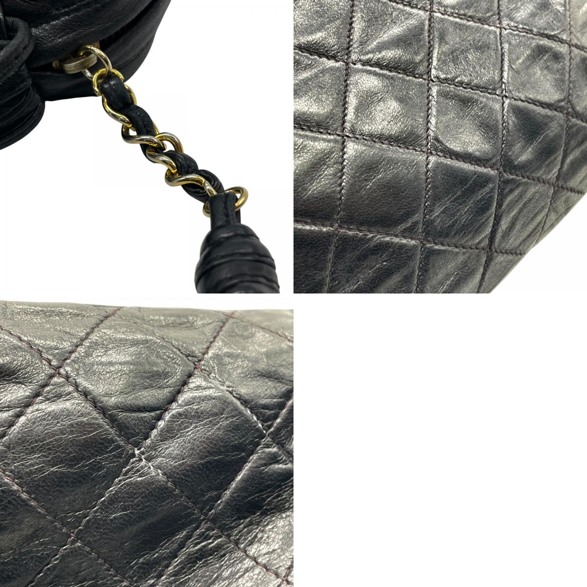Authentic CHANEL Matelasse Fringe Shoulder Bag Black Leather Vintage Gold Crossbody