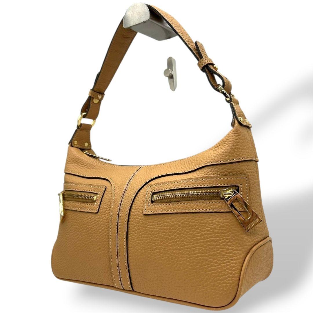 アクセソワ ハンドバッグ 茶 ワンショルダー レザー 本革 トートバッグ 自立可 肩掛け可 肩かけ可 ブラウン ゴールド金具 ADMJ s43 上品 高級感