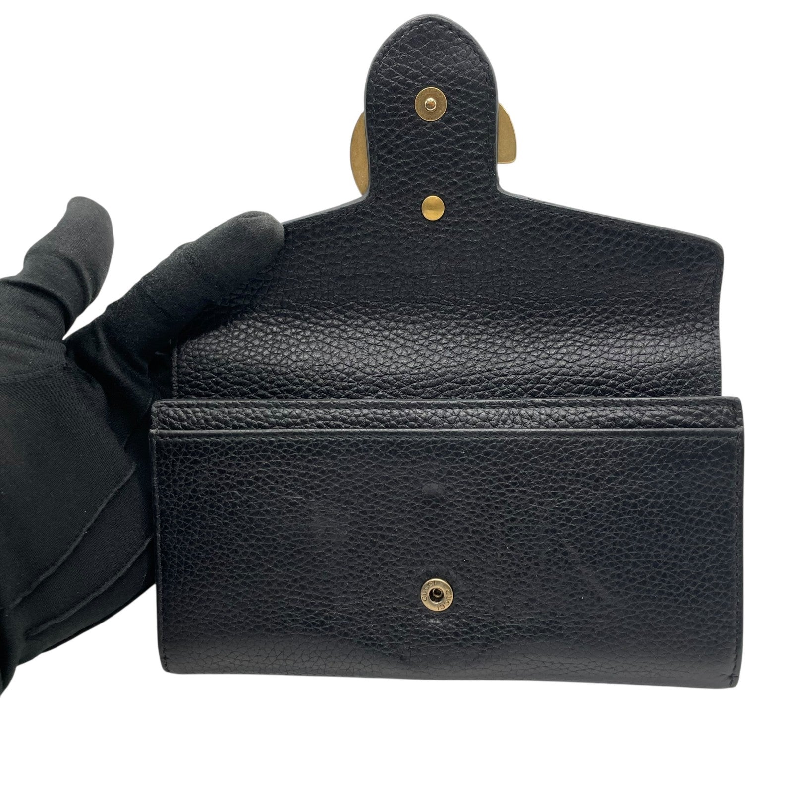 GUCCI グッチ GGマーモント 長財布 レザー 黒 ブラック ゴールド金具 箱付き レディース W2