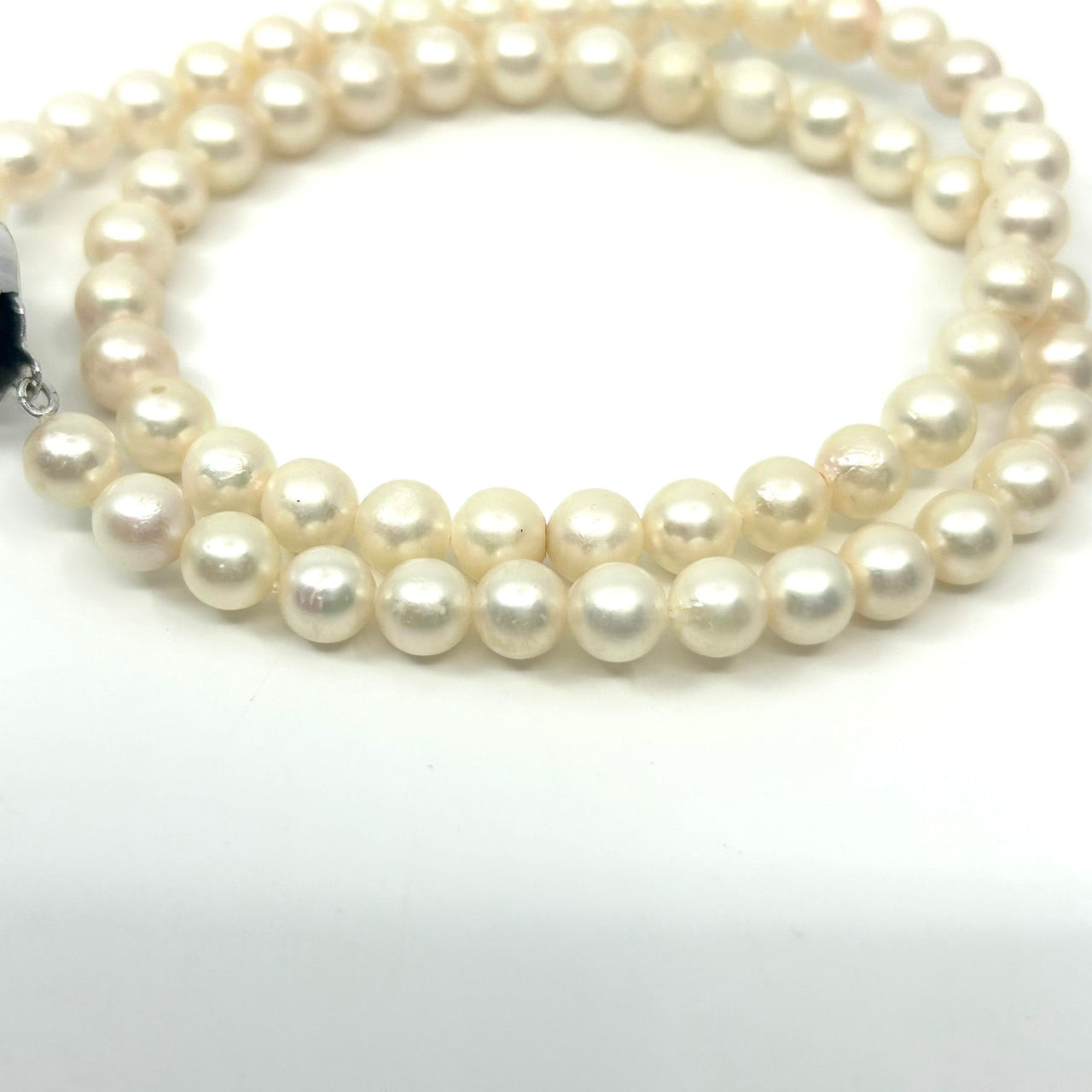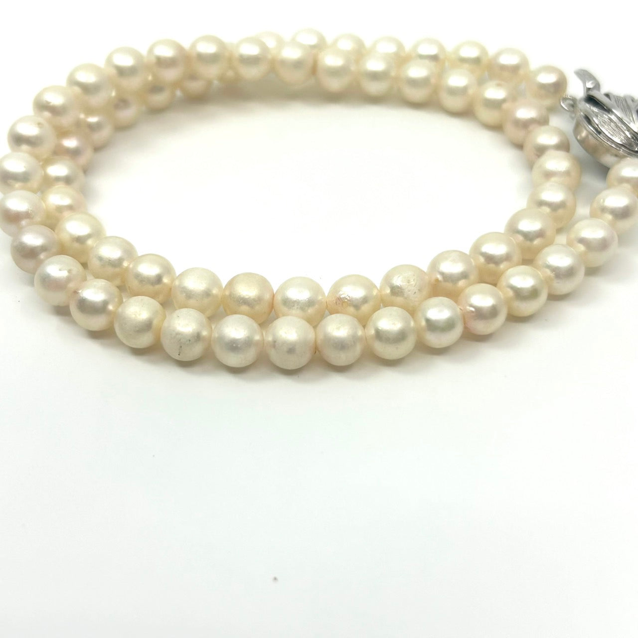 ホワイトパール ネックレス 二連 淡水真珠 本真珠 シルバークラスプ クラシカル エレガント 冠婚葬祭 フォーマルアクセサリー I10