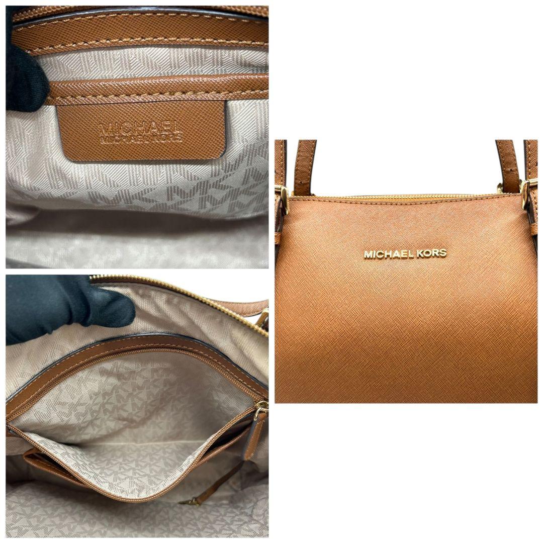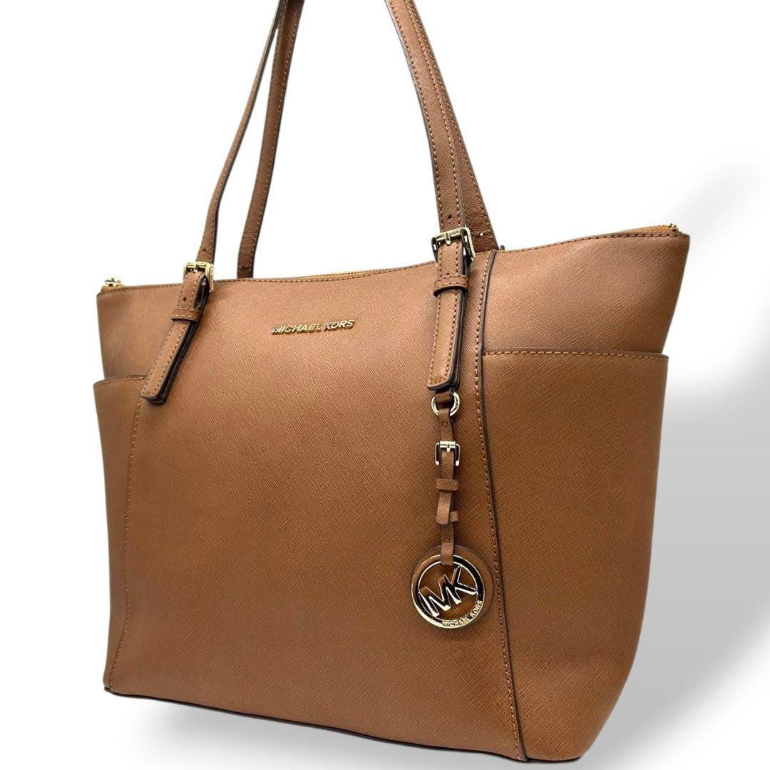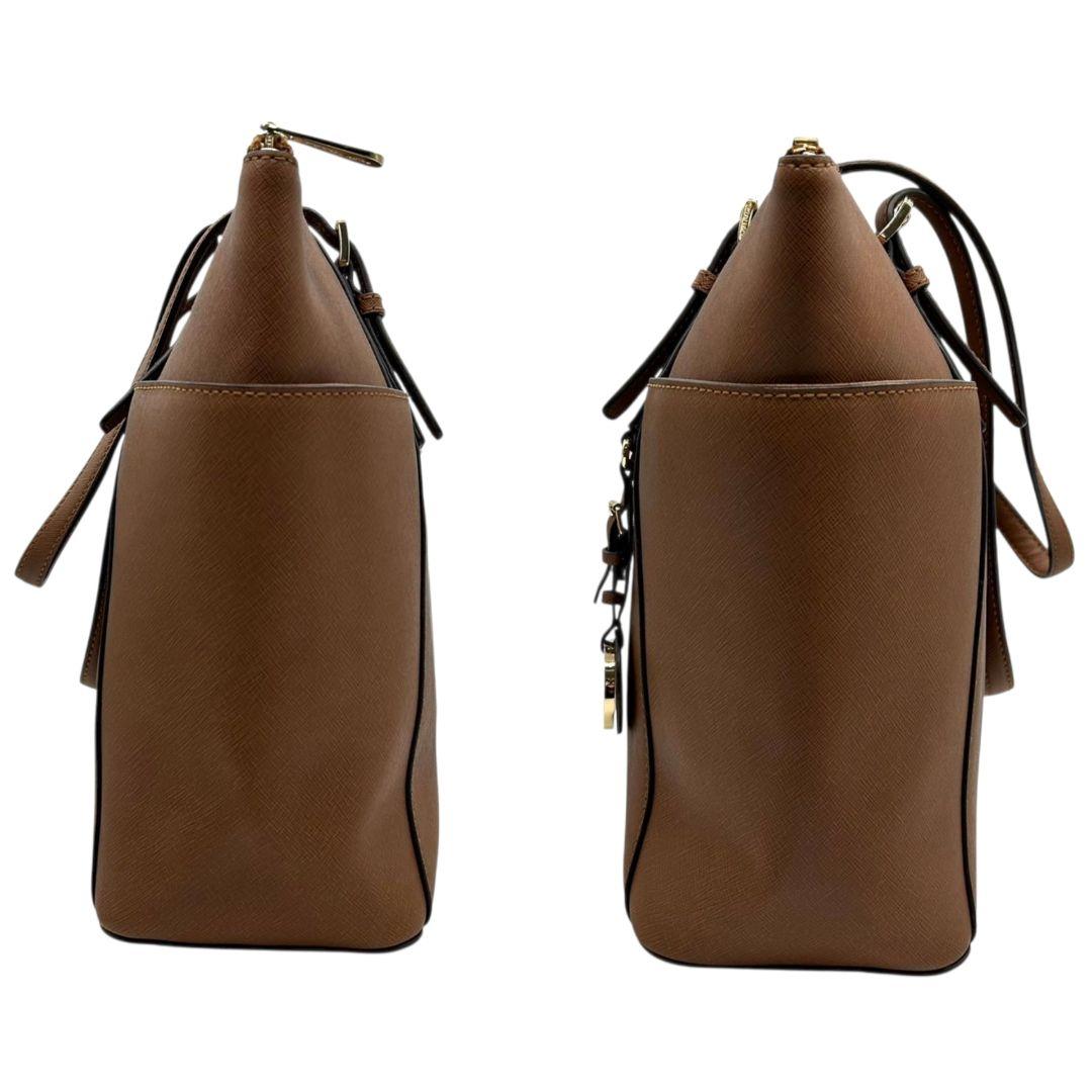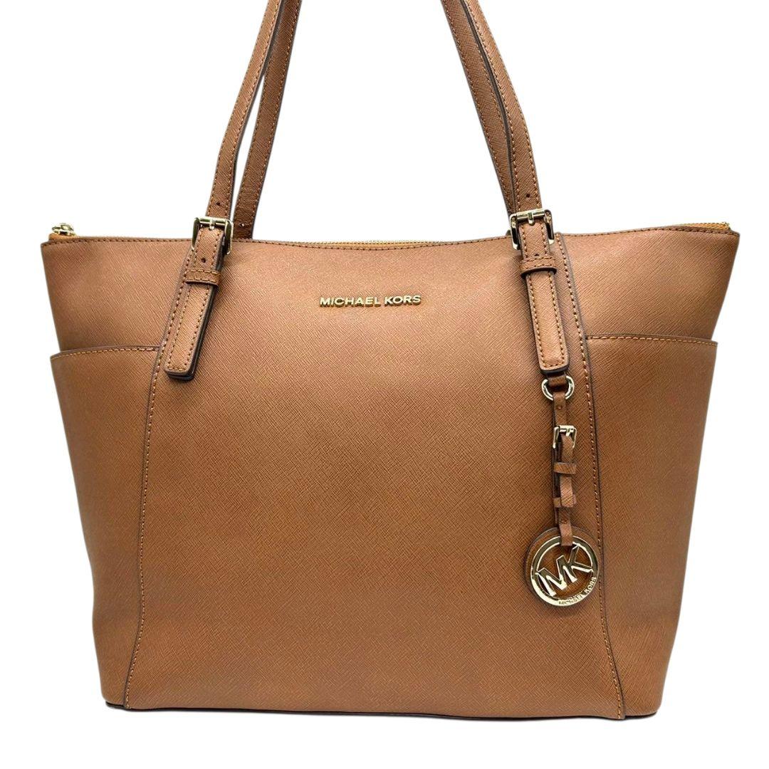 マイケルコース トートバッグ 茶 サフィアーノ ロゴ ワンショルダー PVC S ハンドバッグ A4収納 自立可 肩掛け可 肩かけ可 レザー ゴールド金具 ロゴプレート チャーム付き ブラウン MICHAEL KORS