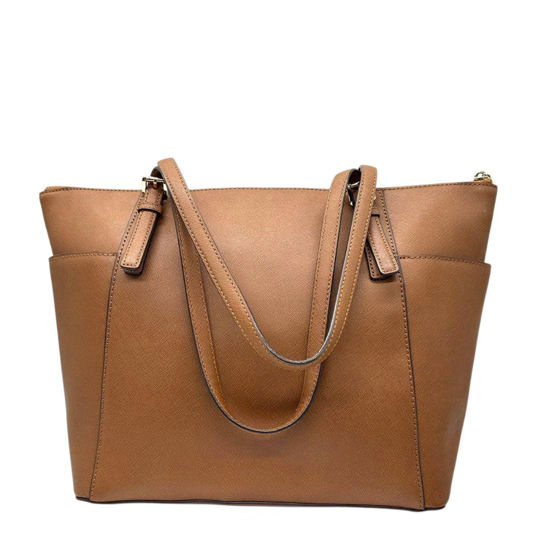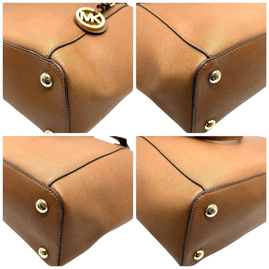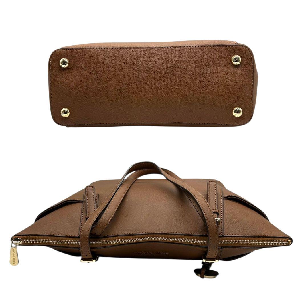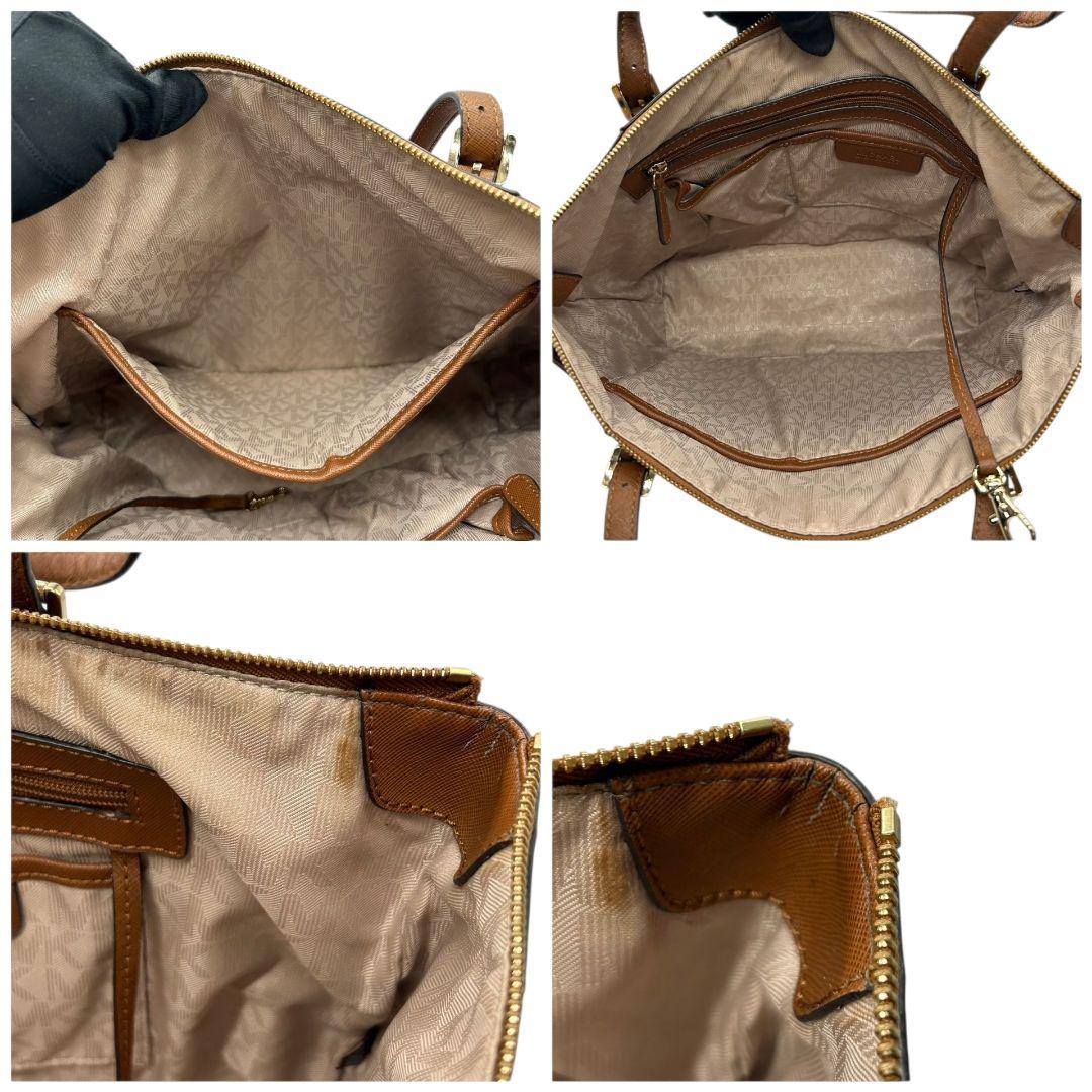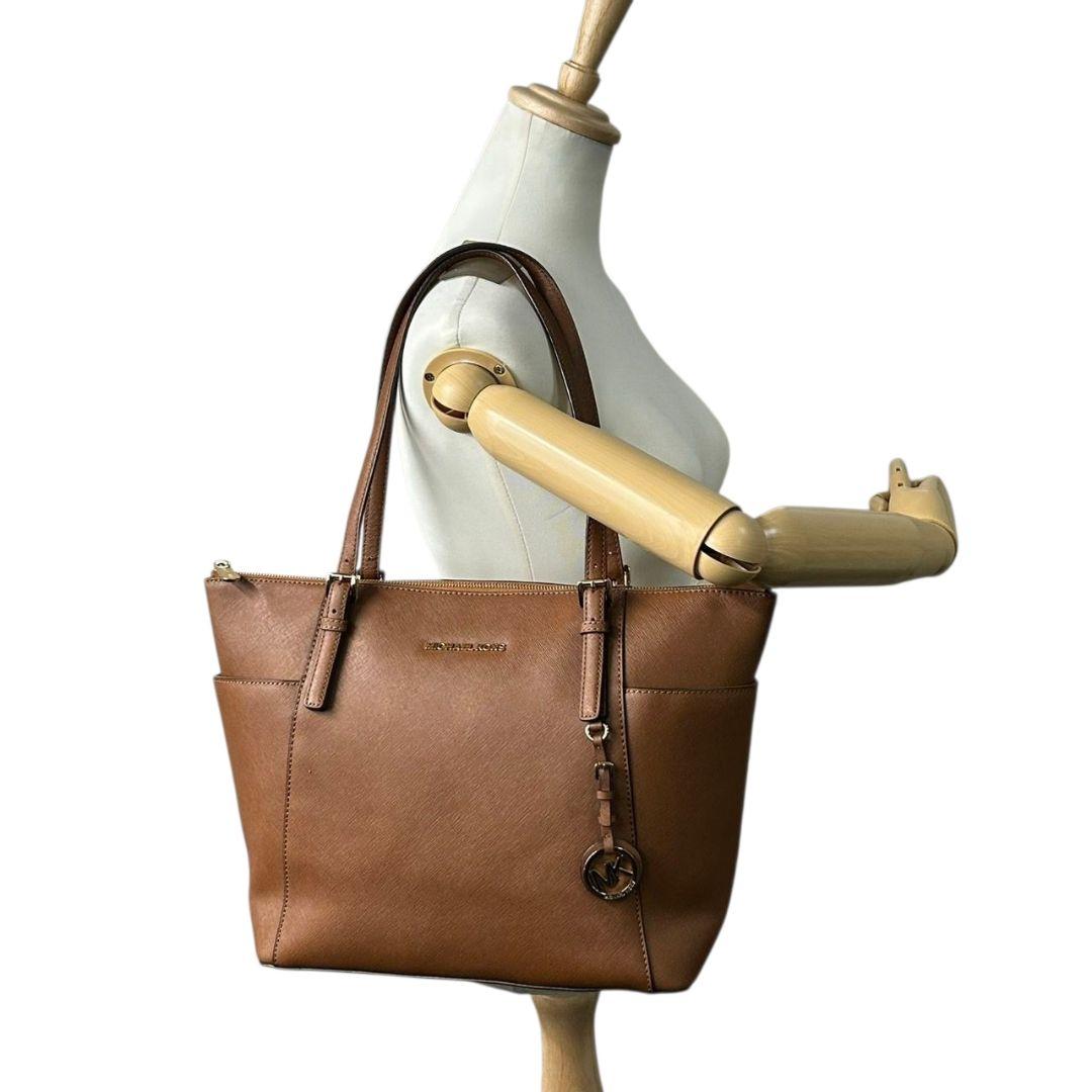 マイケルコース トートバッグ 茶 サフィアーノ ロゴ ワンショルダー PVC S ハンドバッグ A4収納 自立可 肩掛け可 肩かけ可 レザー ゴールド金具 ロゴプレート チャーム付き ブラウン MICHAEL KORS