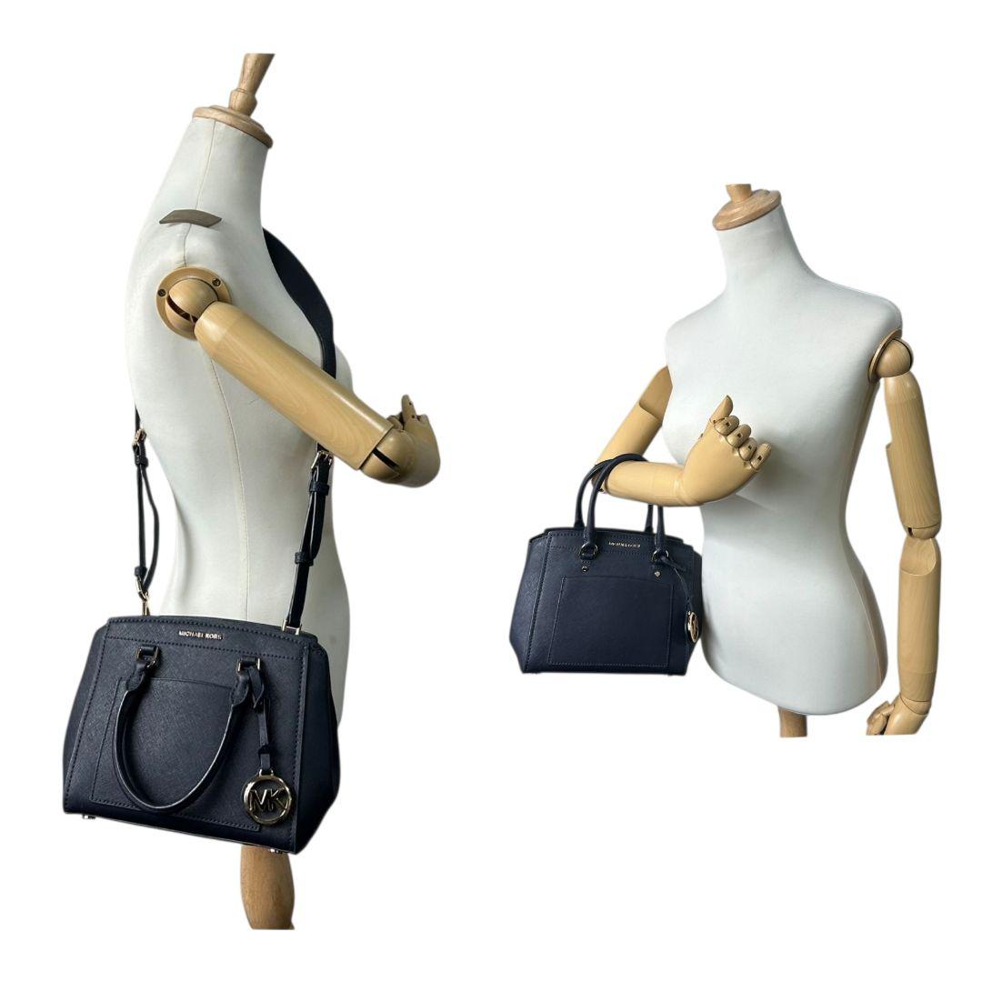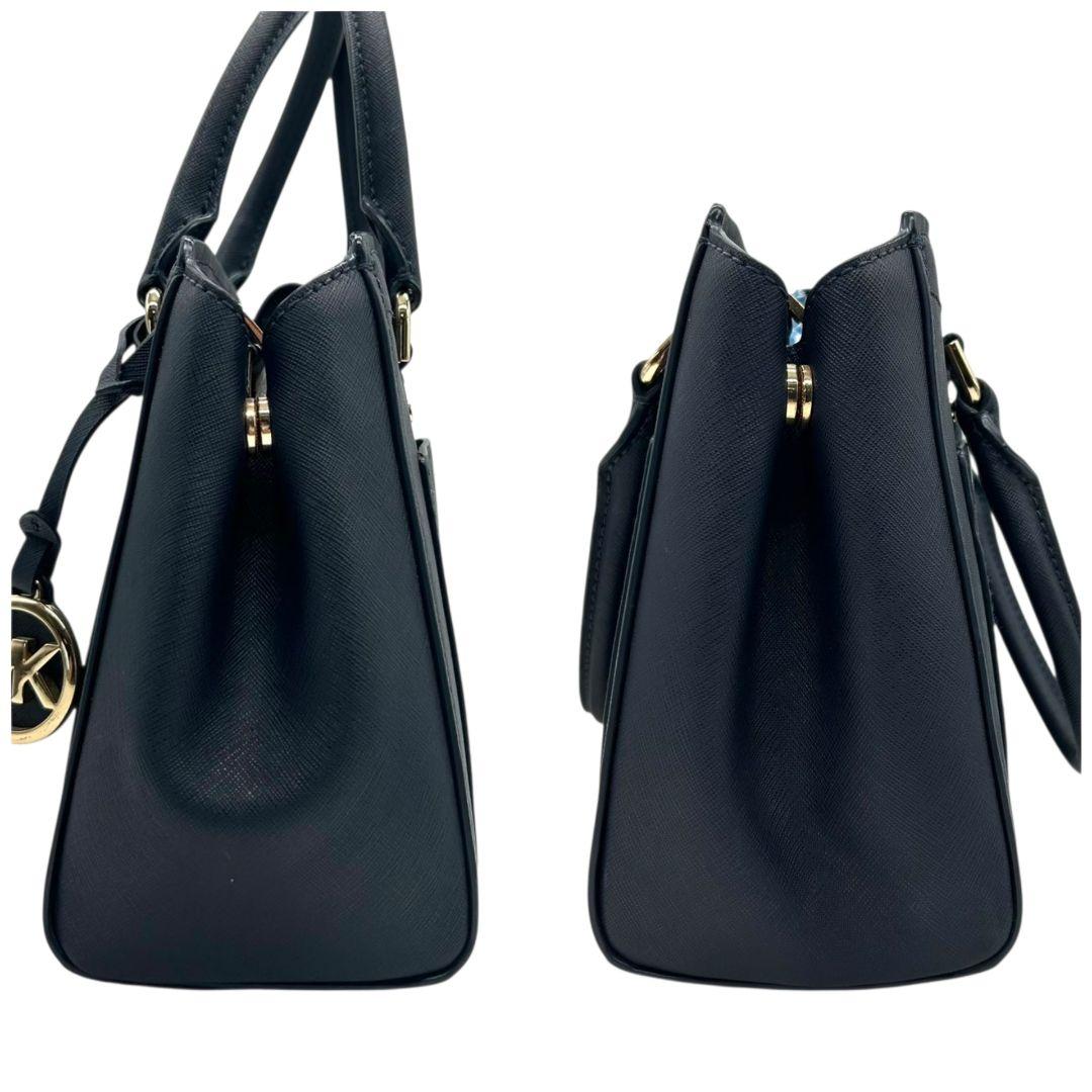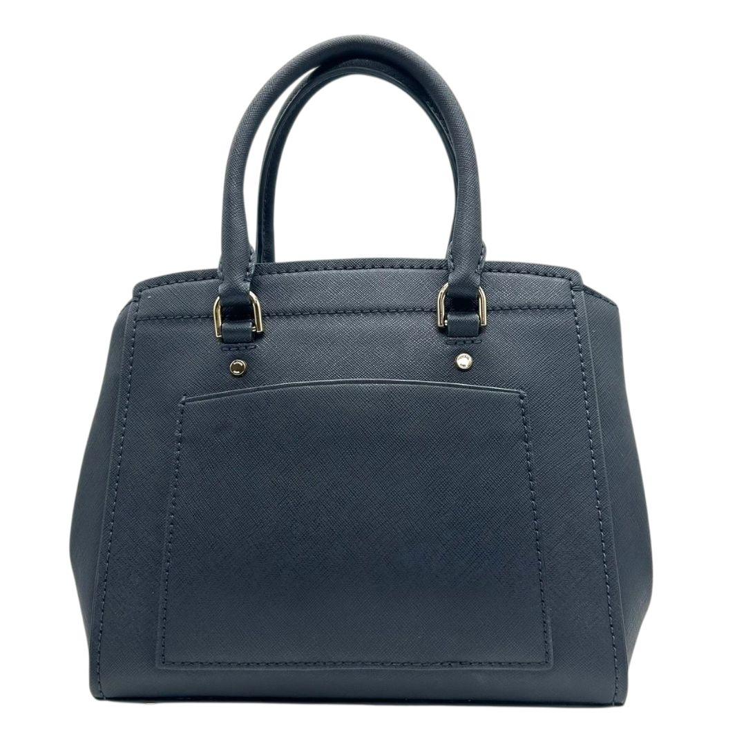 美品 マイケルコース ハンドバッグ 紺 ロゴ 2way 斜め掛け可 s77 トートバッグ ショルダーバッグ 自立可 サフィアーノ PVC レザー ゴールド金具 ロゴプレート チャーム付き ネイビー MICHAEL KORS
