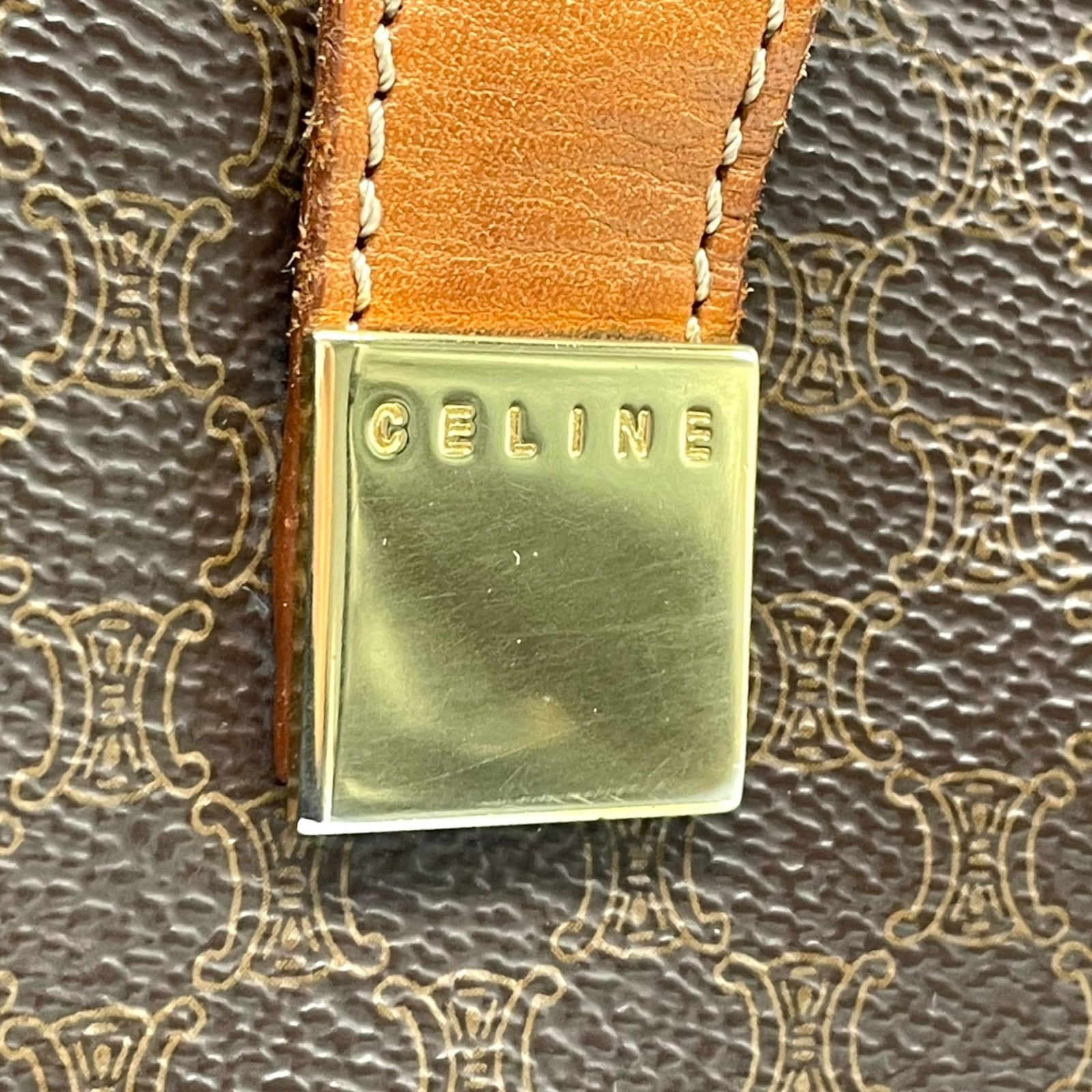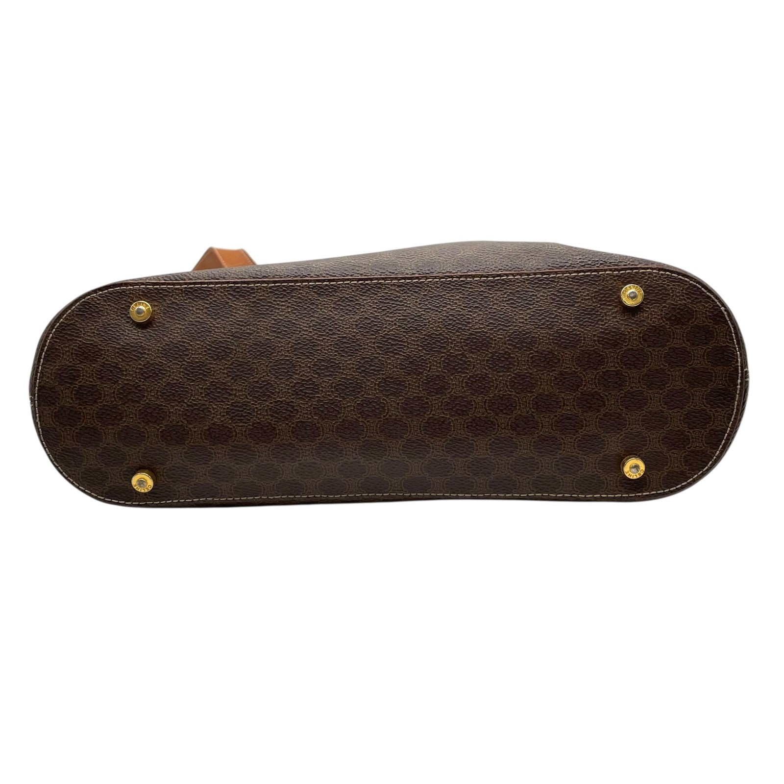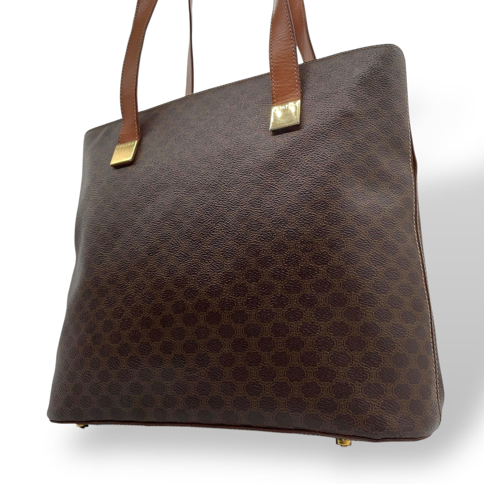 CELINE セリーヌ マカダム トートバッグ 茶 ブラウン PVC レザー ゴールド金具 ワンショルダー 肩掛け可 A4収納 レディース ヴィンテージ D1