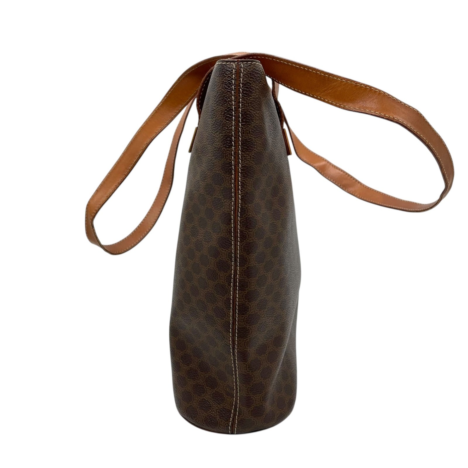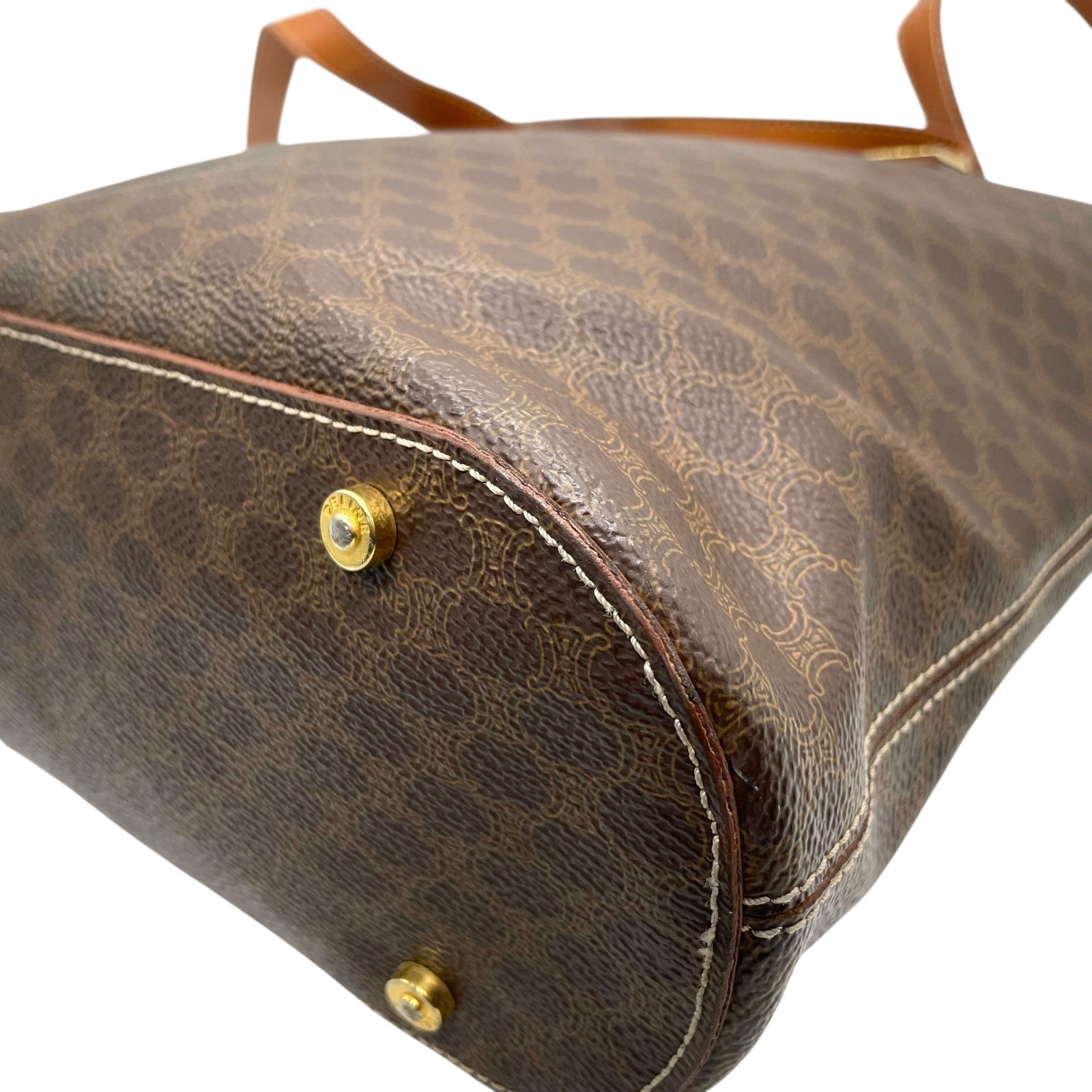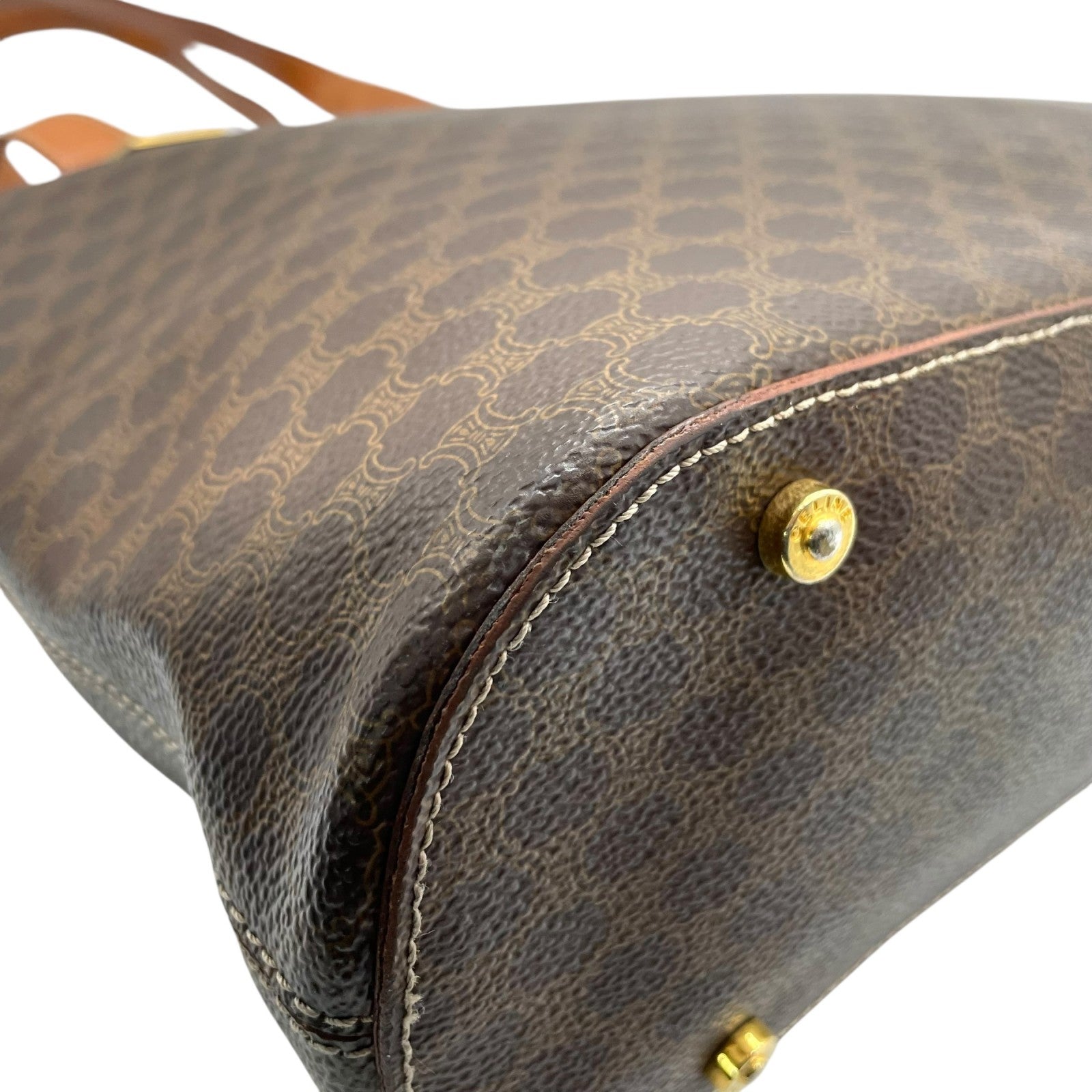 CELINE セリーヌ マカダム トートバッグ 茶 ブラウン PVC レザー ゴールド金具 ワンショルダー 肩掛け可 A4収納 レディース ヴィンテージ D1