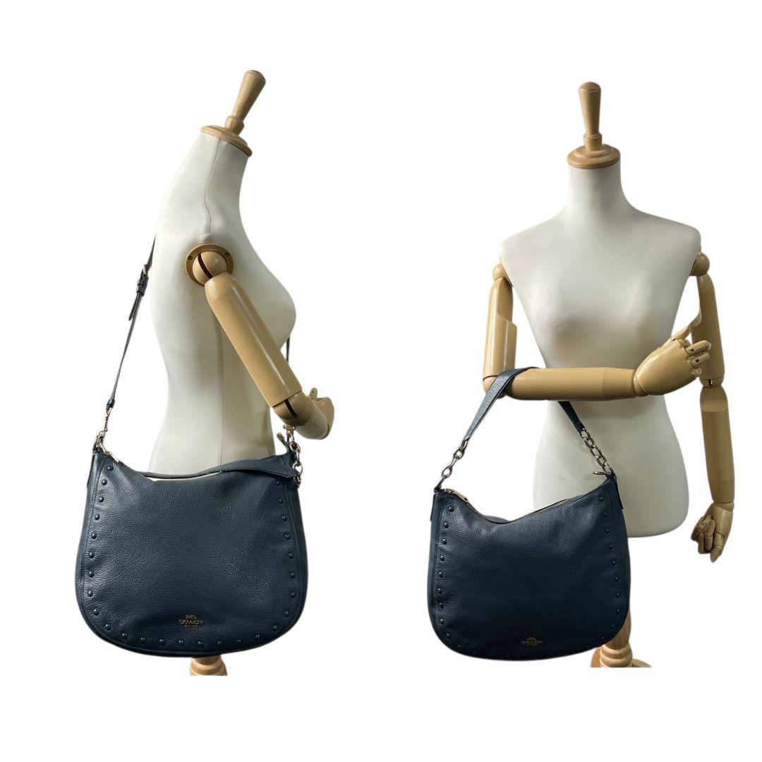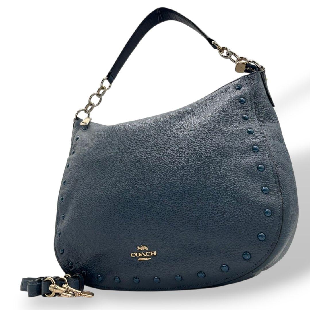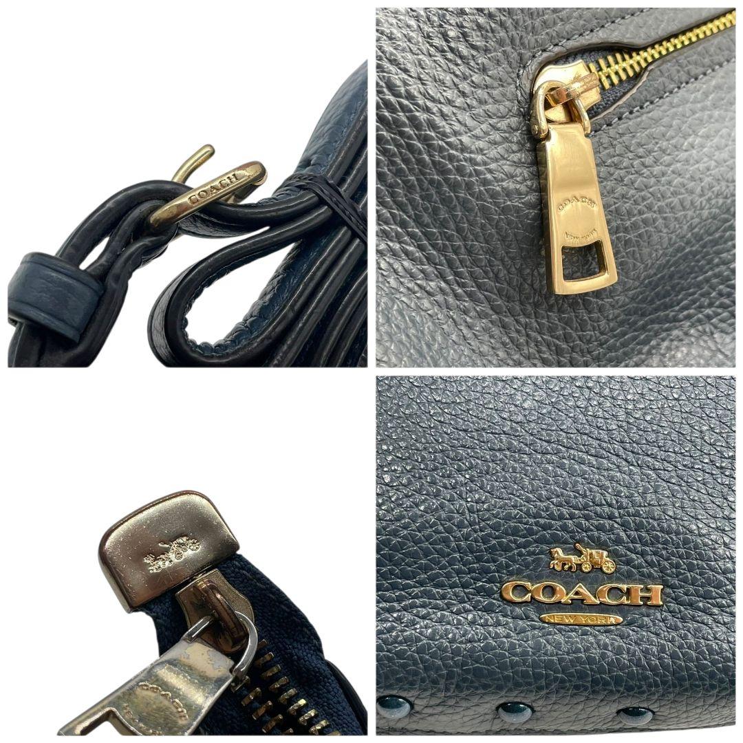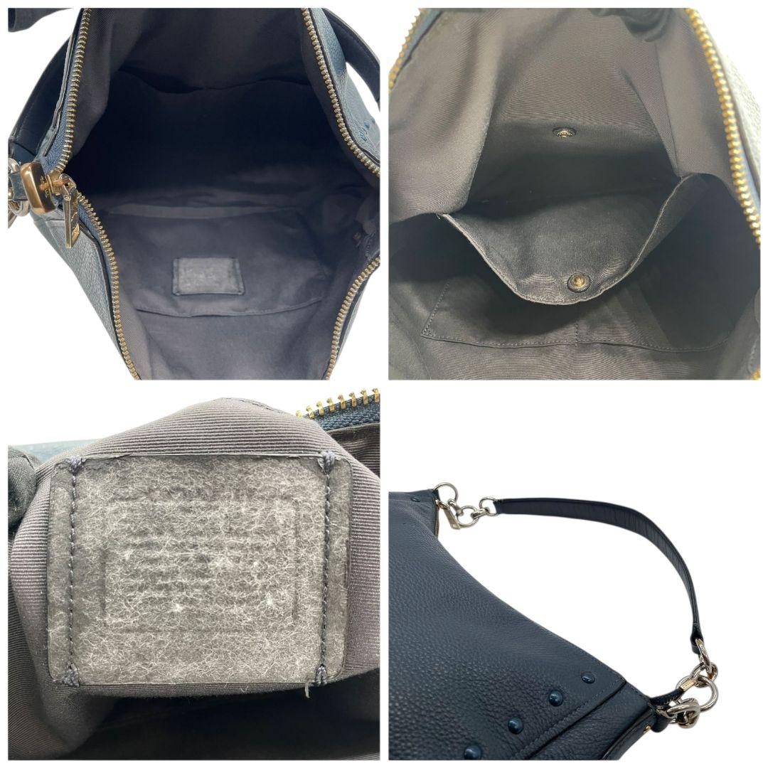 コーチ ハンドバッグ 紺 ネイビー ブルー スタッズ 2way ワンショルダー A4収納 トートバッグ ショルダーバッグ 斜め掛け可 肩掛け可 本革 レザー u14 COACH