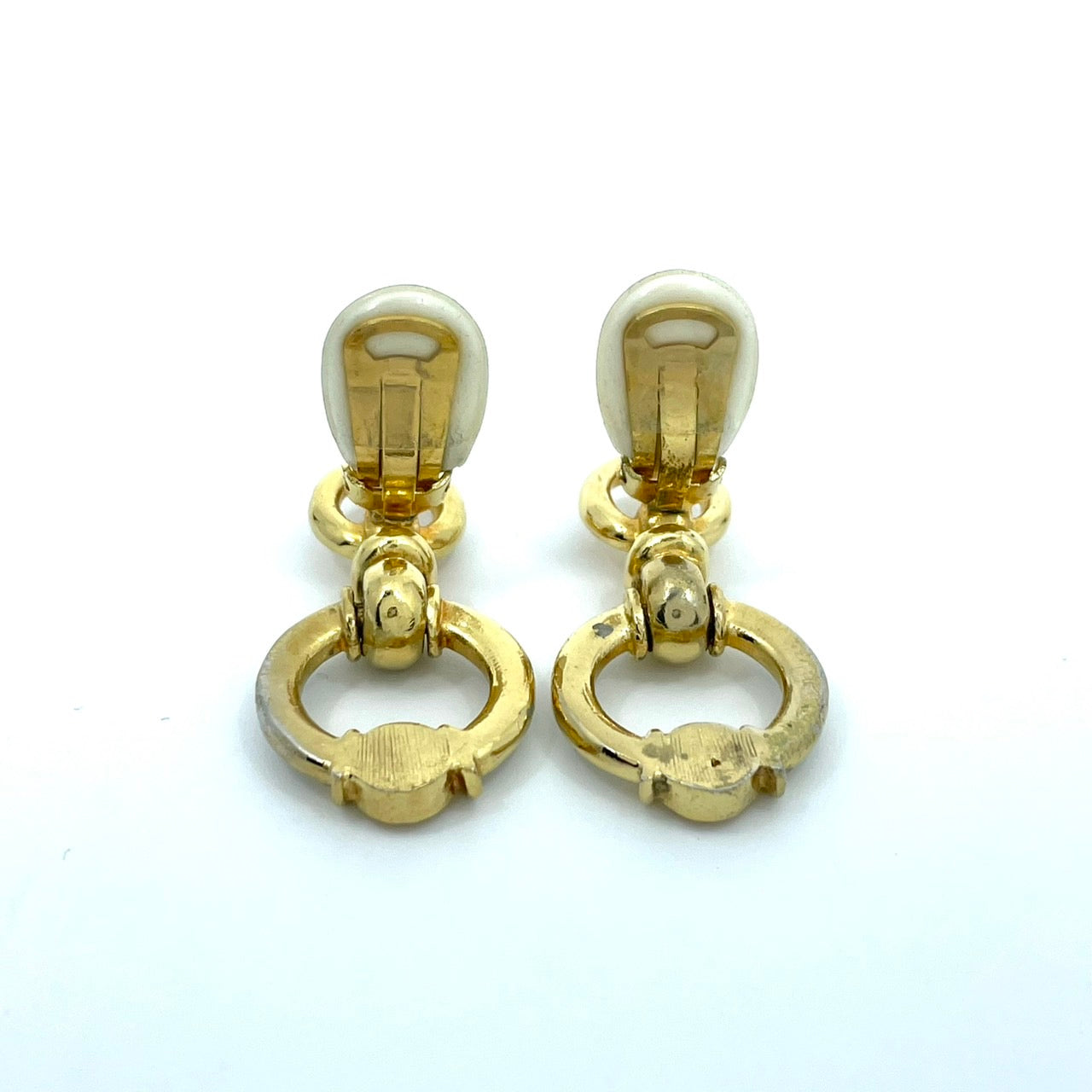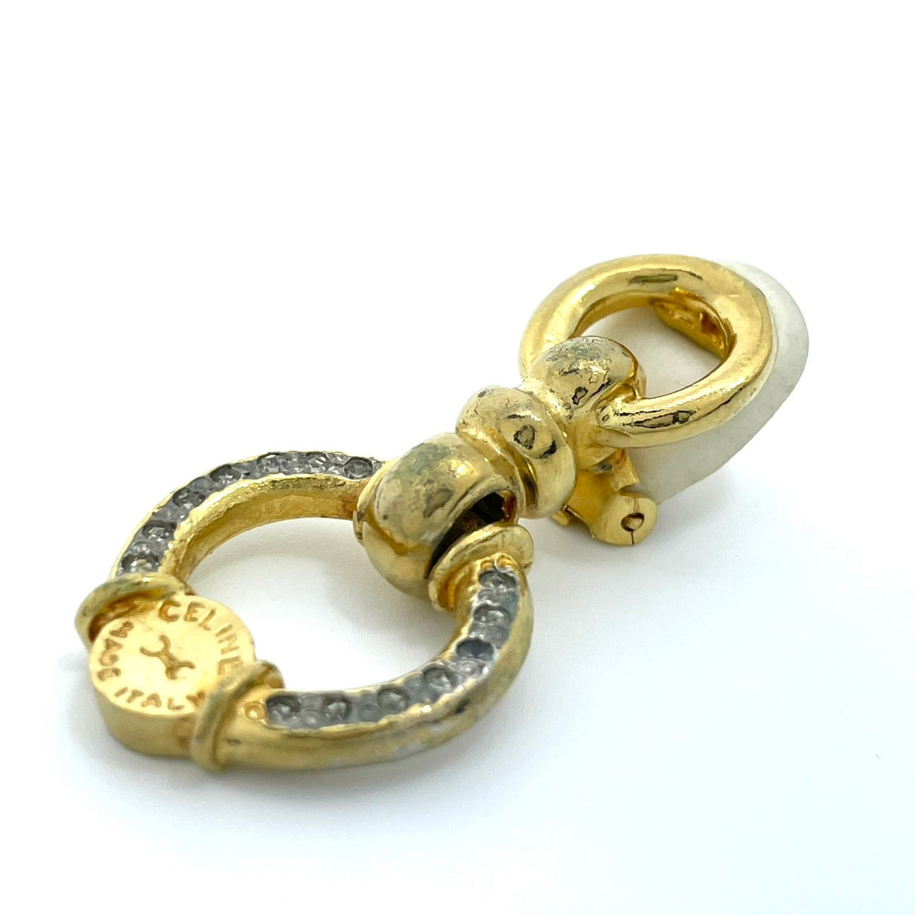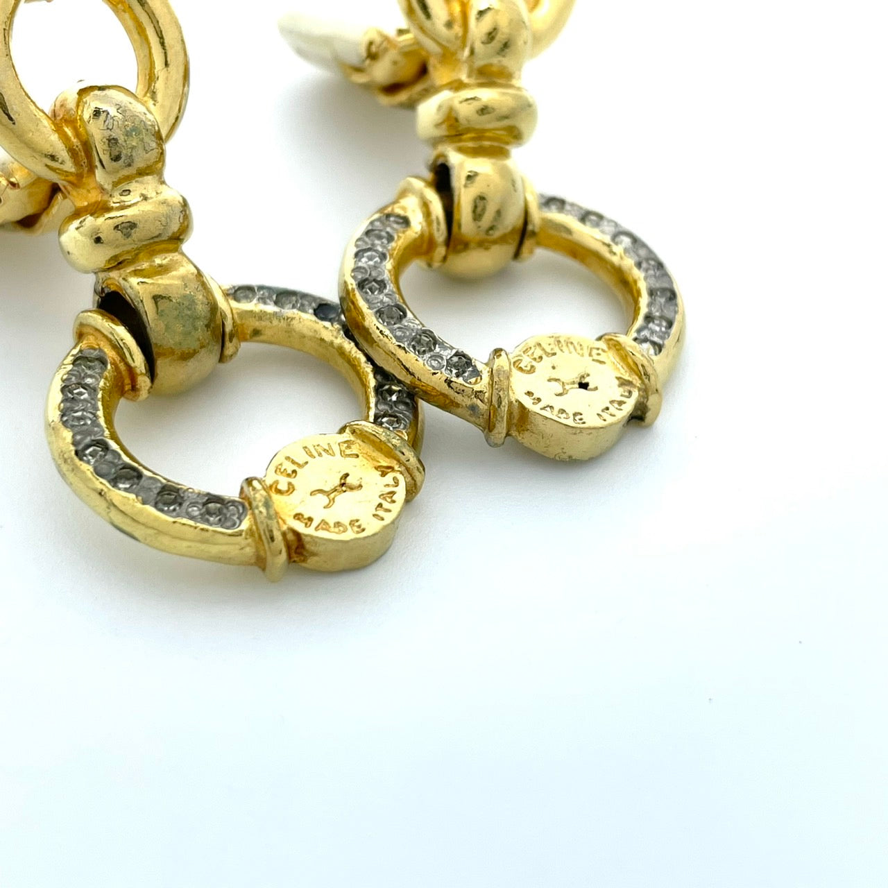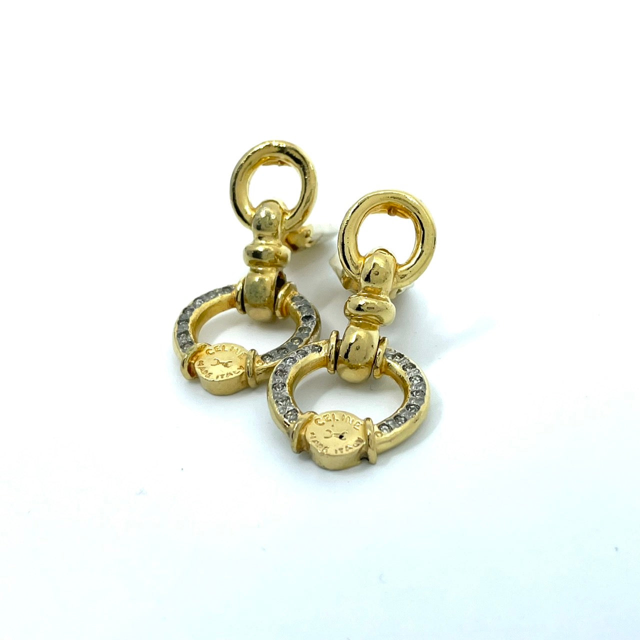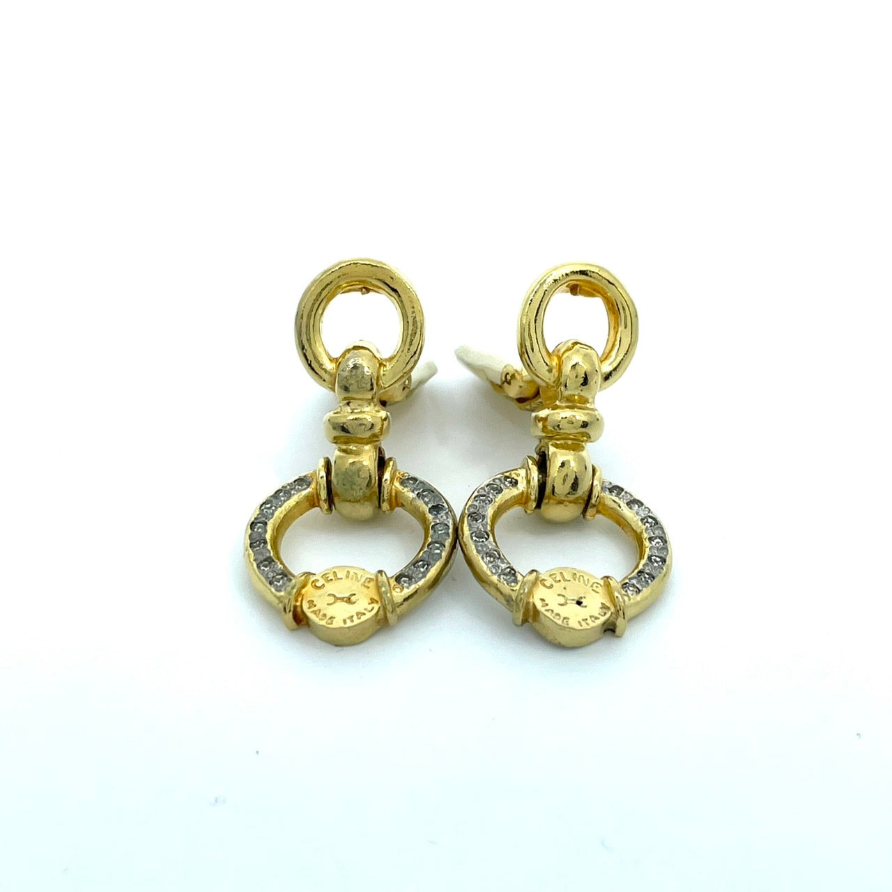 CELINE セリーヌ サークルモチーフ ラインストーン ロゴ ゴールドカラー イヤリング ヴィンテージ ジュエリー アクセサリー オールドセリーヌ レディース I7