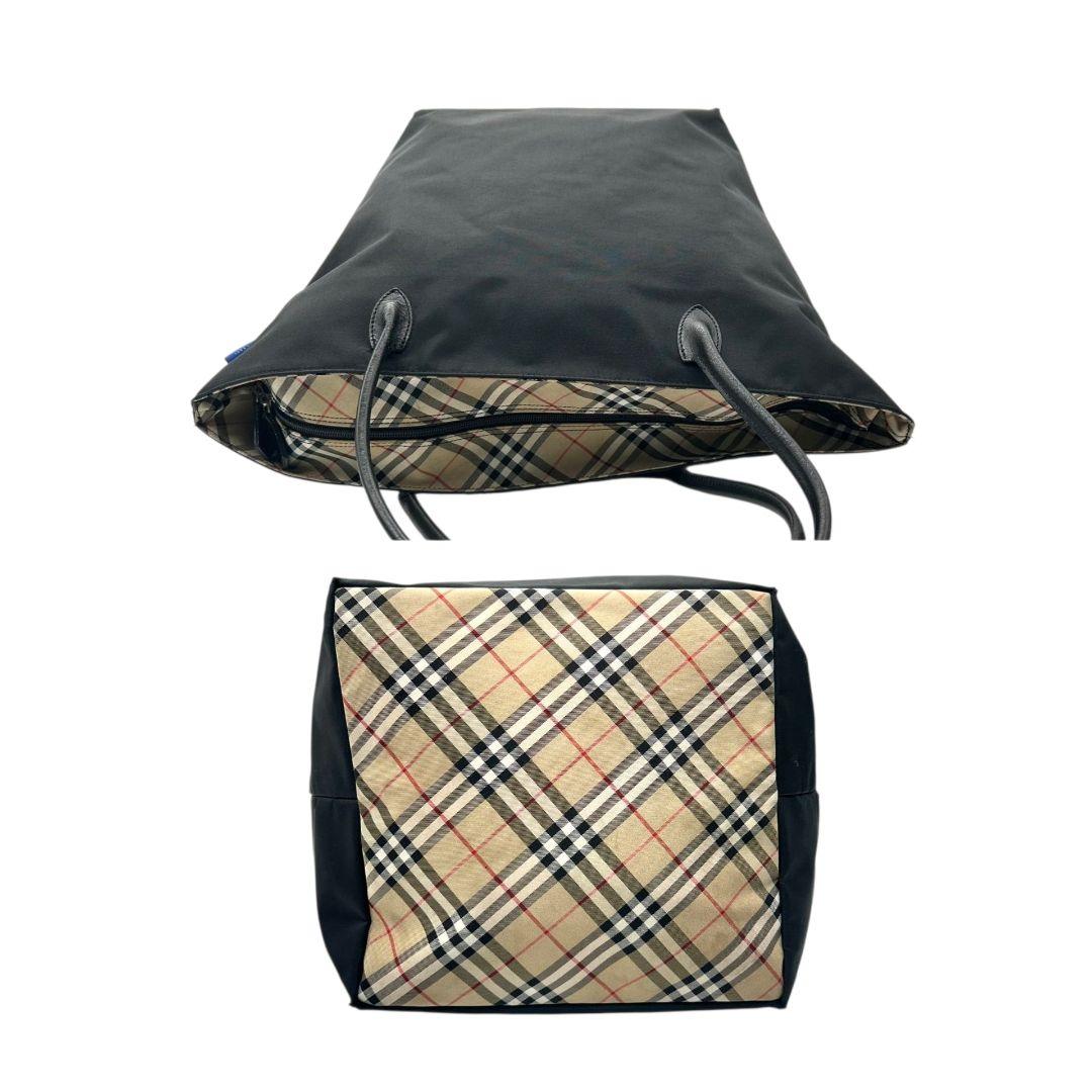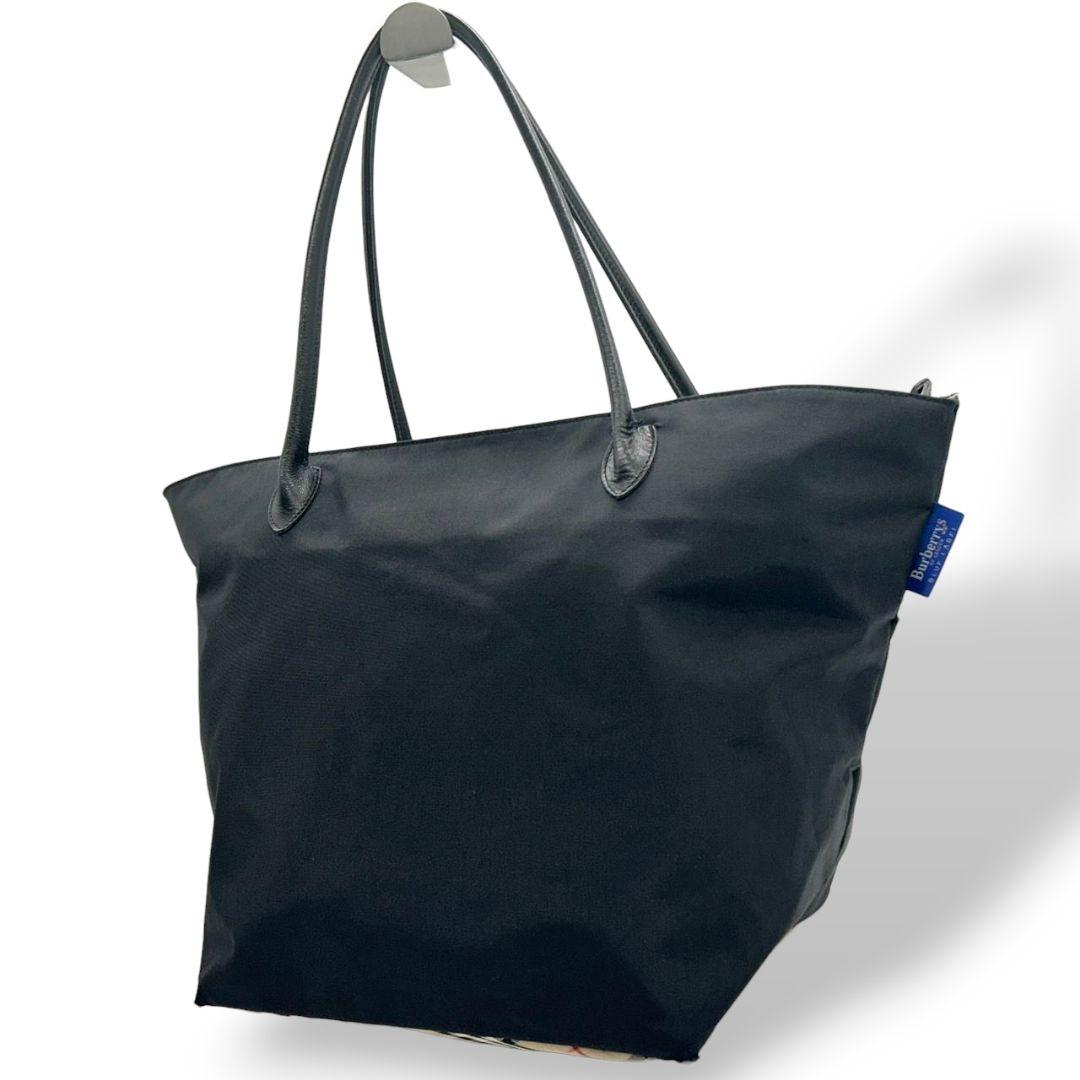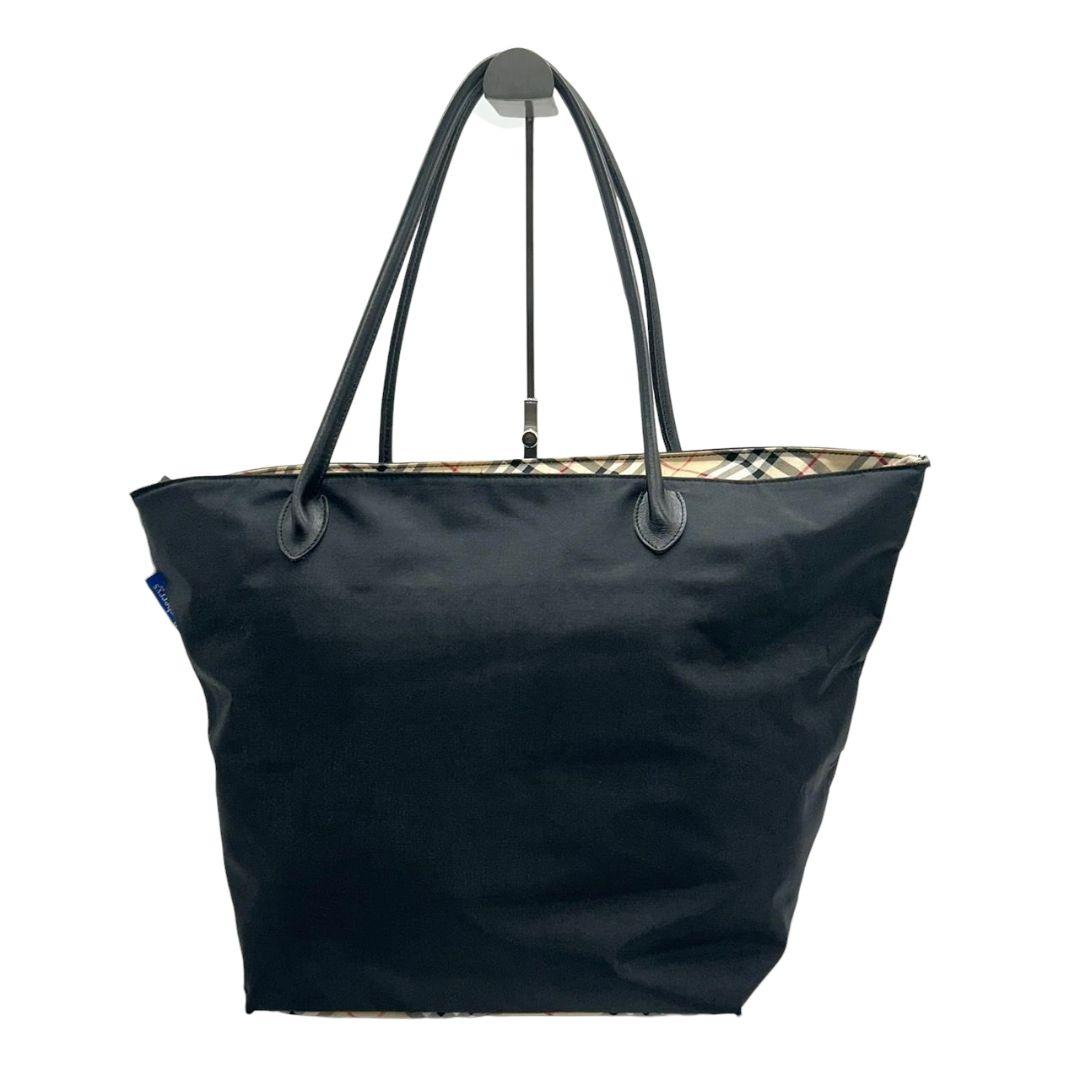 バーバリー トートバッグ ブラック 黒 ブルーレーベル ワンショルダー ナイロン レザー 本革 A4収納可 自立可 肩掛け可 肩かけ可 ロゴタグ ノバチェック BURBERRY T8 上品 通勤