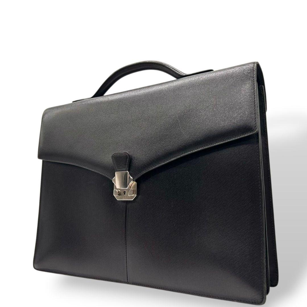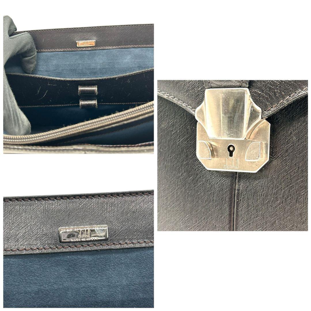 美品 ダンヒル フラップ レザー ビジネスバッグ ダークブラウン A4収納 自立可 シルバー金具 ロゴプレート トートバッグ ハンドバッグ 本革