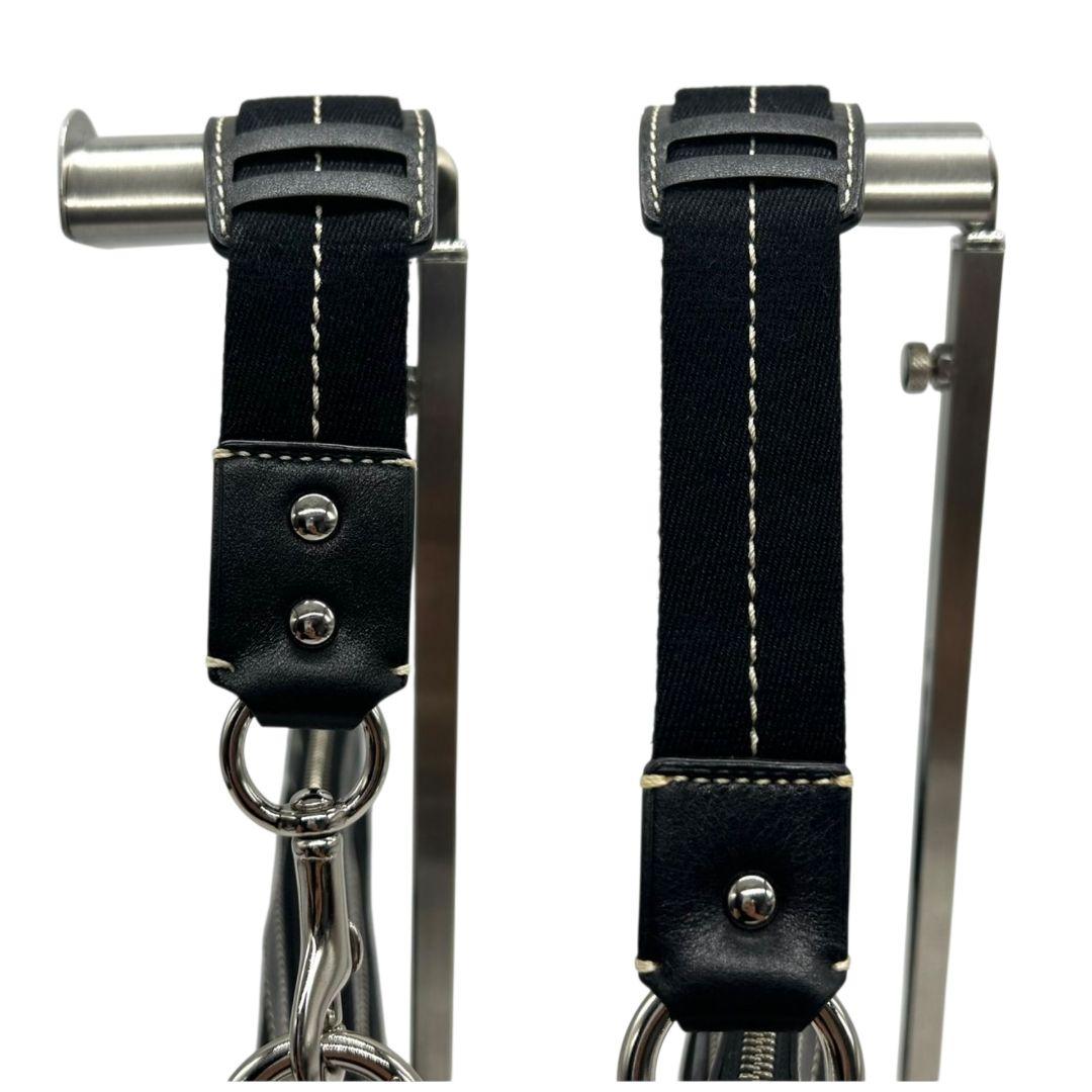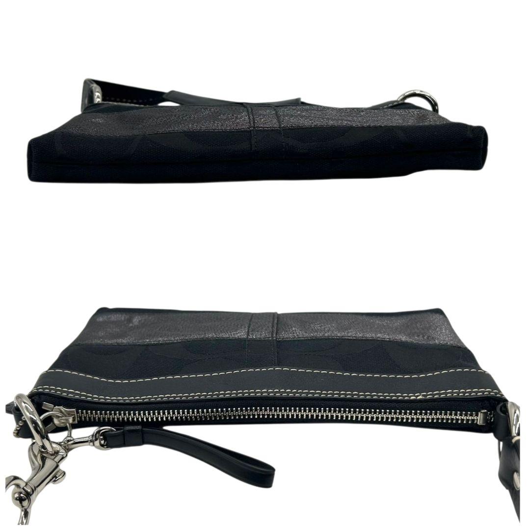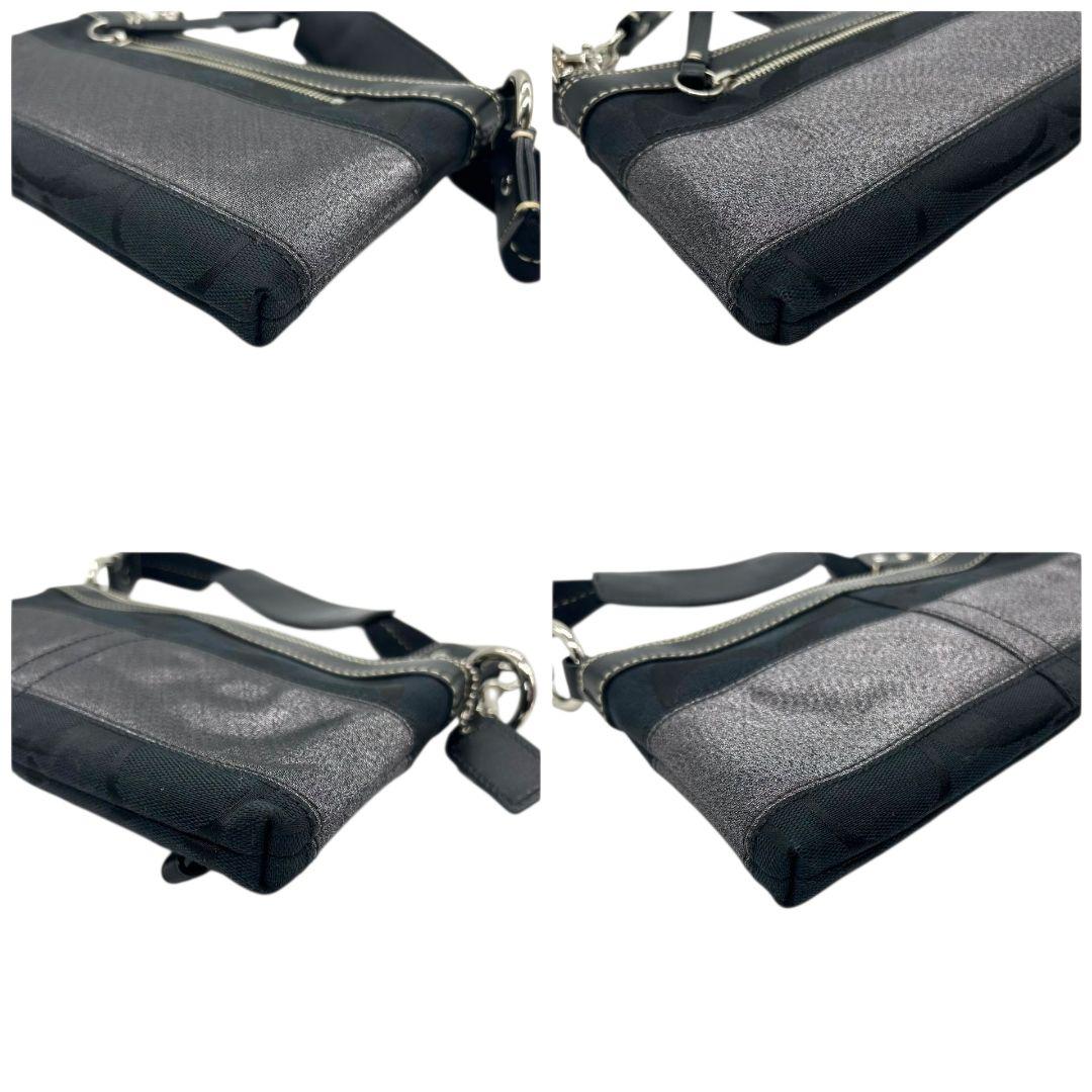 美品 コーチ ハンドバッグ ブラック 黒 グレー シグネチャー ワンショルダー キャンバス レザー アクセサリーポーチ 肩掛け可 肩かけ可 シルバー金具 チャーム付き 10120 s33 COACH 上品
