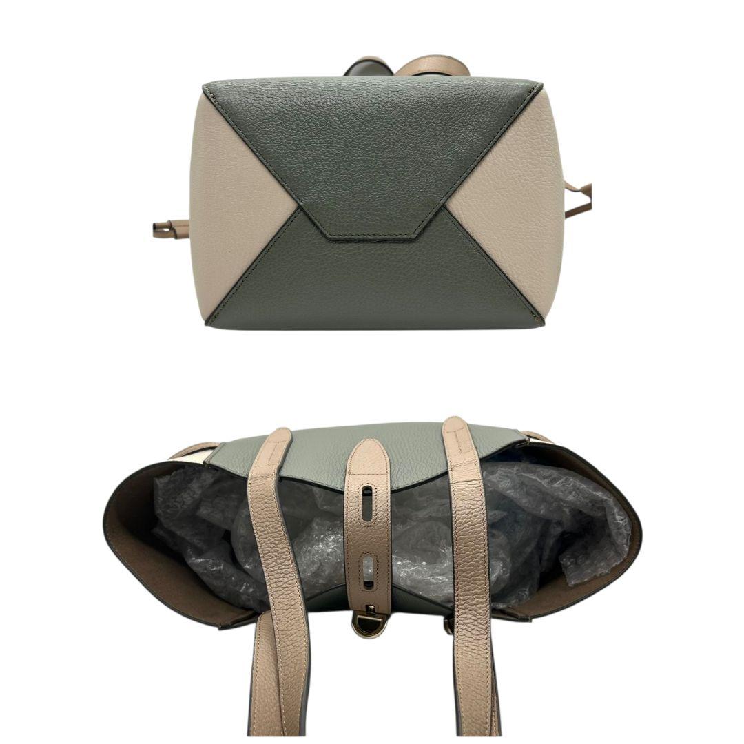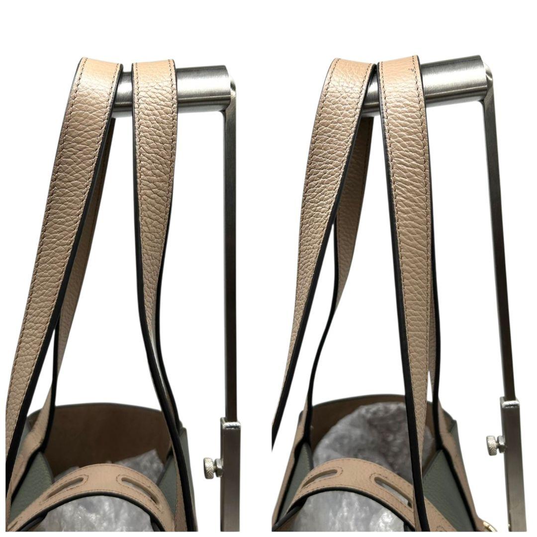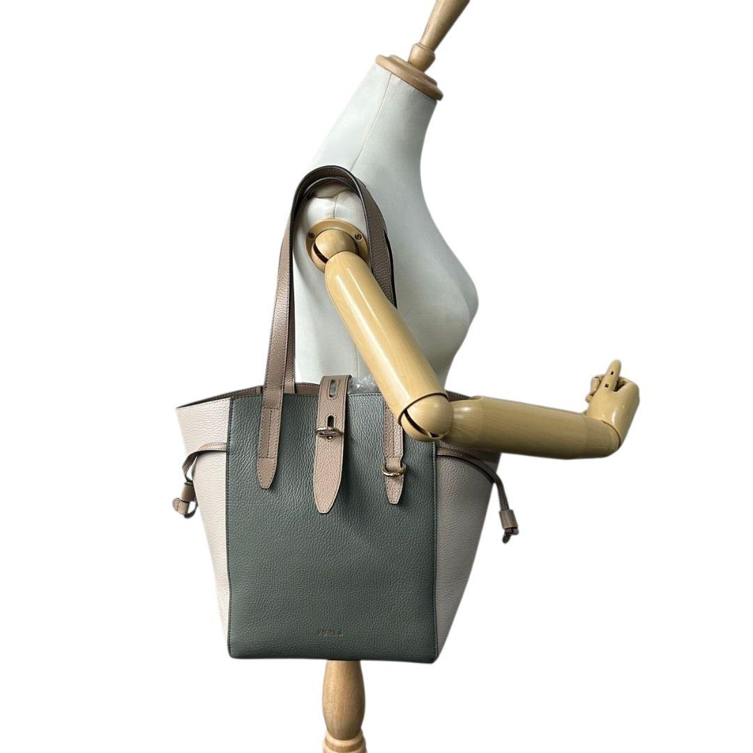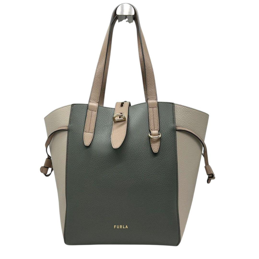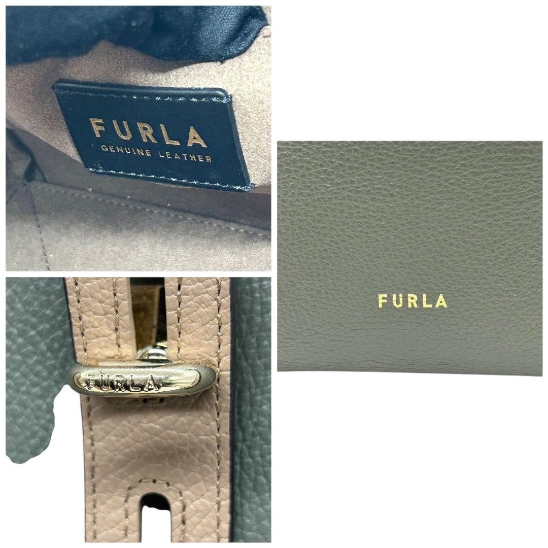 美品 フルラ トートバッグ グレー ベージュ バイカラー s21 ワンショルダー レザー 本革 自立可 肩掛け可 ゴールド金具 ブランドロゴ FURLA 上品 オシャレ