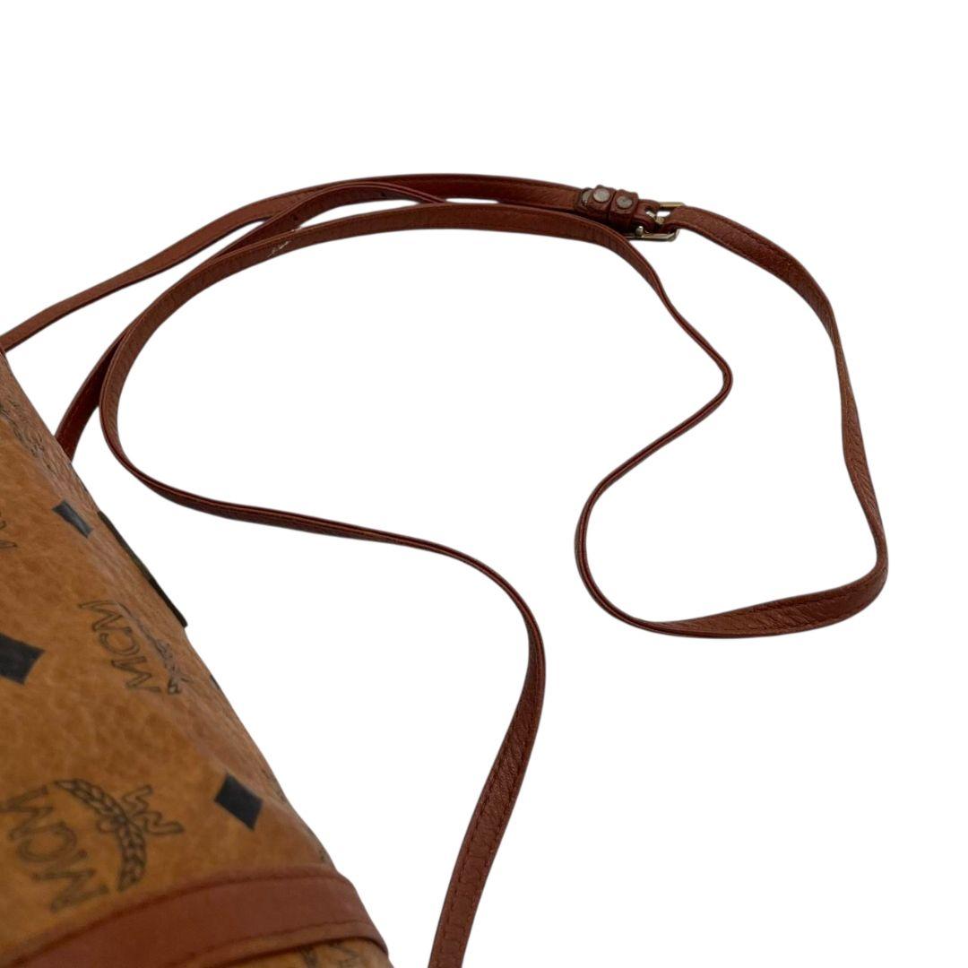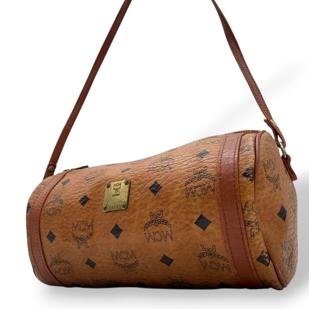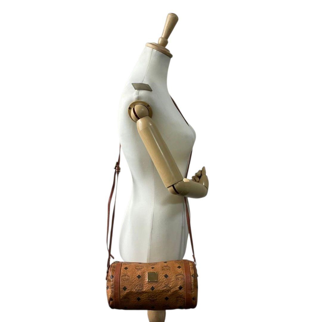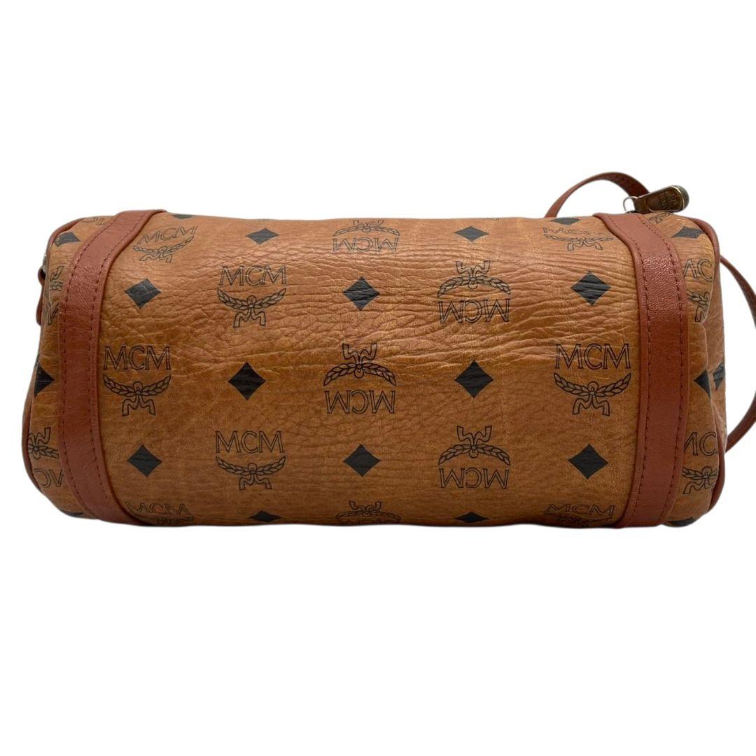 エムシーエム ショルダーバッグ 茶 ヴィセトス柄 ミニボストン 斜め掛け可 MCM ハンドバッグ レザー 本革 ブラウン ゴールド金具 ロゴプレート K4503 自立可