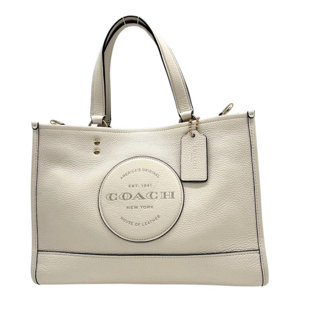 美品 コーチ ハンドバッグ 白 ロゴ 2way レザー 本革 斜め掛け可 s45 トートバッグ ショルダーバッグ 自立可 ゴールド金具 ロゴタグ チャーム付き C2004 ホワイト COACH
