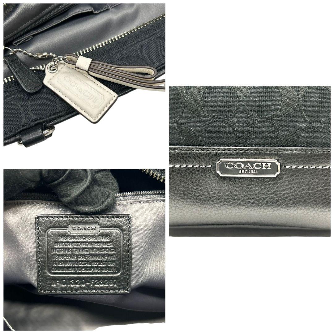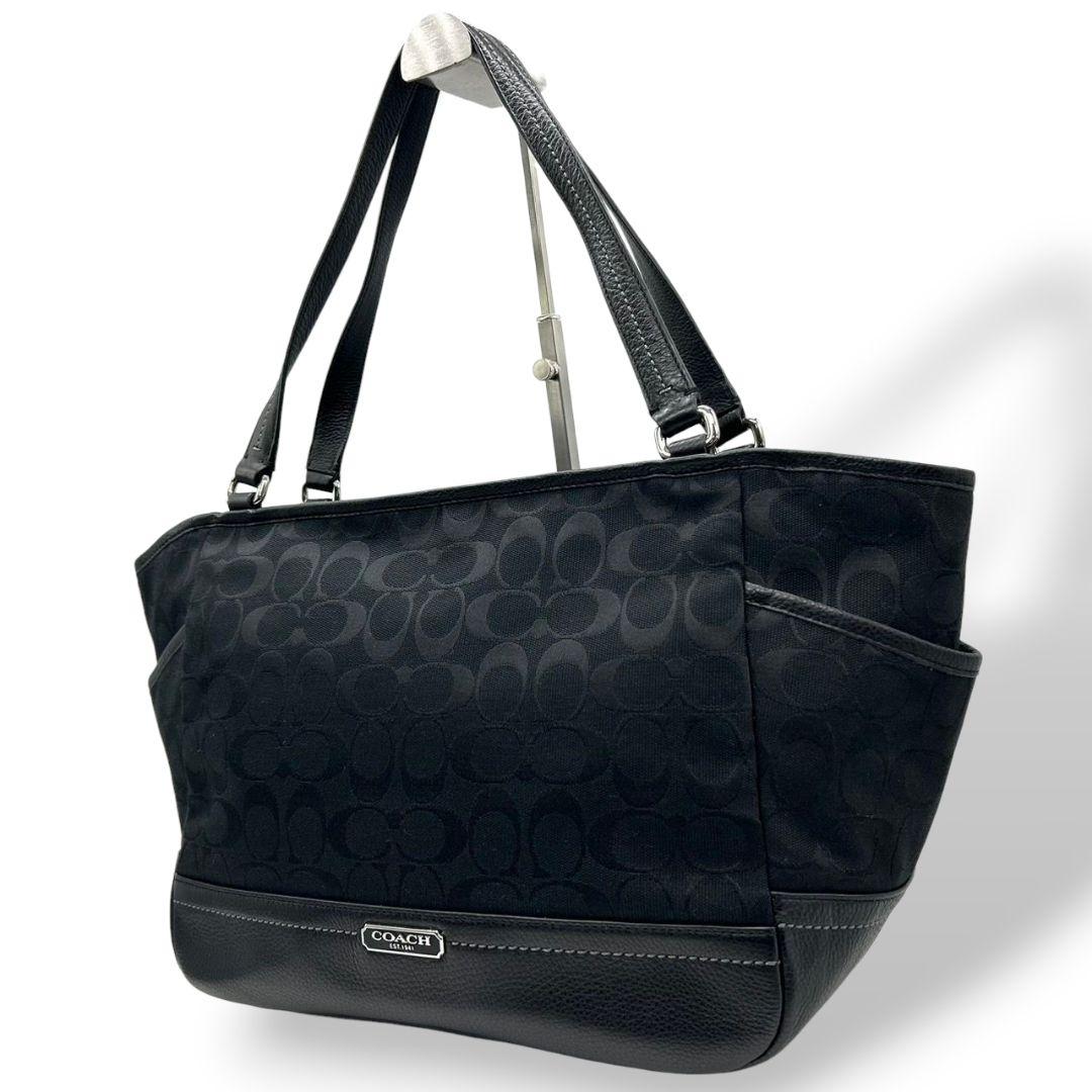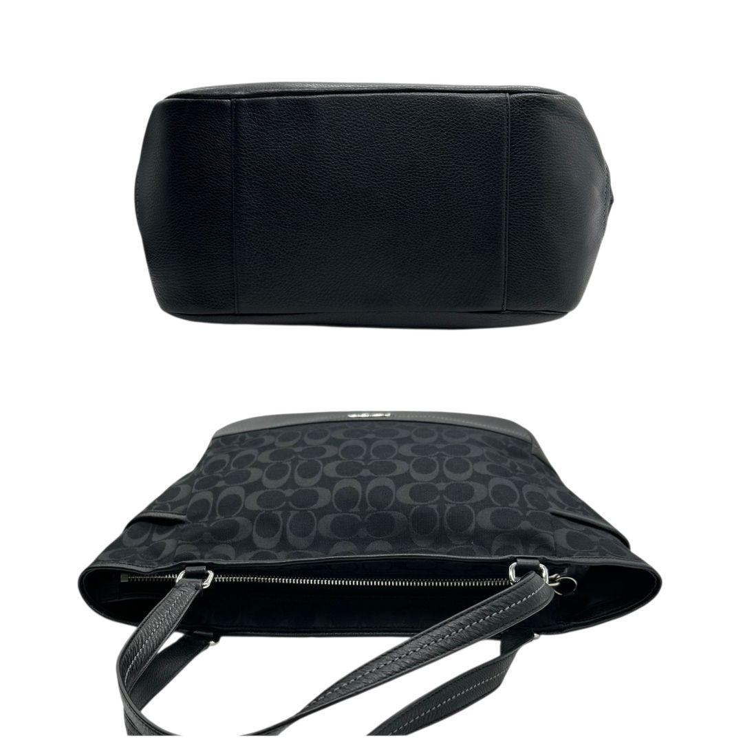 コーチ トートバッグ 黒 シグネチャー ワンショルダー 自立可 U17 ハンドバッグ 肩掛け可 肩かけ可 キャンバス レザー 本革 ロゴプレート シルバー金具 F23297 ブラック COACH