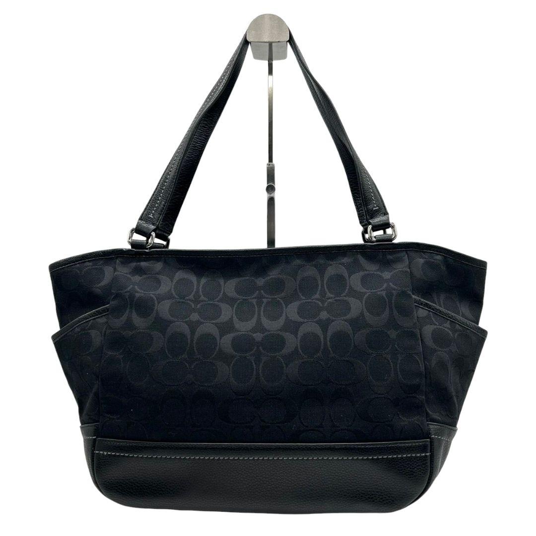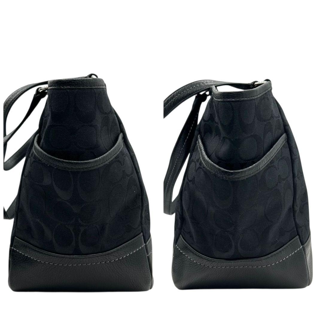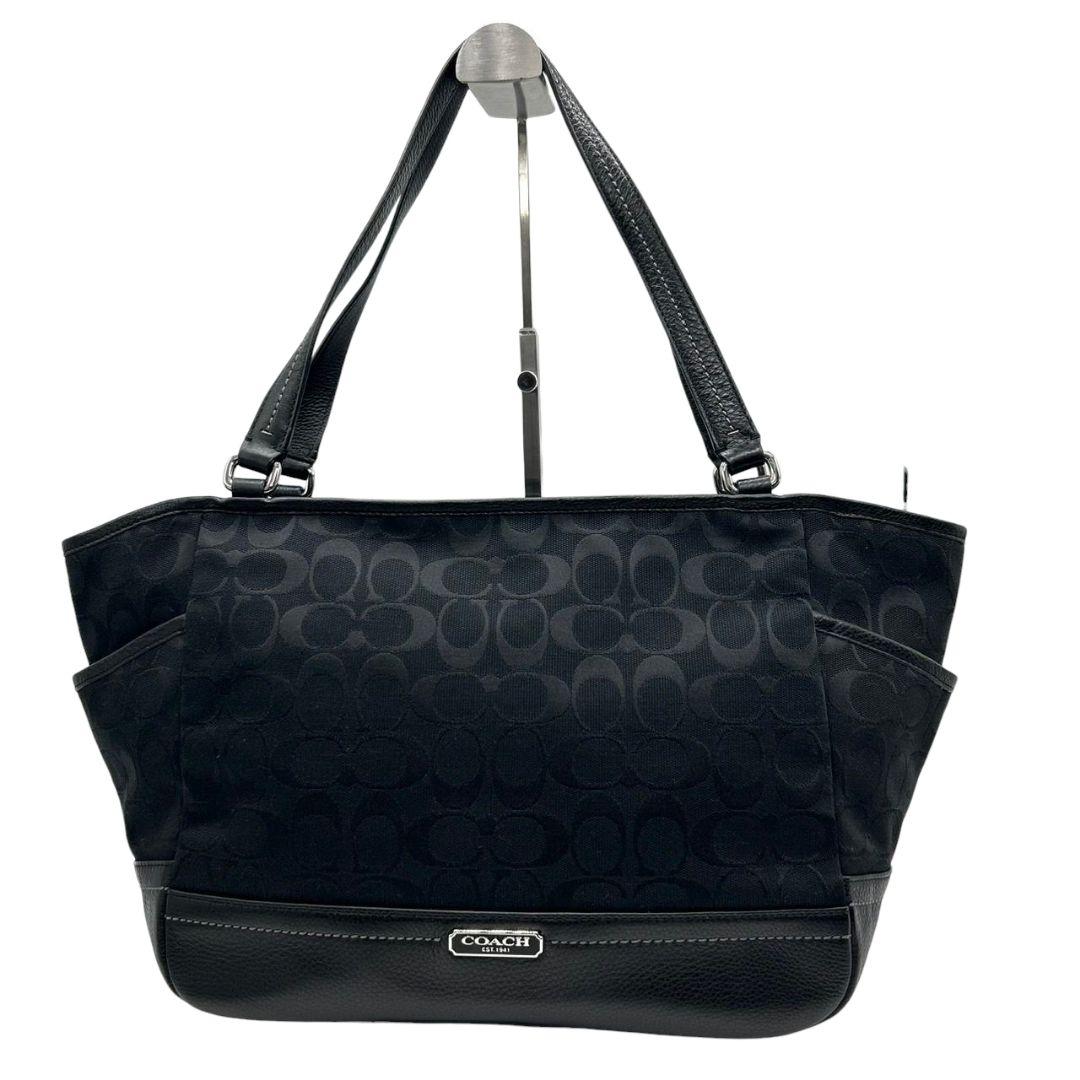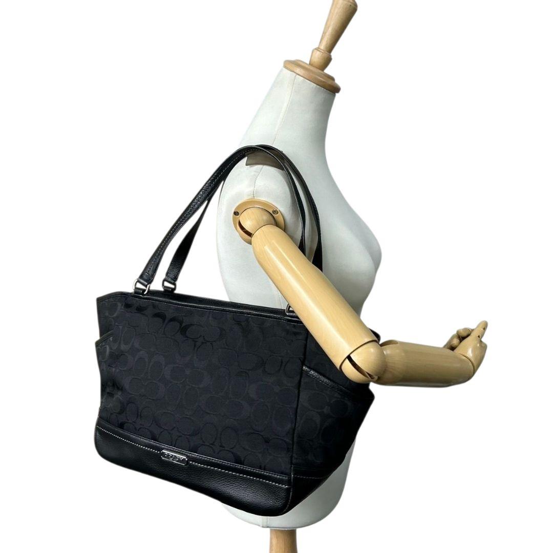 コーチ トートバッグ 黒 シグネチャー ワンショルダー 自立可 U17 ハンドバッグ 肩掛け可 肩かけ可 キャンバス レザー 本革 ロゴプレート シルバー金具 F23297 ブラック COACH