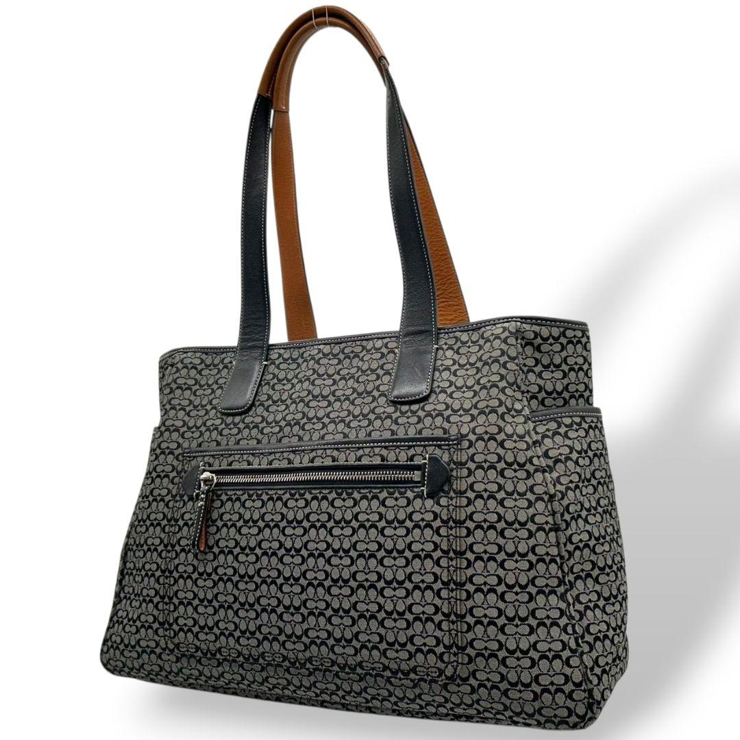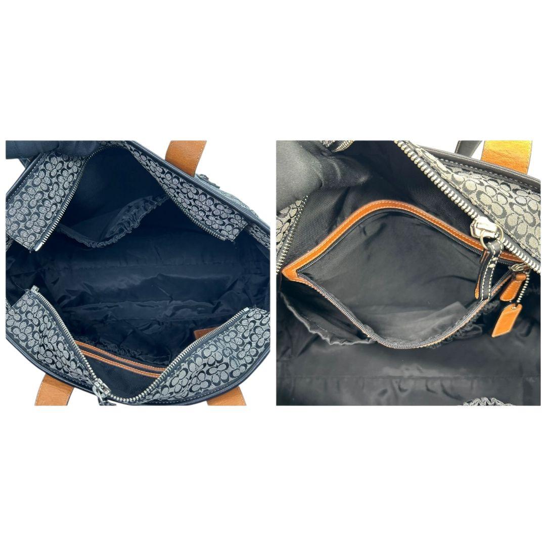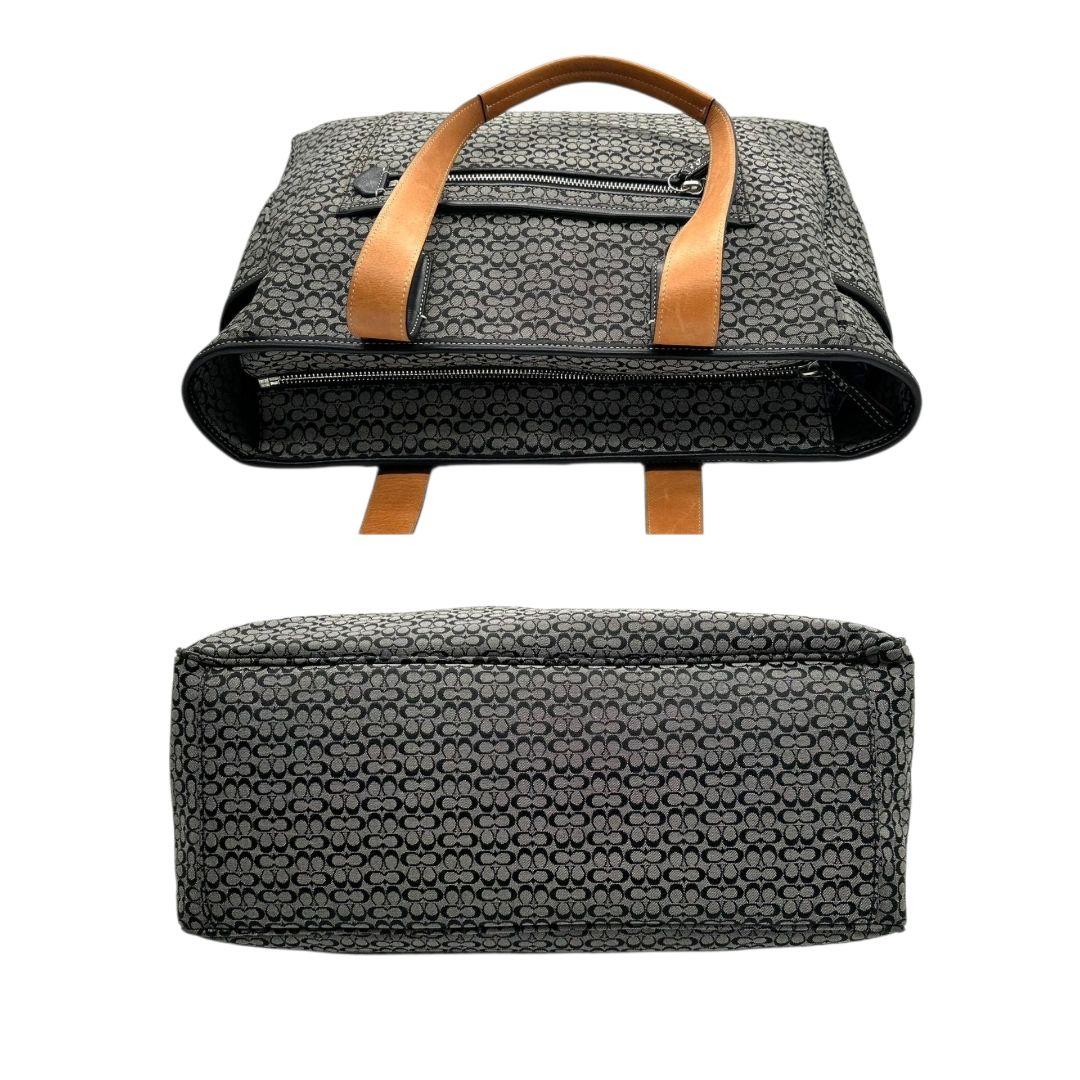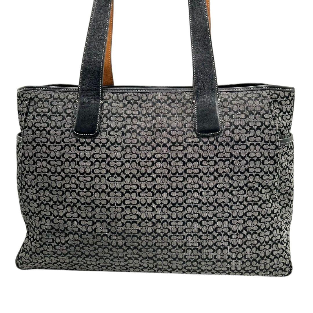 美品 コーチ トートバッグ 黒 ブラック グレー ブラウン 茶 ミニシグネチャー ワンショルダー A4収納 キャンバス レザー 本革 肩掛け可 自立可 シルバー金具 ハンドバッグ COACH 5707 U17
