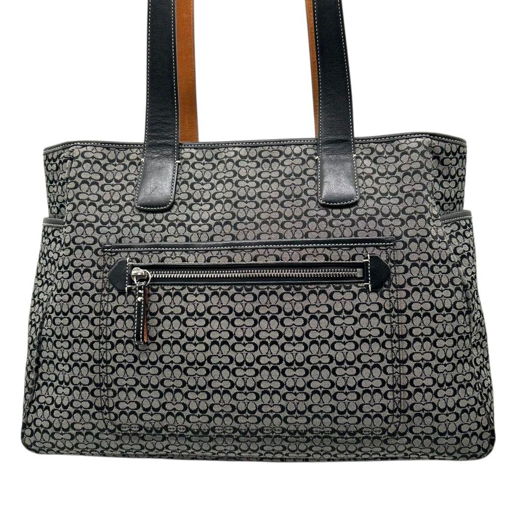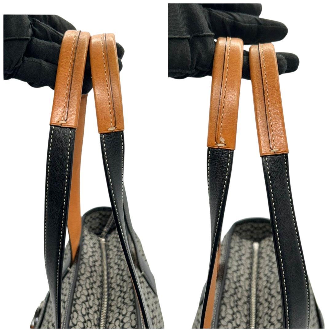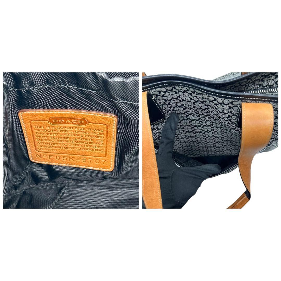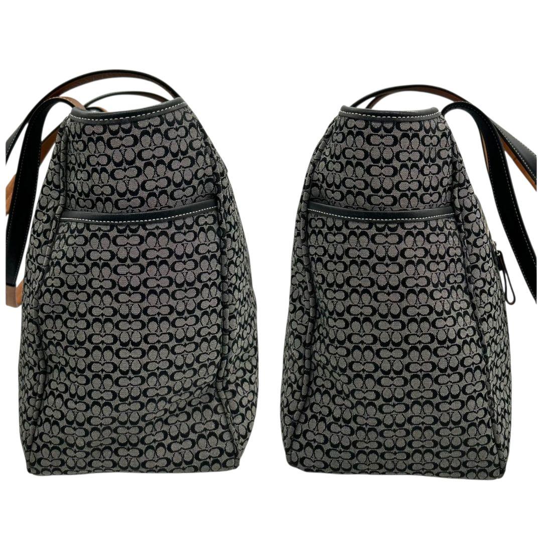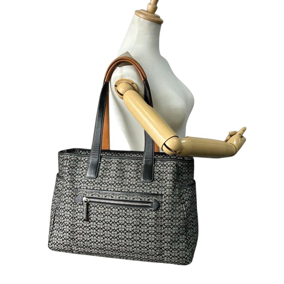 美品 コーチ トートバッグ 黒 ブラック グレー ブラウン 茶 ミニシグネチャー ワンショルダー A4収納 キャンバス レザー 本革 肩掛け可 自立可 シルバー金具 ハンドバッグ COACH 5707 U17