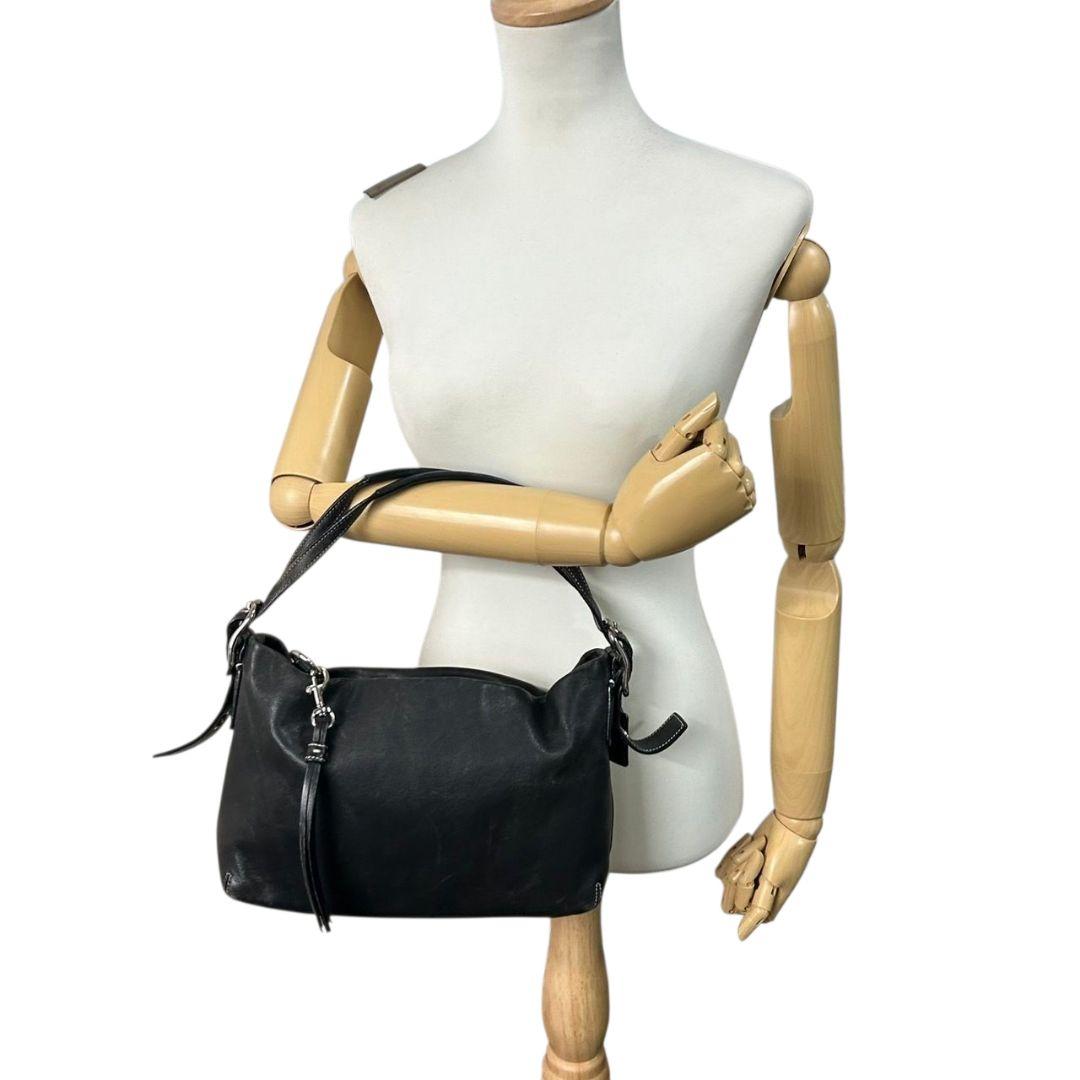 コーチ ショルダーバッグ ブラック 黒 ホーボー ワンショルダー レザー 本革 ハンドバッグ シルバー金具 ロゴタグ チャーム付き F01417 s43 COACH 上品 通勤