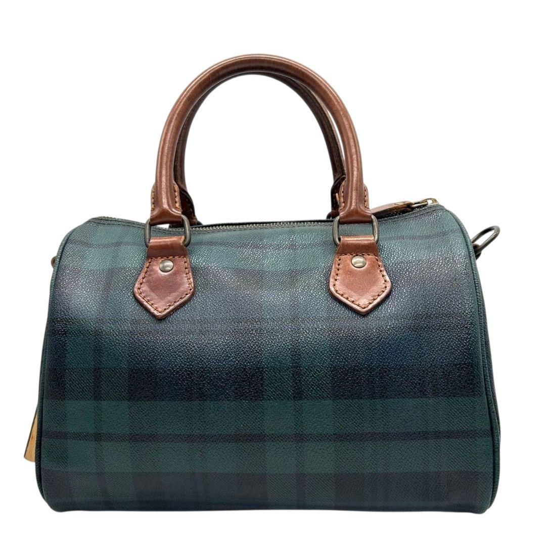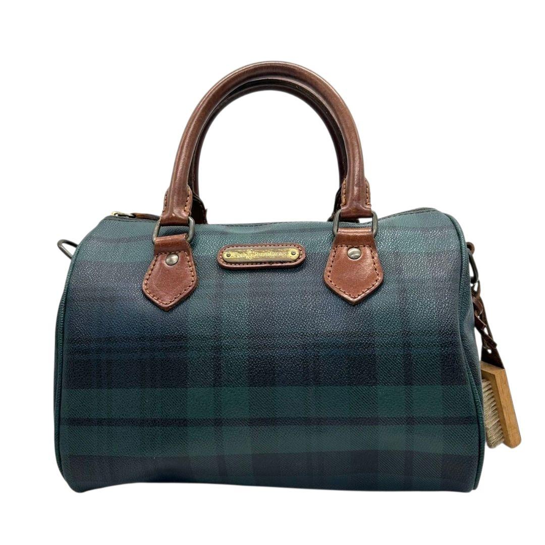 美品 POLO RALPH LAUREN ポロラルフローレン ミニボストン 2way ショルダー 斜め掛け可 タータンチェック PVC レザー 本革 自立可 グリーン ネイビー ロゴ N