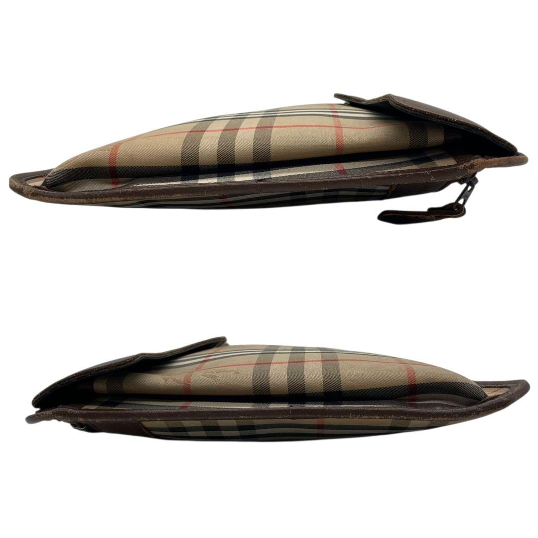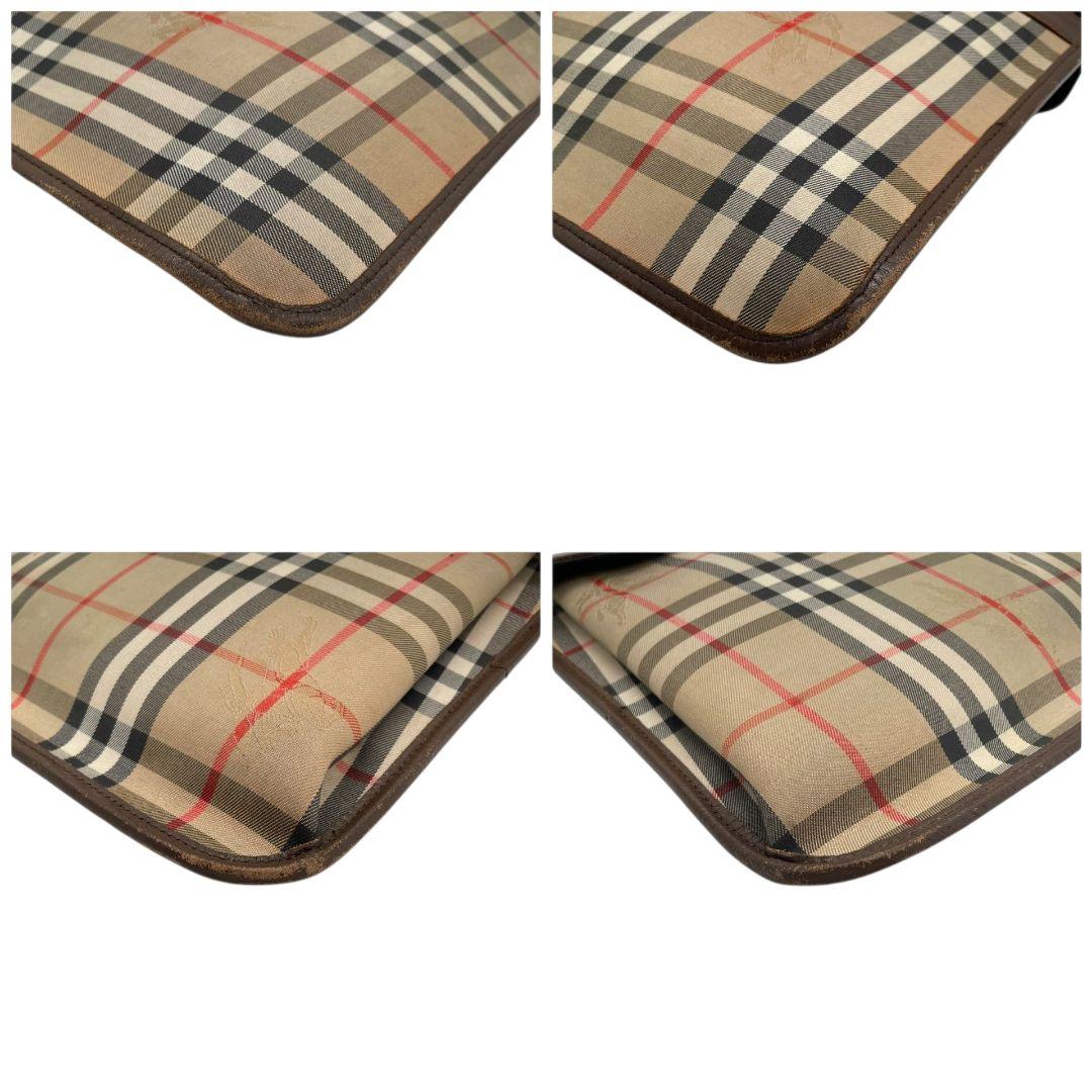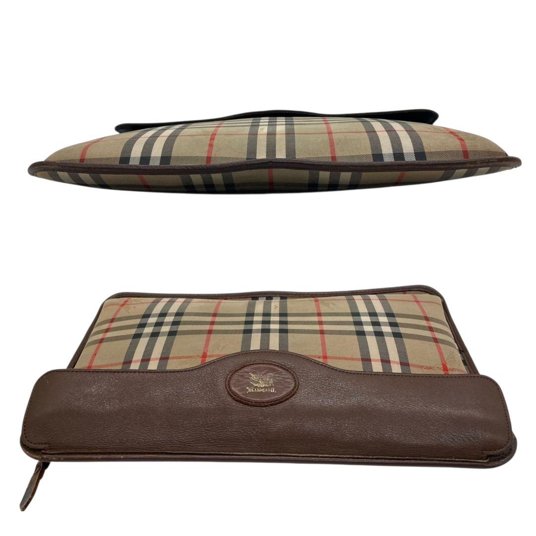 美品 バーバリー クラッチバッグ 茶 ベージュ ブラウン ノバチェック ホースロゴ レザー 本革 A4収納 セカンドバッグ ロゴタグ 本物保証 鑑定済 オシャレ Burberrys u10