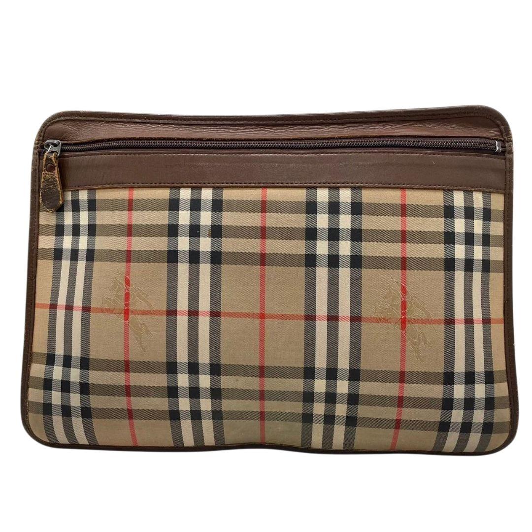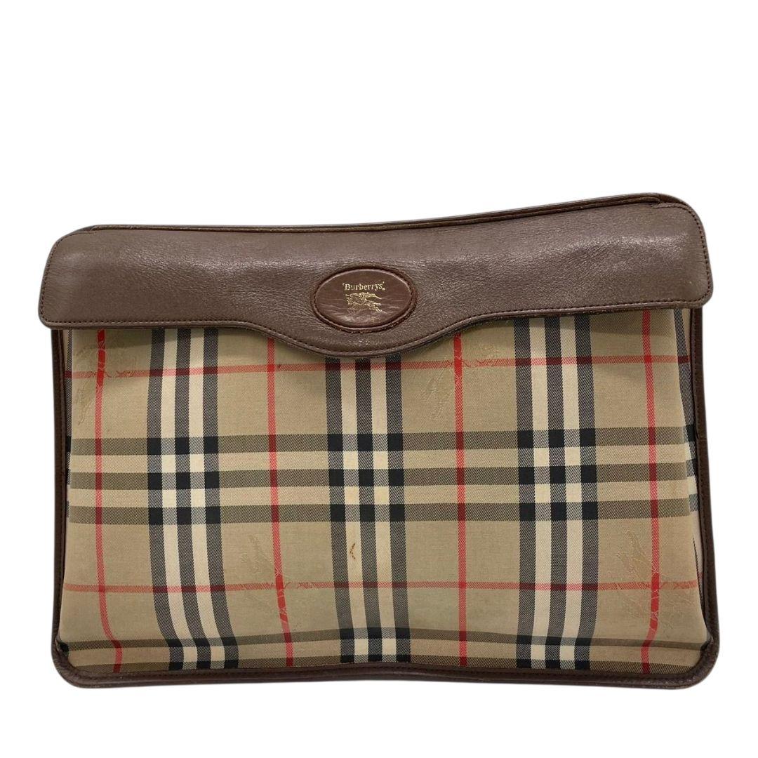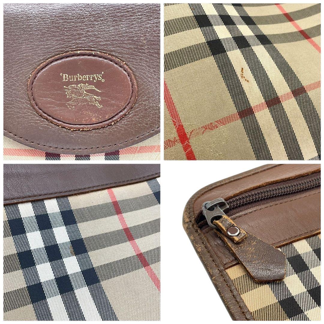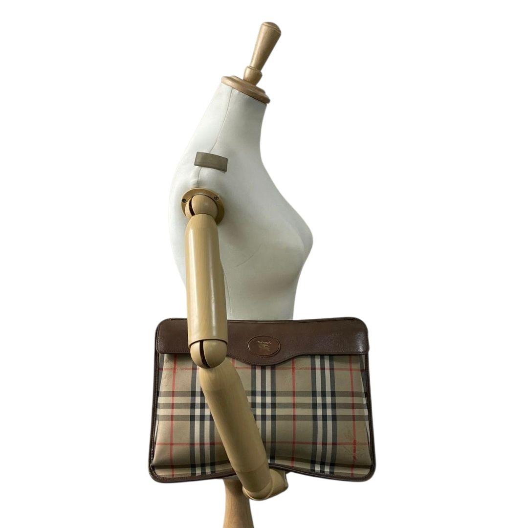 美品 バーバリー クラッチバッグ 茶 ベージュ ブラウン ノバチェック ホースロゴ レザー 本革 A4収納 セカンドバッグ ロゴタグ 本物保証 鑑定済 オシャレ Burberrys u10